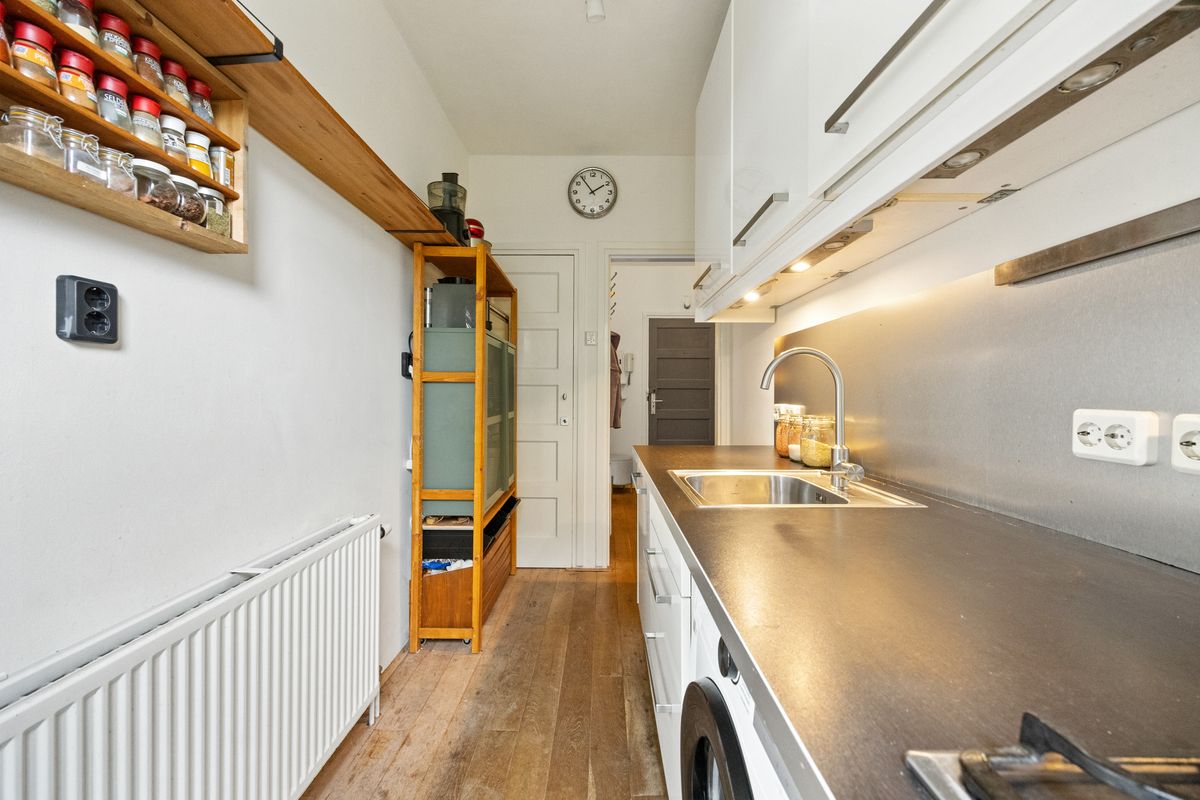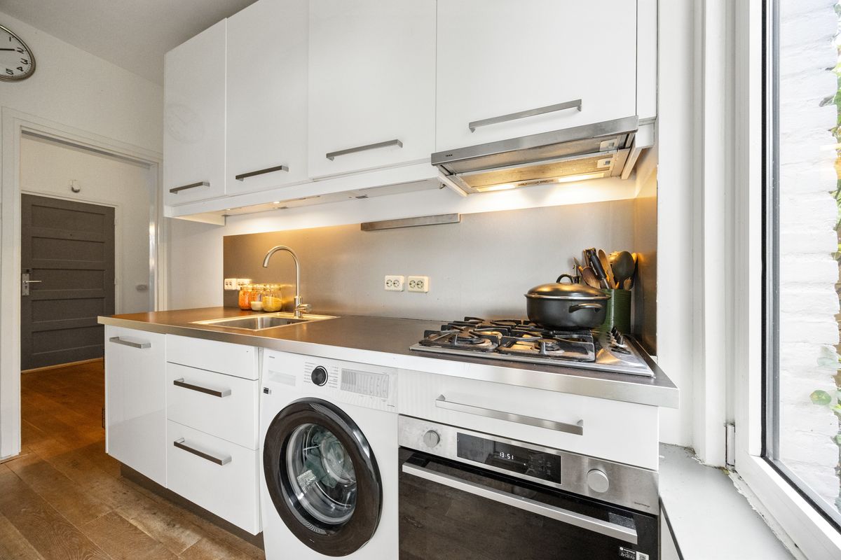De keuken ligt aan de achterzijde en is via de entree bereikbaar. Deze is compleet uitgerust met een vierpits gasfornuis, afzuigkap, oven, koelkast en voldoende kastruimte. Er is ook plek voor de wasmachine. Vanuit de keuken heb je toegang tot de ruimte met de CV-ketel. Daarnaast is er een deur naar de achtertuin, wat handig is tijdens warme dagen of bij het buiten eten.