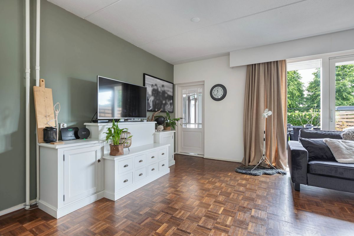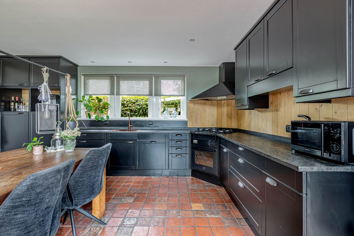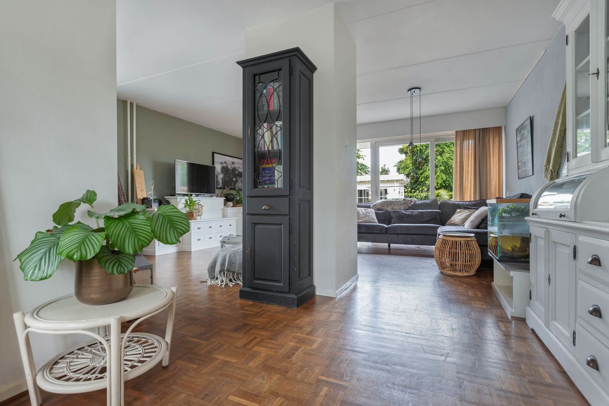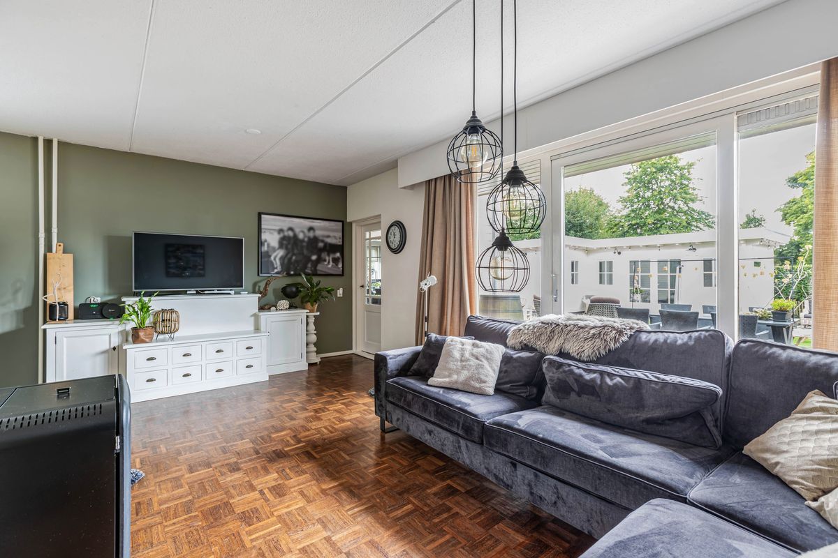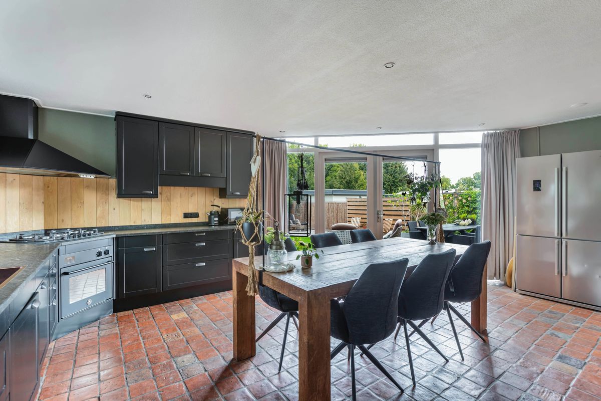 De woning zelf verrast met ruimte en mogelijkheden. Dankzij de royale uitbouw vind je op de begane grond een sfeervolle woonkamer met haard in het midden en een schuifpui naar de tuin, een grote woonkeuken van ruim 25 m² en bovendien een slaapkamer met en suite badkamer en een praktische bijkeuken. Daarmee is de woning niet alleen levensloopbestendig, maar ook perfect geschikt voor een praktijk of kantoor aan huis.