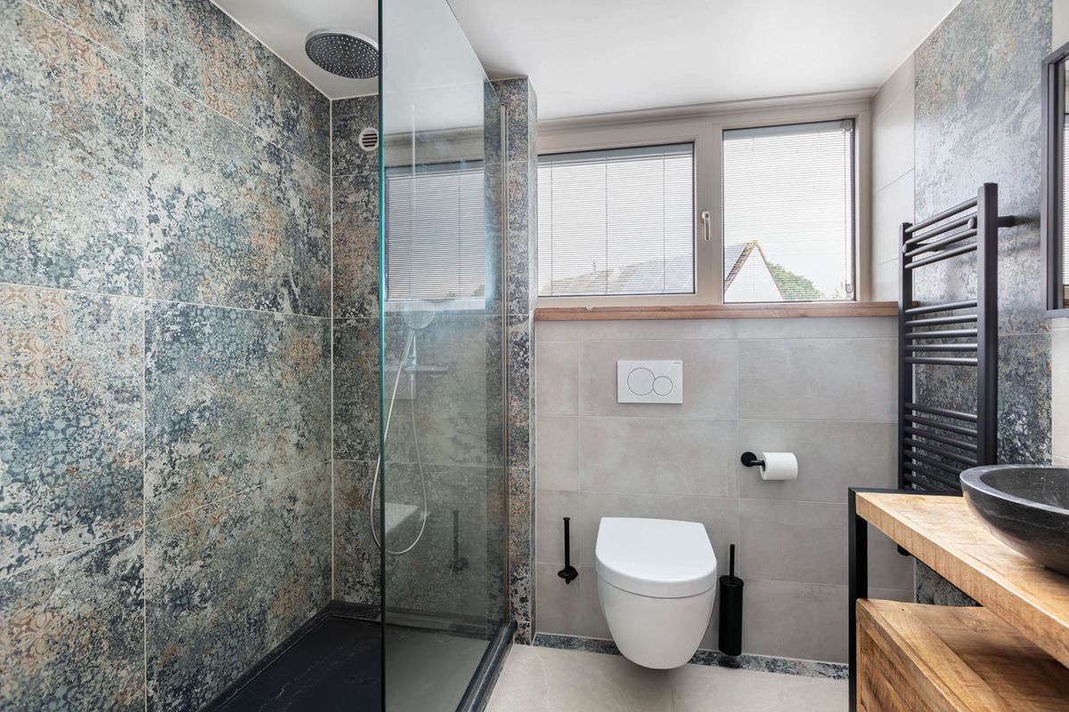 overloop, 3 slaapkamers, moderne badkamer voorzien van: wastafelmeubel, toilet, inloopdouche.