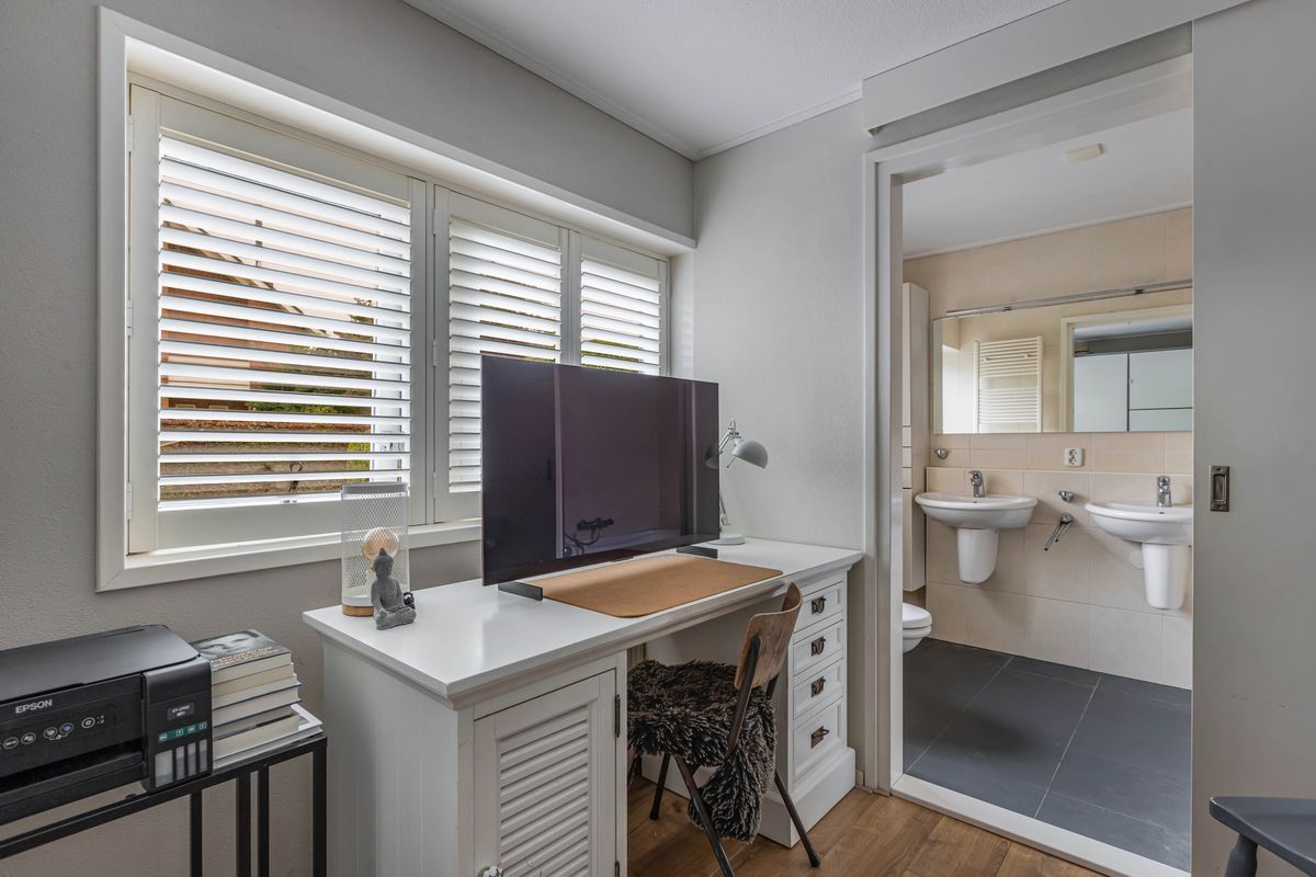 Boven zijn nog drie slaapkamers en een moderne, recent vernieuwde badkamer en slaapzolder te vinden. Buiten gaat het woongenot gewoon door: de achtertuin op het westen nodigt uit om tot in de avond van de zon te genieten. In de tuin staat bovendien een geïsoleerd en verwarmd tuinhuis, ideaal als werkplek, hobbyruimte of chillplek voor de kinderen.