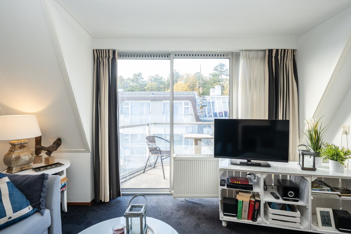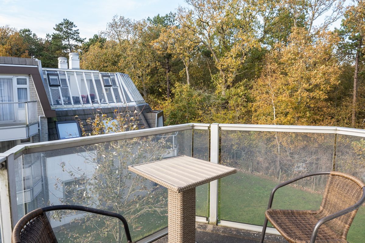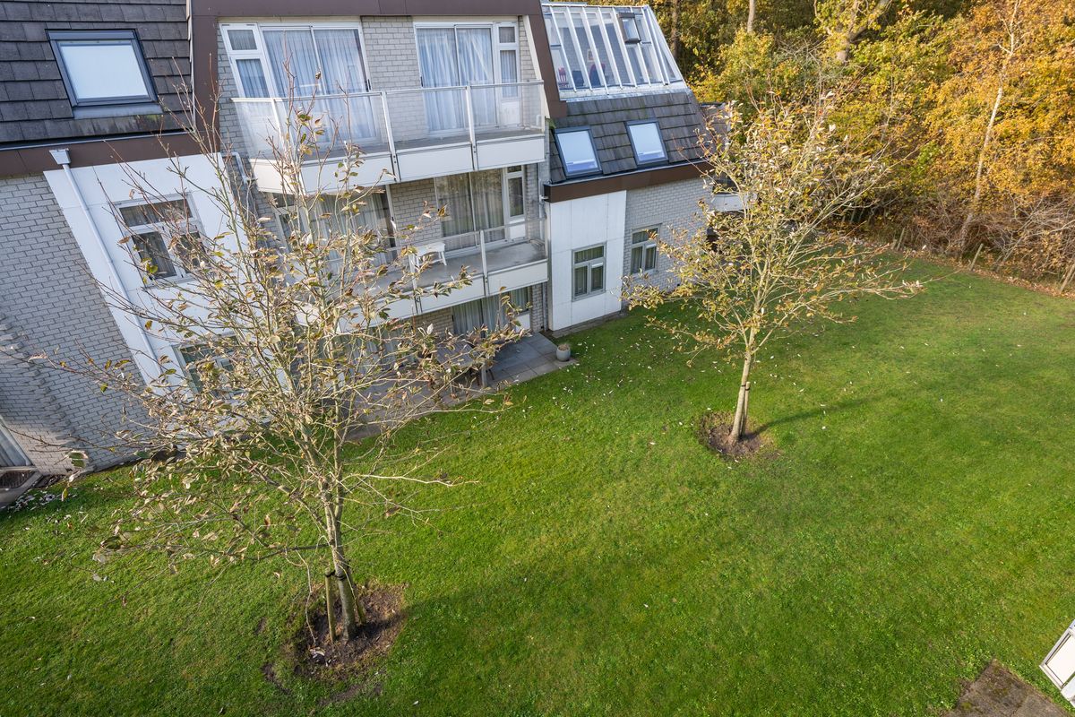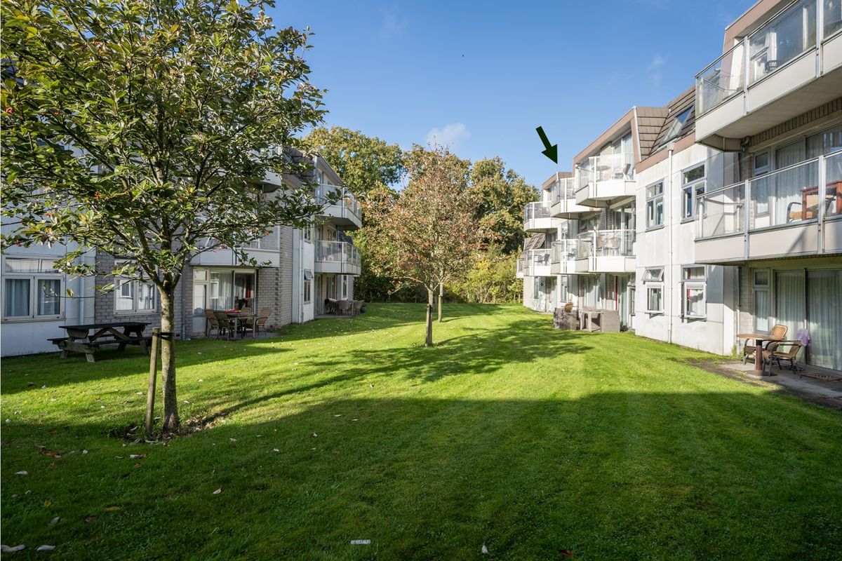 Vanuit zowel het appartement als het balkon geniet u van een groen uitzicht op het aangrenzende bos en de binnenplaats van het complex.