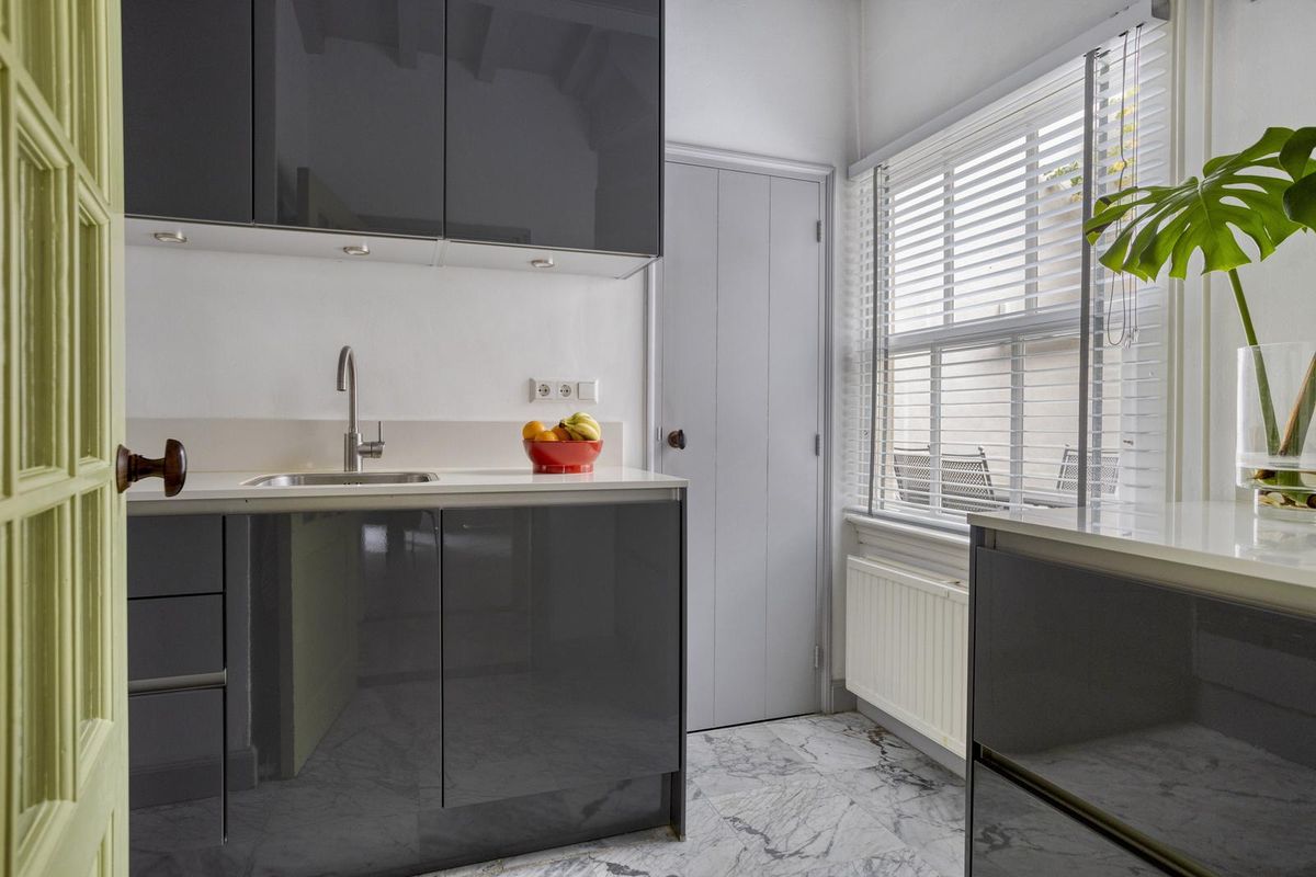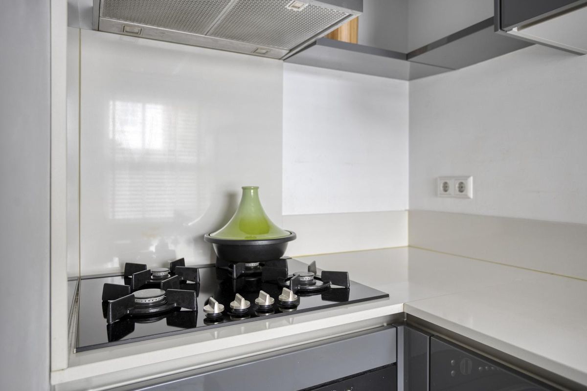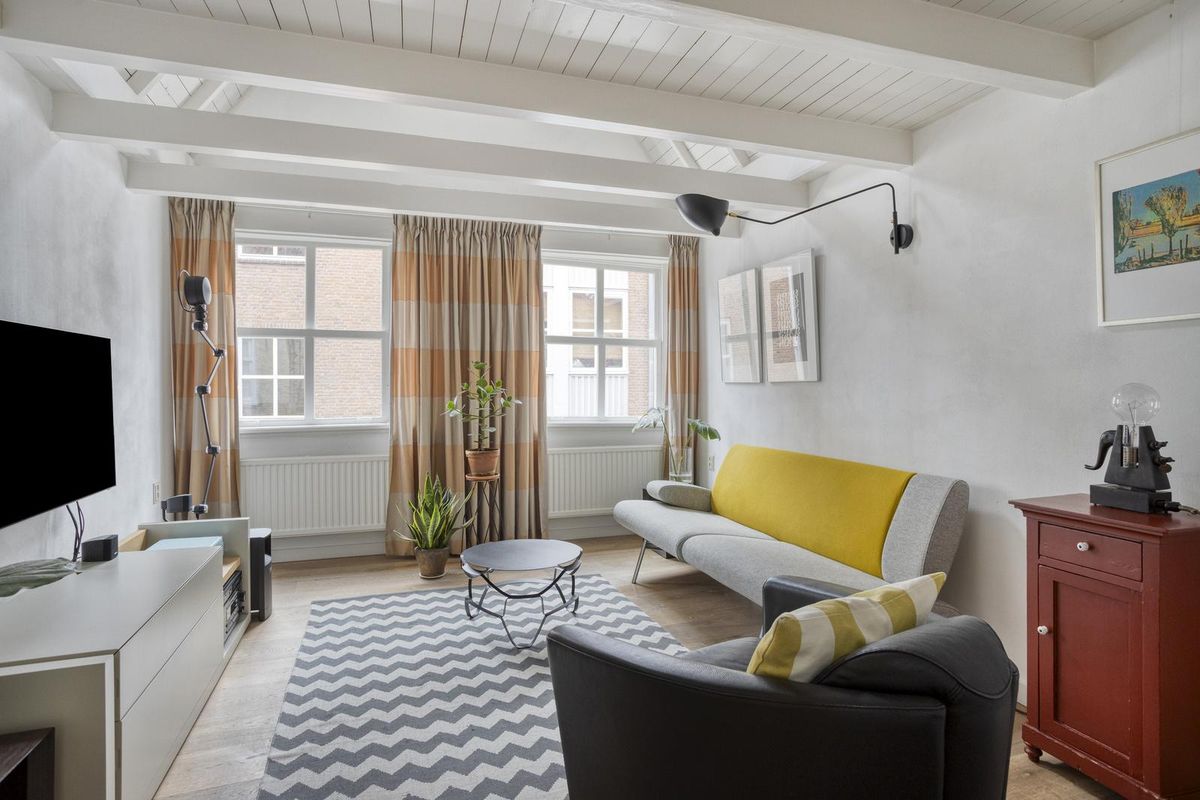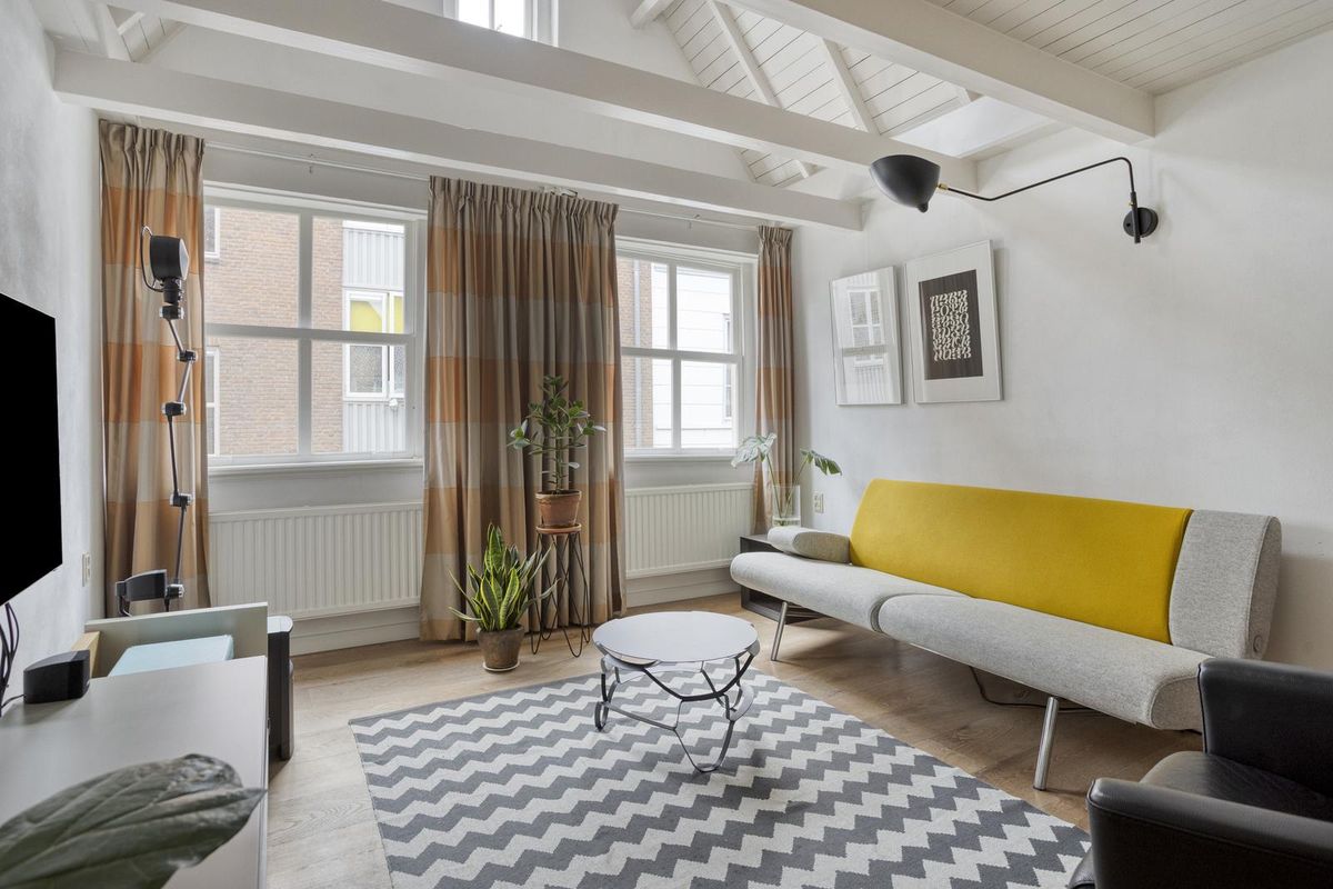De woonkamer bevindt zich op de eerste verdieping. Zodra je boven komt, voel je het: dit is een kamer met sfeer. Dankzij de vide kijk je helemaal tot in de nok, waardoor de ruimte groter en lichter aanvoelt dan je verwacht van dit kleine huis. Het originele dakbeschot is zichtbaar en geeft de ruimte een ruime uitstraling. De hoge plafonds, de lichtinval en de charmante indeling maken dit een heerlijke plek om te ontspannen. Vanuit hier heb je via een trap toegang tot de zolder, een praktische ruimte perfect voor extra opslag.
