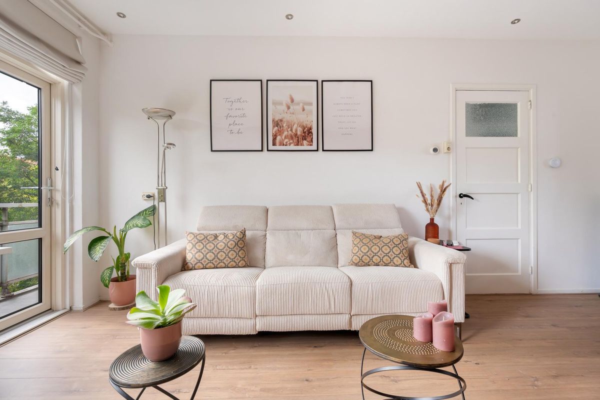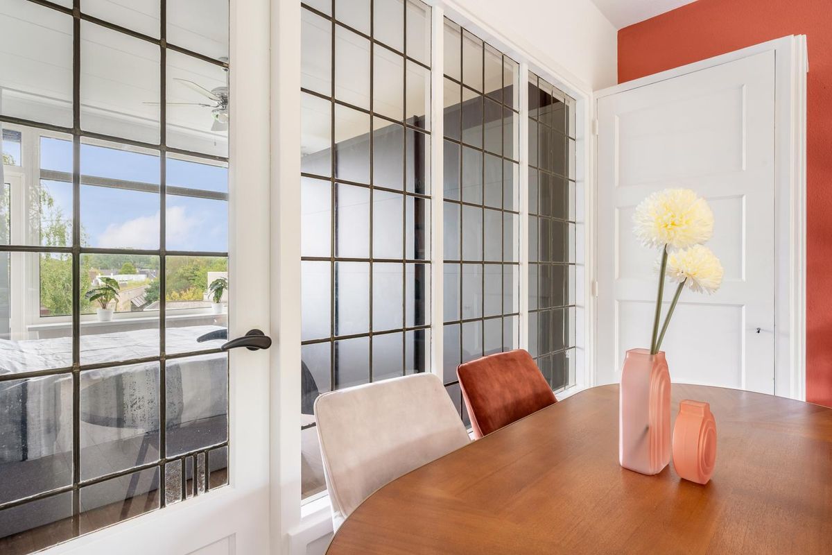 Ruime hal/entree met separaat toilet en toegang tot alle vertrekken op deze verdieping. De woonkamer met vaste kast is gelegen aan de voorzijde van de woning. Door de grote raampartijen treedt er veel licht de woning binnen, wat zorgt voor een fijne en lichte sfeer. De woning is zorgvuldig afgewerkt met strak stucwerk, waardoor de ruimtes een moderne en verzorgde uitstraling hebben. Via de woonkamer bereik je het 1e balkon, gelegen op het zonnige zuiden. Hier kun je gedurende de dag heerlijk genieten van de zon! De master bedroom is gelegen aan de achterzijde van de woning. Dit is een erg ruime en lichte kamer. Zowel via de deur in de master bedroom als via de keuken bereik je het 2e balkon, gelegen op het noorden. Hier kun je in de ochtend genieten van de zon met een kop koffie! De stijlvolle, moderne keuken beschikt over diverse inbouwapparatuur, zoals een 4-pits elektrische kookplaat met afzuiging, vaatwasser, oven en een koel-vriescombinatie. De 2e kamer met wasmachineaansluiting is multifunctioneel in te richten als kinder-, werk-, hobby- of slaapkamer. Via deze kamer heb je ook toegang tot het balkon, dat is gelegen op het zuiden. De volledig betegelde badkamer beschikt over een inloop(regen)douche en een wastafel met meubel.