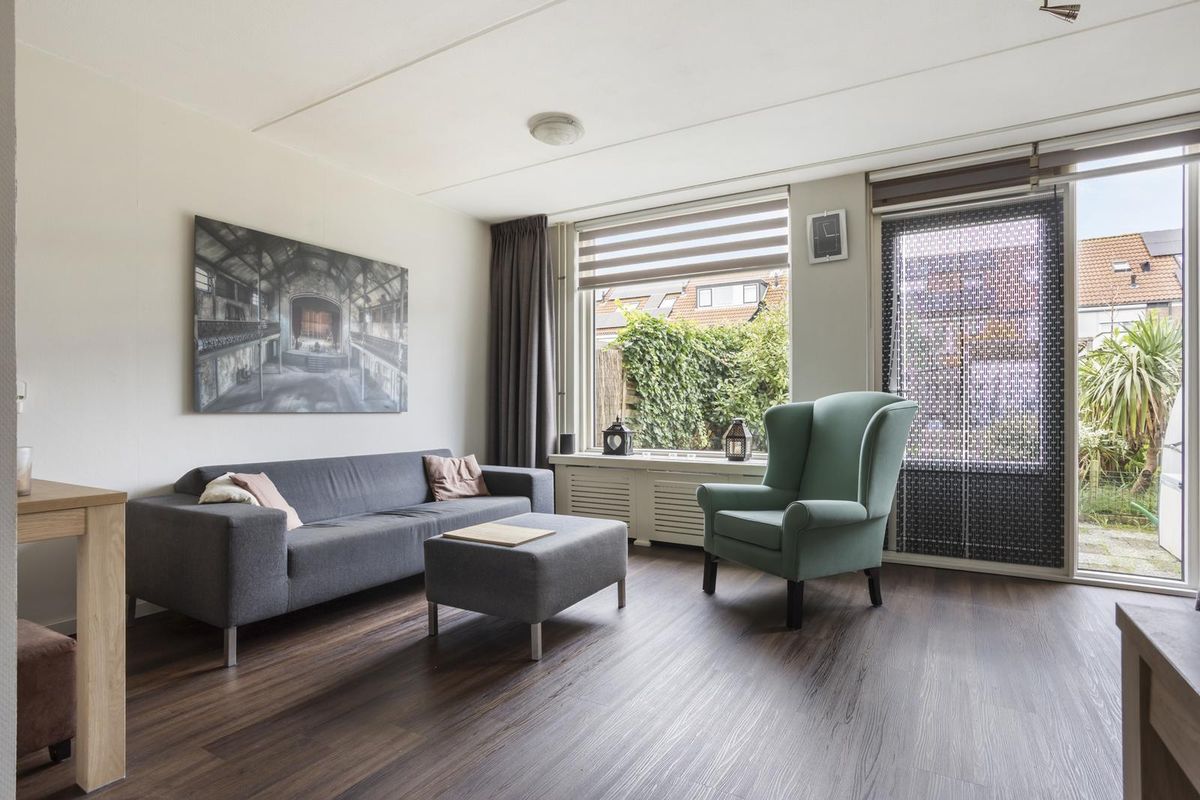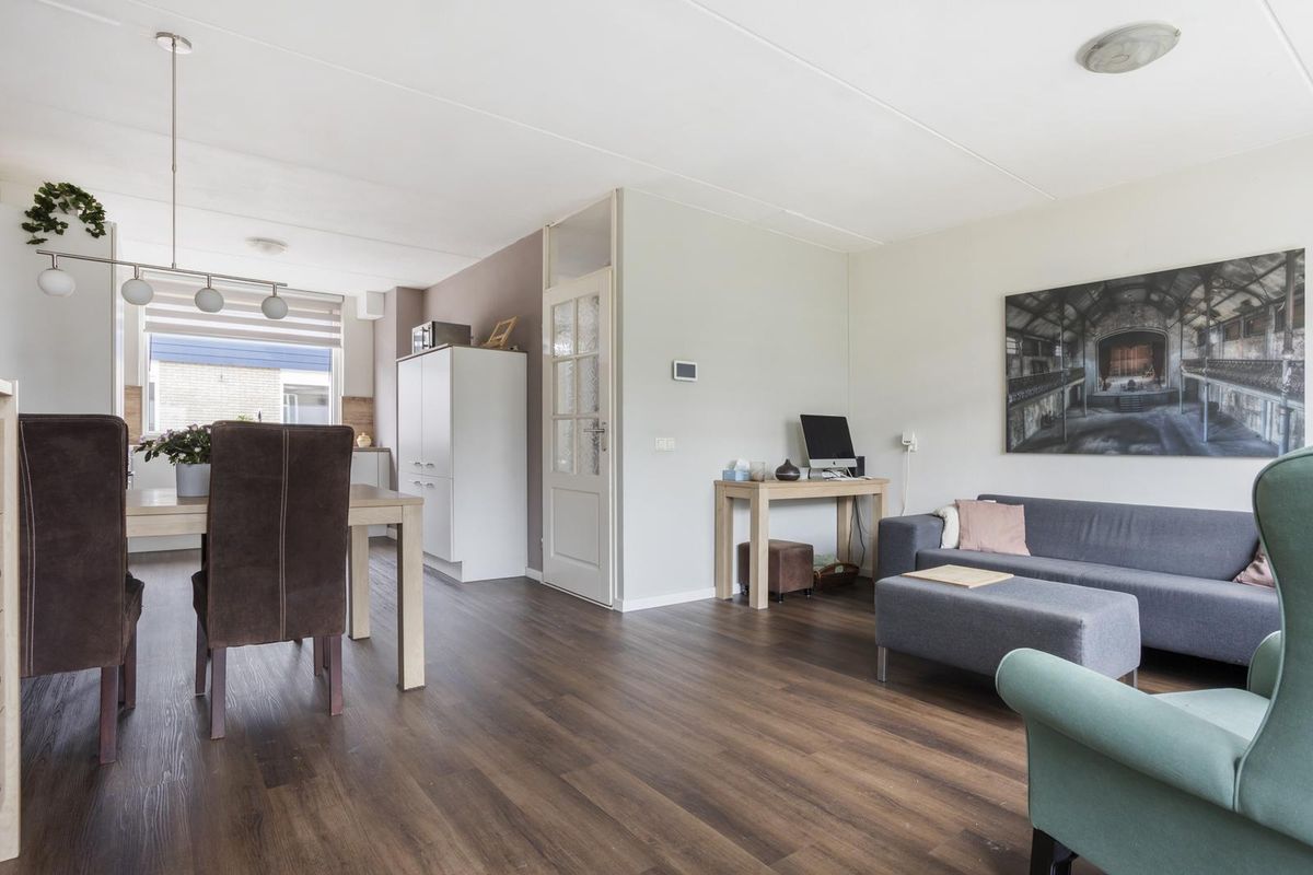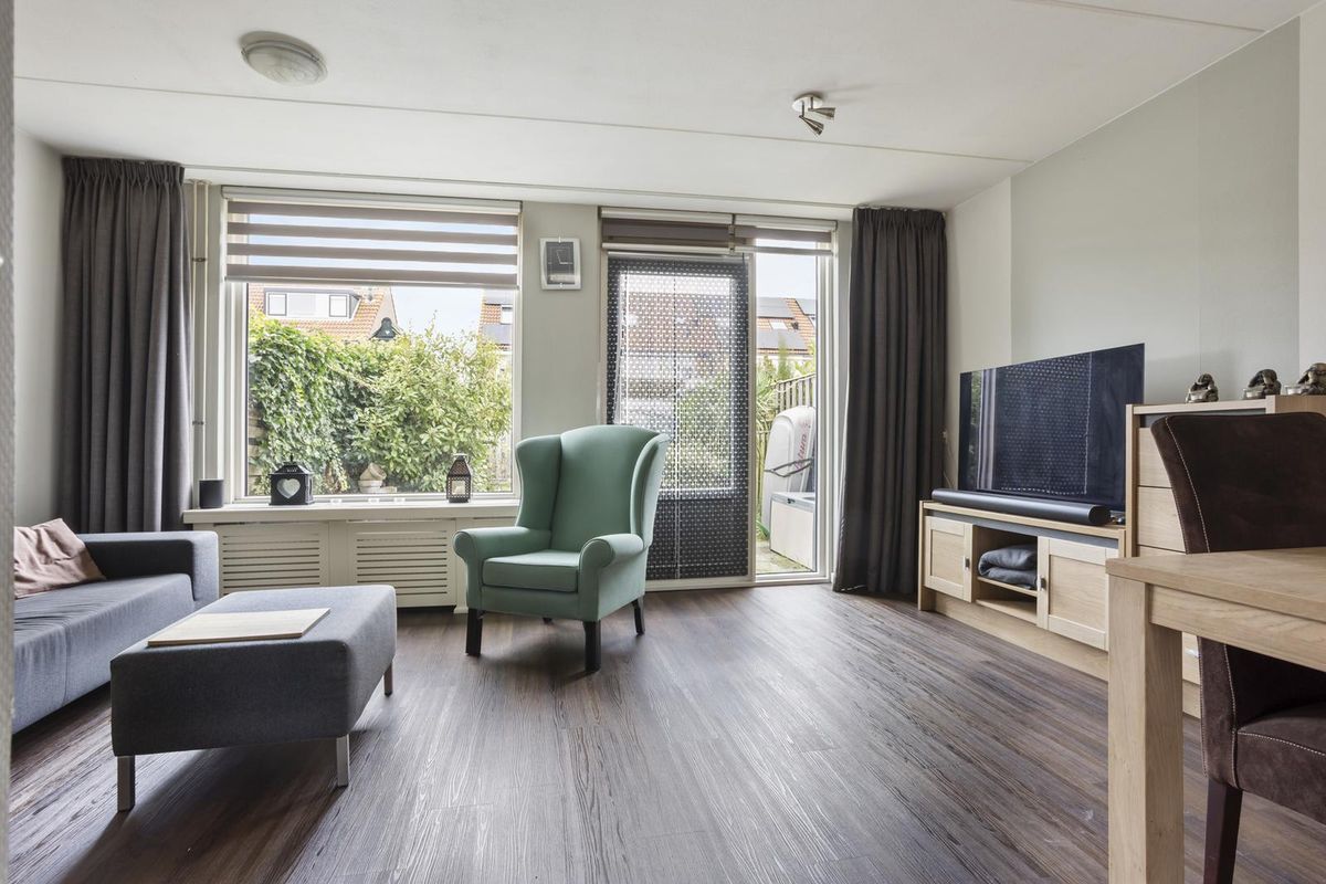 De ruime woonkamer is licht en sfeervol dankzij de grote raampartijen en biedt voldoende ruimte voor een comfortabel zit- en eetgedeelte.