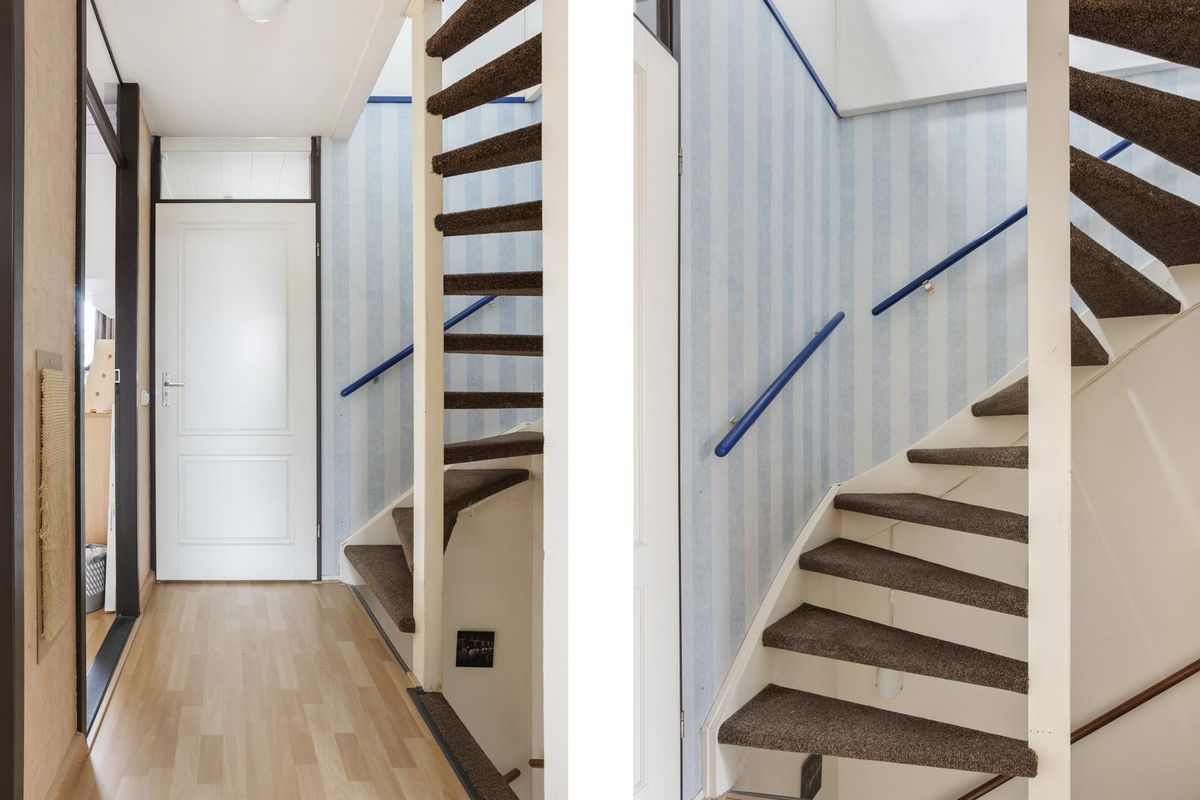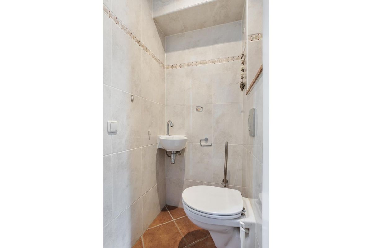 Via de voortuin bereik je de entree met hal, toiletruimte (hangend toilet met fonteintje), meterkast, trapopgang en toegang tot de woonkamer.
