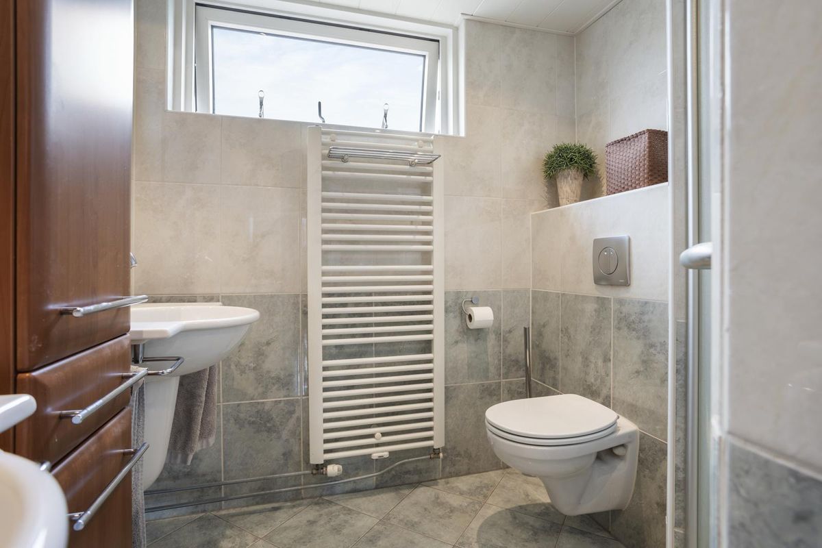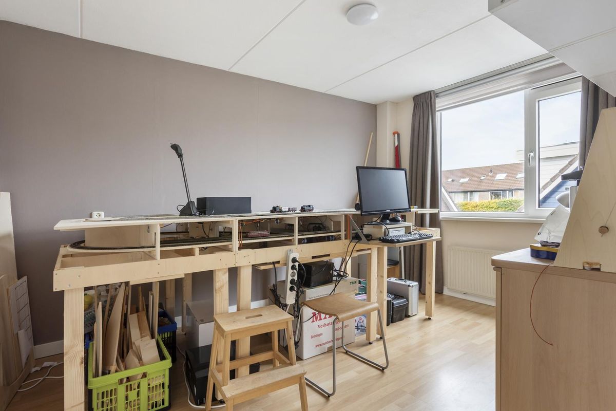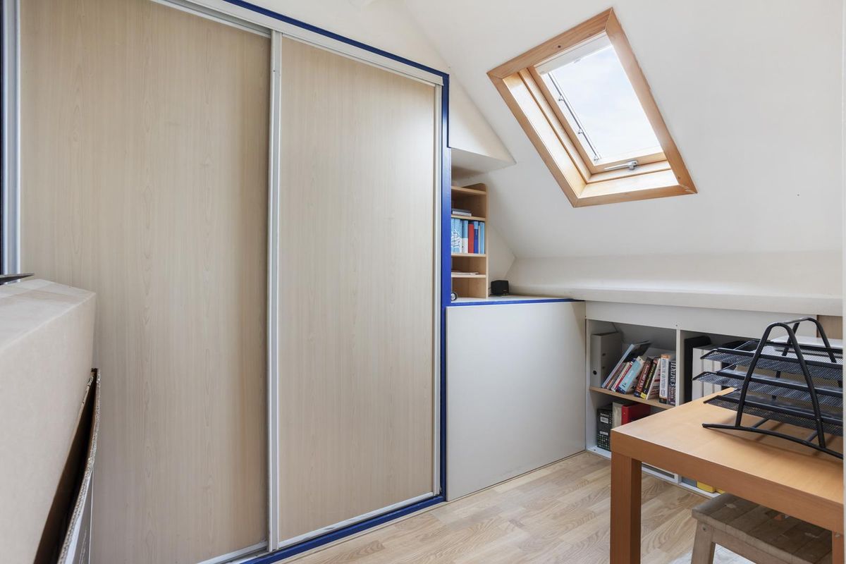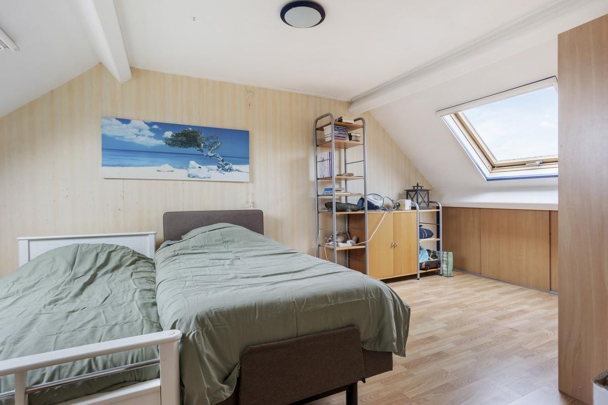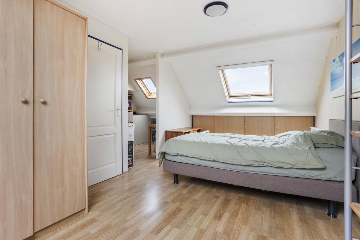 Op de bovenste verdieping bevindt zich de overloop met wasruimte en een royale slaapkamer voorzien van dakramen, laminaatvloer en inbouwkast waarin de CV-ketel is geplaatst.