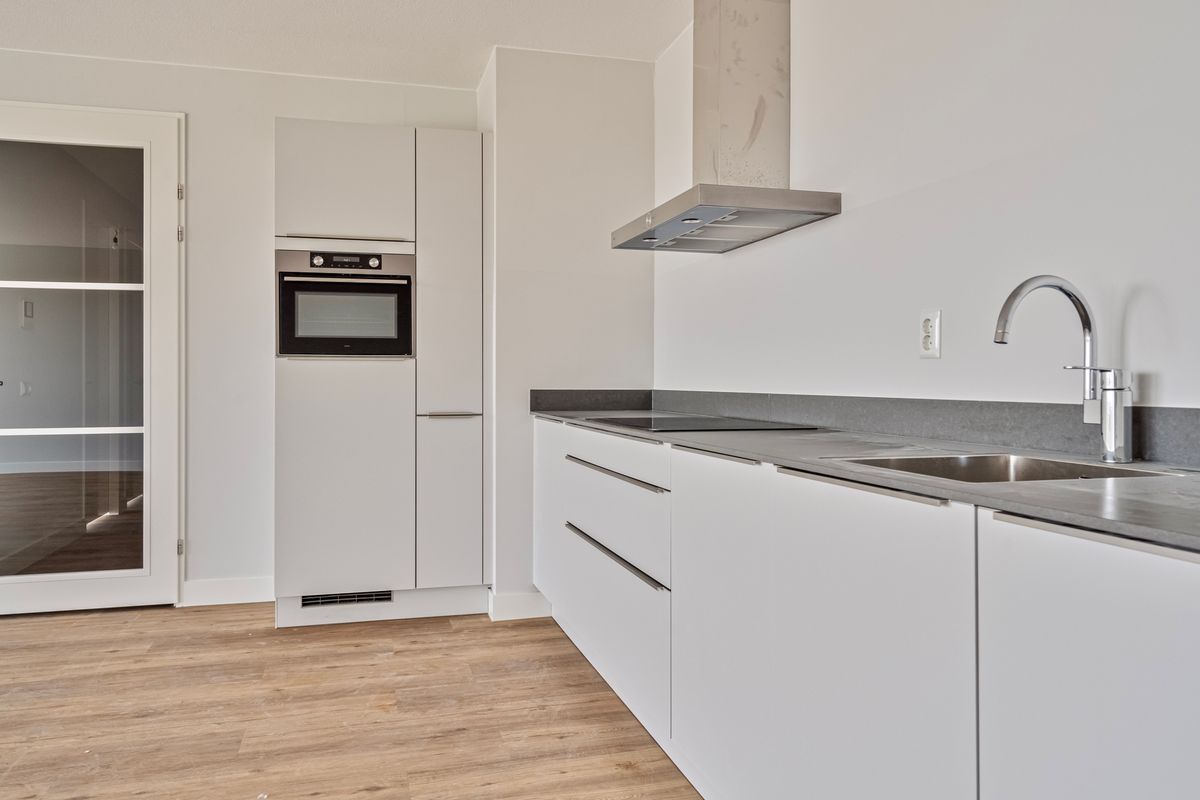 Binnen in het appartement tref je een ruime hal die toegang geeft tot alle vertrekken. De lichte woonkamer met grote raampartijen zorgt voor een open en prettige sfeer. De open keuken is luxe uitgevoerd en voorzien van moderne inbouwapparatuur, perfect voor koken én gezelligheid.