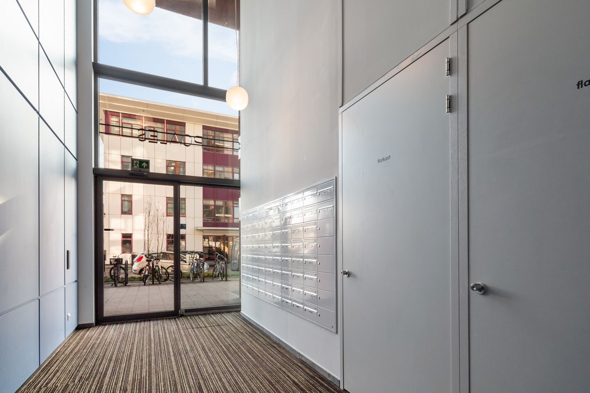 Het ruime balkon biedt overdag volop zon. Een bijzonder detail is de entree van de woning, die direct uitkomt in de groene binnentuin. Een rustige plek om even buiten te zitten of contact te maken met de buren.