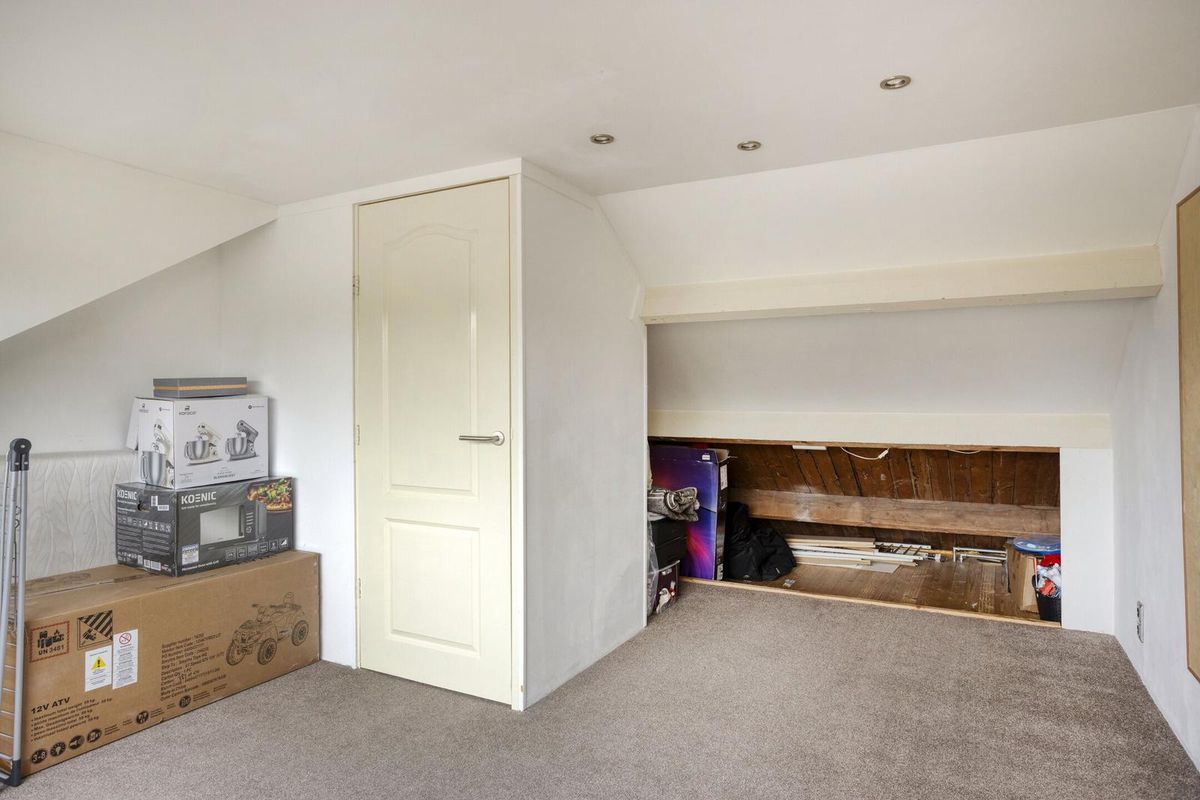 Op de eerste verdieping vind je twee ruime slaapkamers en een nette badkamer met douche, wastafel en tweede toilet. De zolderverdieping biedt een derde, royale slaapkamer die desgewenst kan worden uitgebreid met een extra dakkapel aan de andere zijde. Ideaal als slaapkamer, werkkamer of logeerruimte!