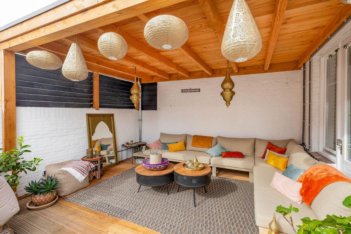 Het is een ruim terras (ca 20m²), gelegen op het zuiden, met overkapping waar je geniet van veel rust ondanks dat je in de binnenstad van Venlo woont.