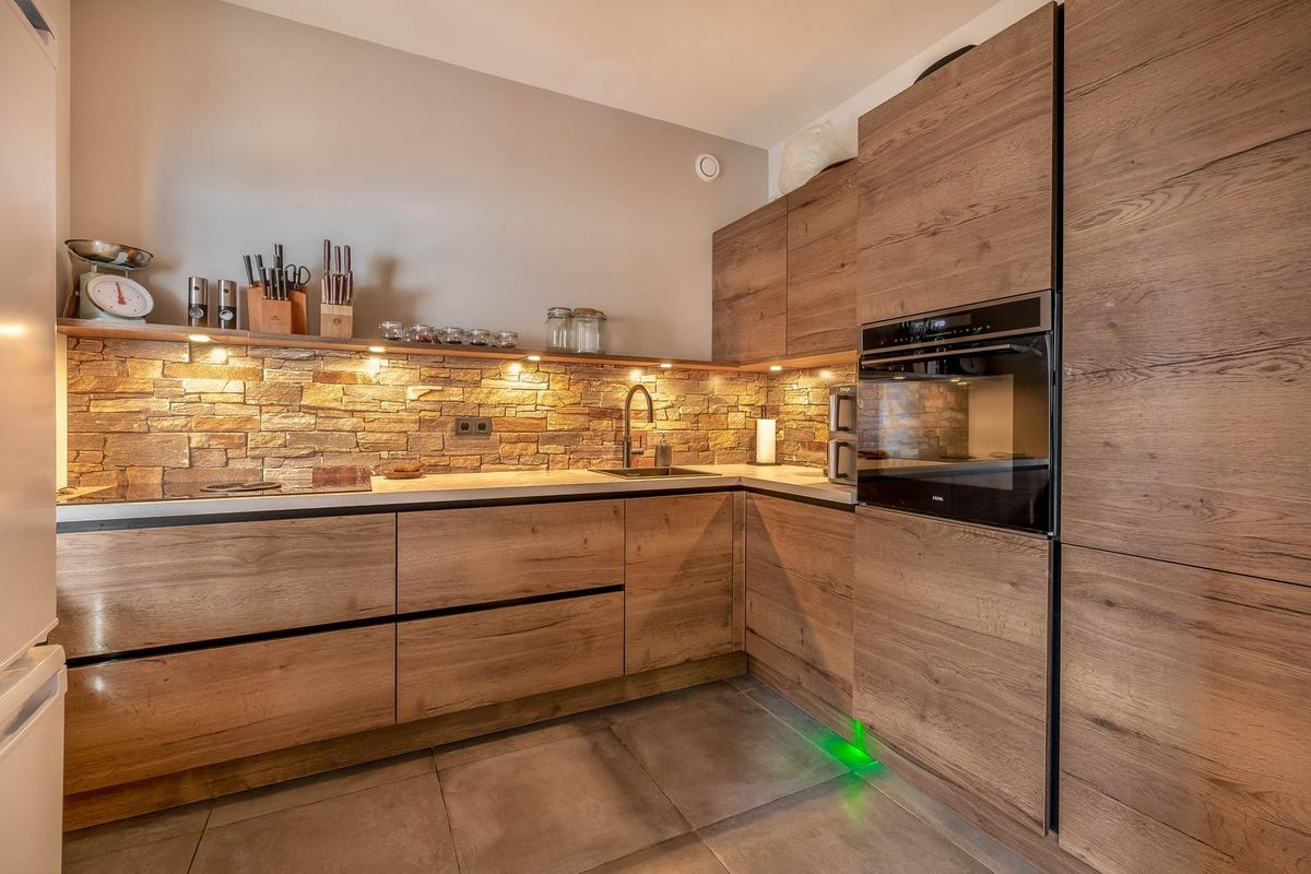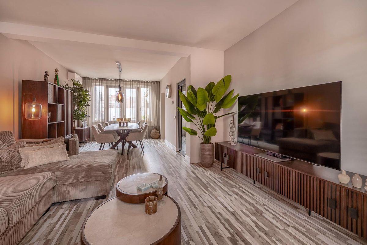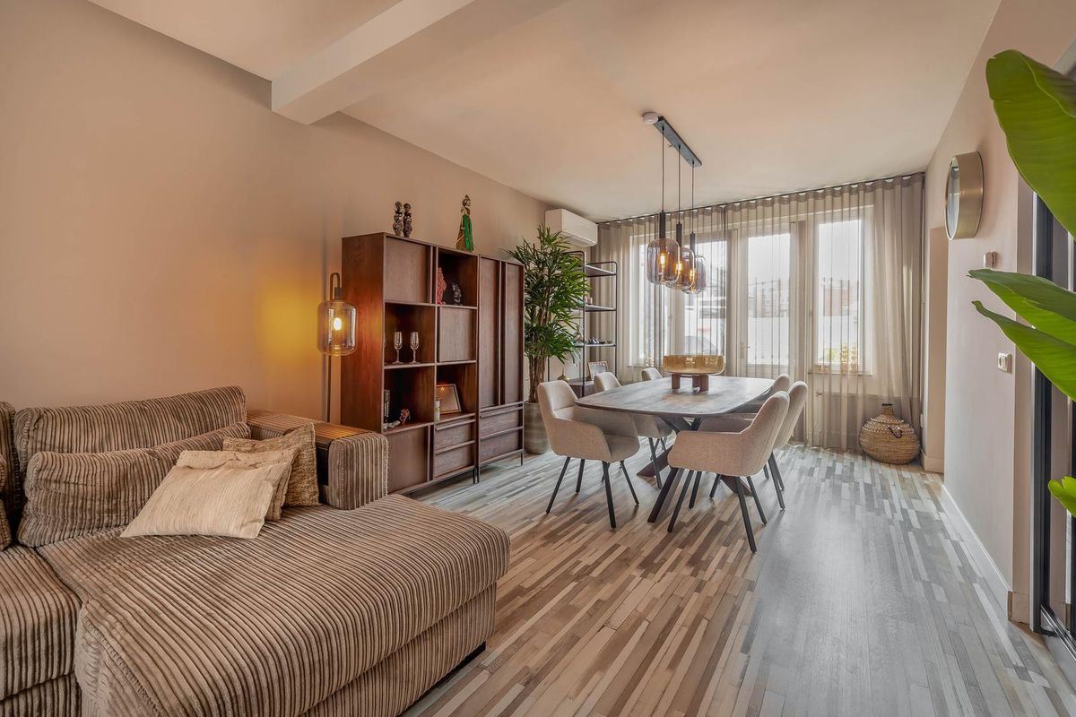 De zeer ruime woonkamer (ca. 30m²) heeft een fijne natuurlijke lichtinval en grenst aan de half open keuken. Er is airco aanwezig. De keuken (ca. 8m²) is voorzien van een oven, inductiekookplaat met geïntegreerde afzuiging, een vaatwasser, koelkast en diepvries. Vanuit de woonkamer en keuken is het zeer ruime dakterras bereikbaar.