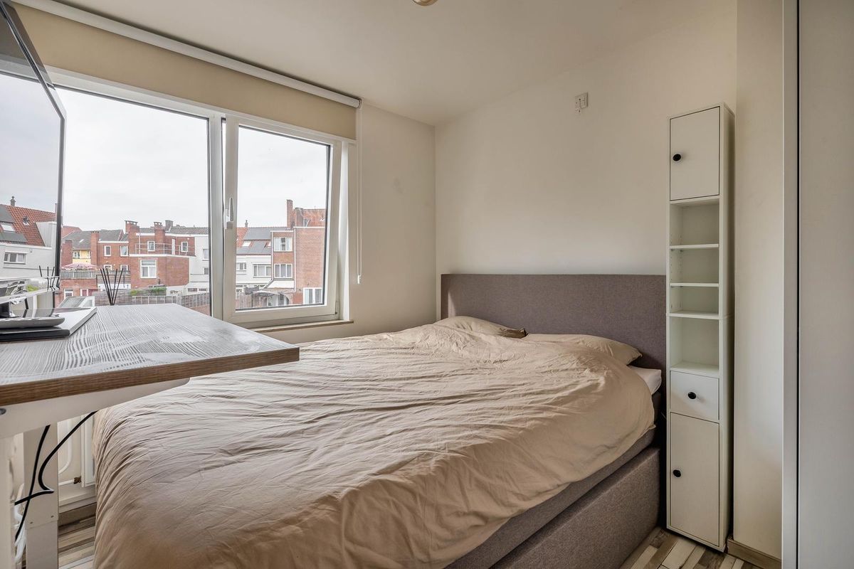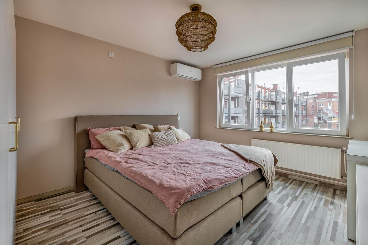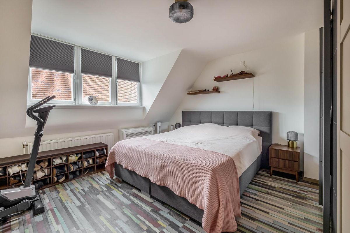 De vaste trap biedt toegang tot de overloop van de tweede verdieping. Vanuit hier is er toegang tot de drie slaapkamers (ca. 8,5m², 14m² en 17m²). De grote slaapkamer aan de straatzijde profiteert van extra ruimte en een prettige lichtinval dankzij de dakkapel. Twee slaapkamers zijn voorzien van airco.