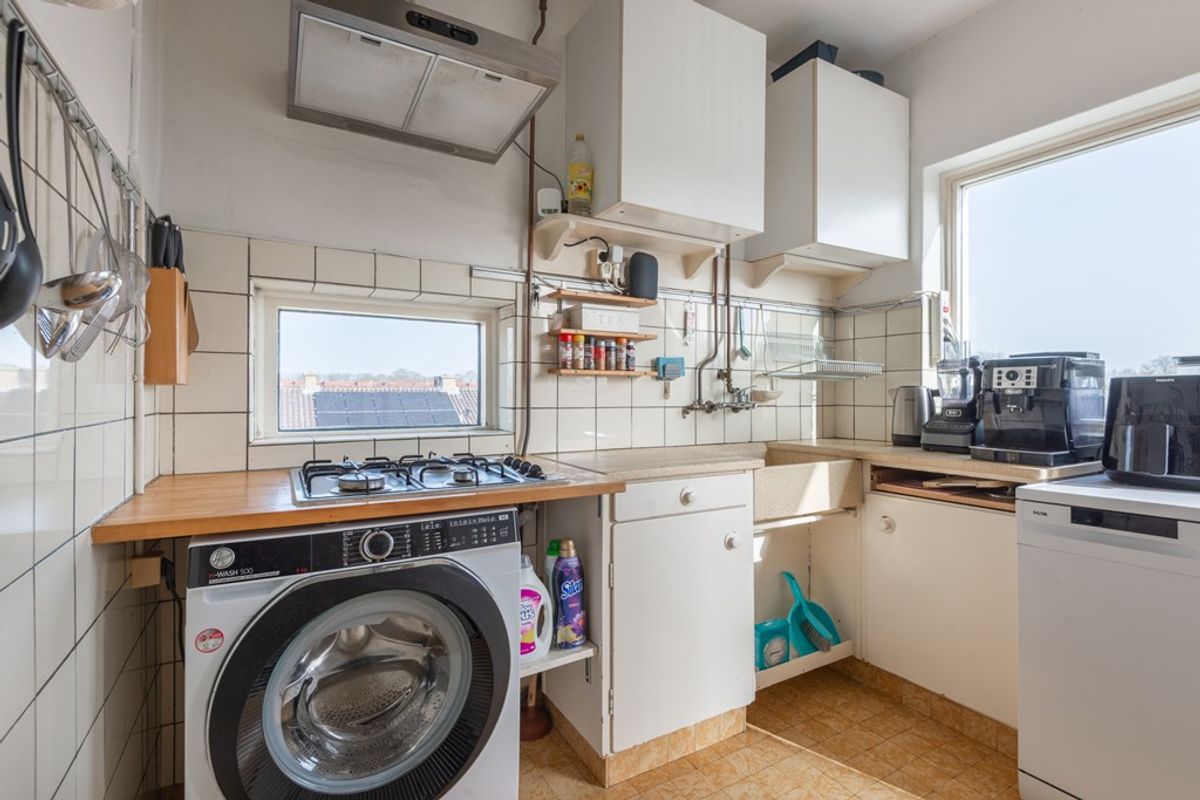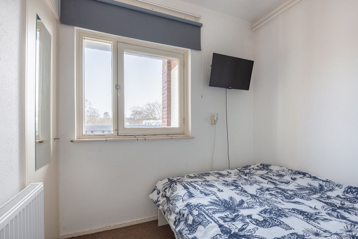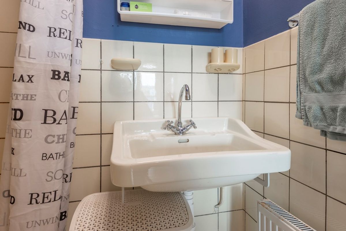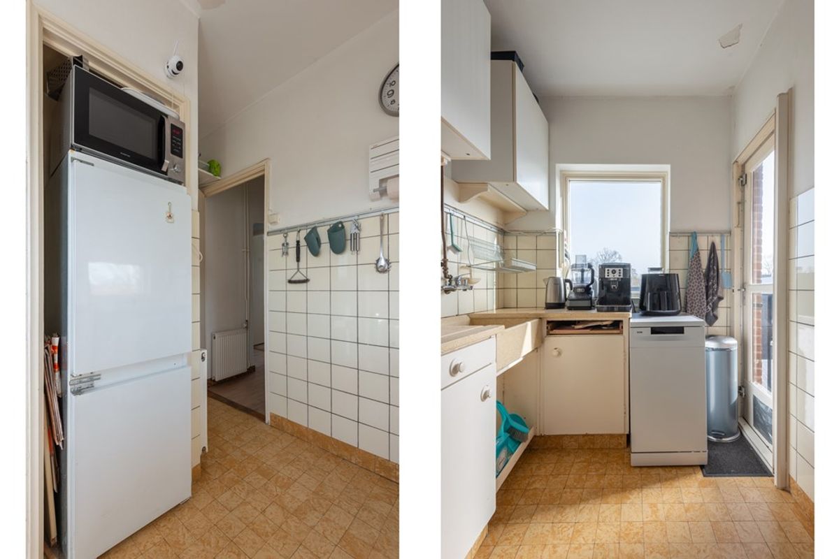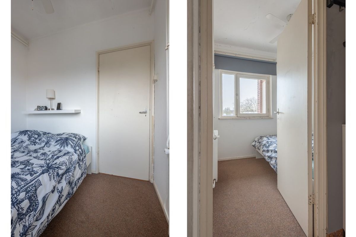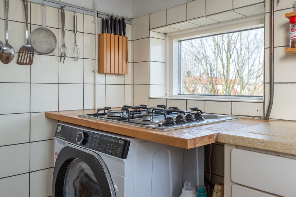 De tweede slaapkamer is gelegen aan de voorzijde en direct vanuit de hal bereikbaar. Middels het doorbreken van de muur naar de keuken is desgewenst relatief eenvoudig een ruime woon- / eetkeuken te creëren. De keuken is in de basis nog de authentieke keuken uit 1954! Uiteraard aangevuld met de gangbare losse apparatuur om het gebruiksgemak van deze tijd te waarborgen. Voor de liefhebber wellicht een “opknapproject” of een prima ruimte om je eigen moderne keuken te installeren.