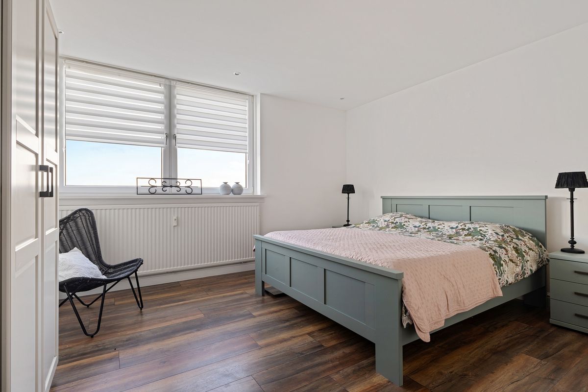 Tussenhal met toegang tot het toilet, de badkamer en 2 slaapkamers. Het toilet is modern en licht betegeld. De badkamer is modern, donker betegeld en voorzien van een heerlijke inloopdouche, een fraai wastafelmeubel, een kastruimte met aansluitingen voor was-apparatuur en er is voldoende bewegingsruimte. De beide slaapkamers zijn ruim van opzet (ca. 13m² en 19m²). Vanuit de hoofdslaapkamer is er prachtig uitzicht over Katwijk.