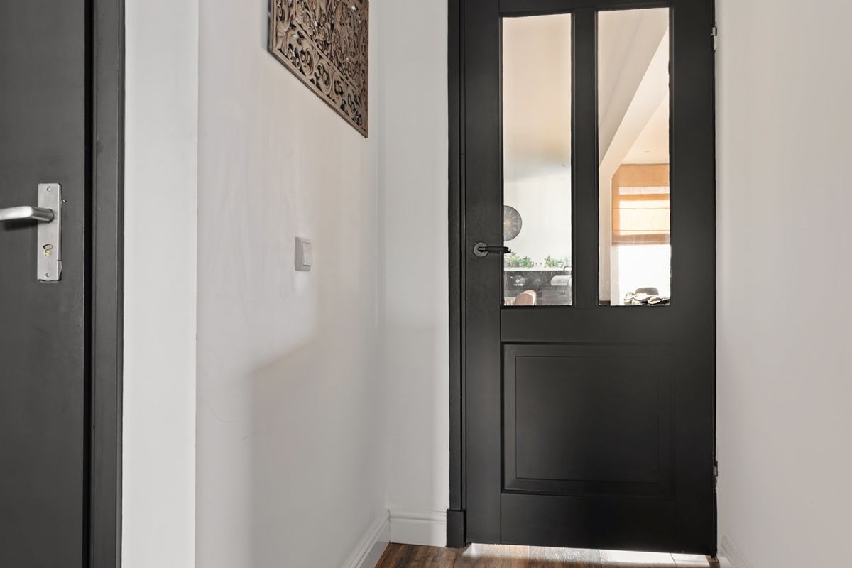 Entree appartement: ruime hal met garderoberuimte, moderne meterkast en een berg-/voorraadkast.