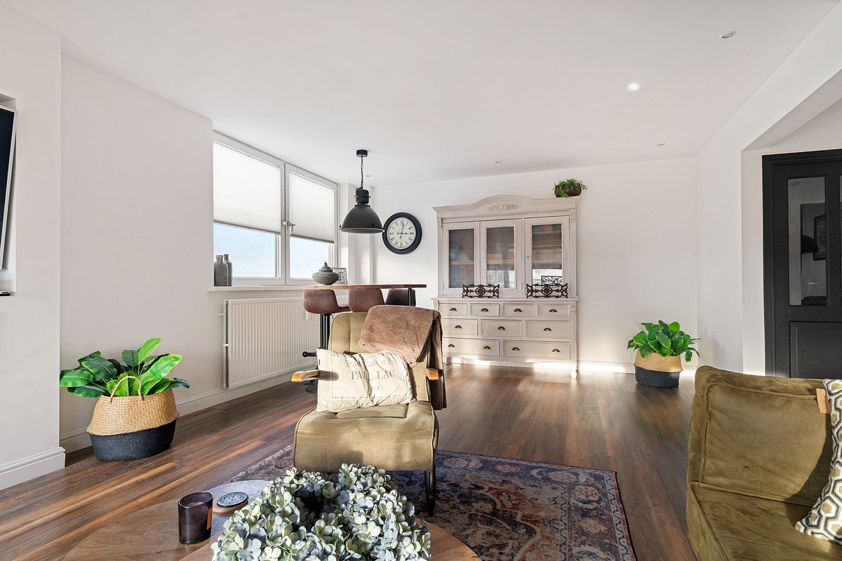 De woonkamer is ruim opgezet en biedt dankzij de grote raampartijen een overvloed aan daglicht én fantastisch uitzicht. Vanuit de woonkamer heeft u toegang tot het zonnige balkon, waar u ’s middags en ’s avonds heerlijk kunt zitten. De open keuken is strak en praktisch ingericht, voorzien van moderne inbouwapparatuur en voldoende werkruimte. O.a. aanwezig zijn een Quooker, Bora afzuiging in de inductie kookplaat, vaatwasser en een luxe koffiezet automaat.
