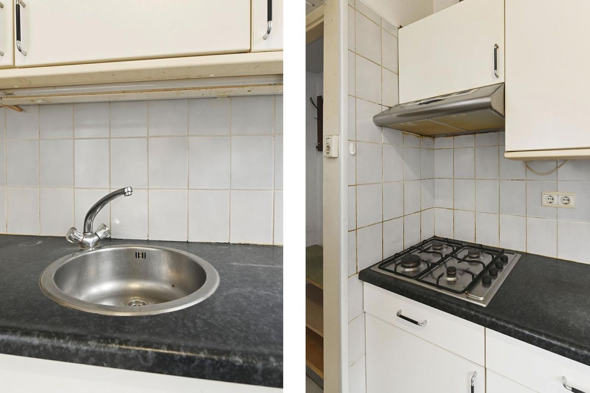 • Woonkeuken met wasmachineaansluiting en toegang tot de achtertuin