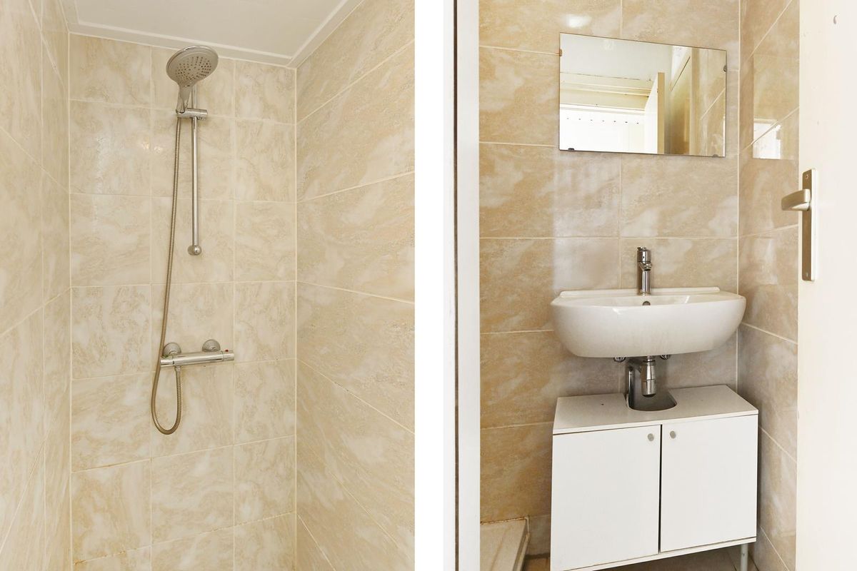 • Badkamer met douche en wastafel