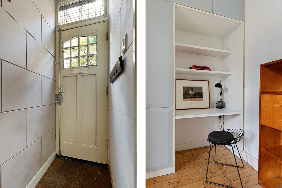 Via de eigen entree vanaf de straat kom je binnen in de hal, die toegang biedt tot de voorkamer en de badkamer.