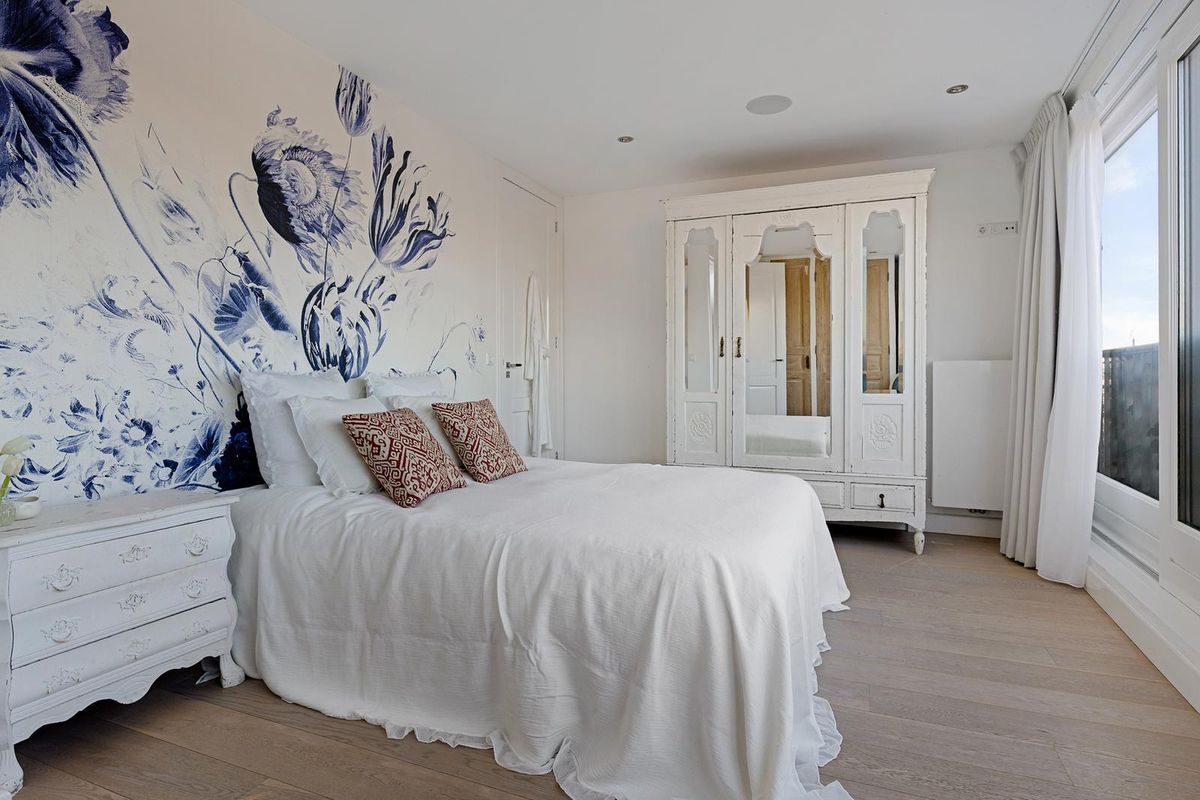 From the landing, a fixed staircase leads up to the roof terrace of approximately 40 m². A spectacular outdoor space with plenty of privacy, sunlight from early morning until late evening, and a 360-degree panoramic view over Amsterdam’s rooftops, a view that never gets old.