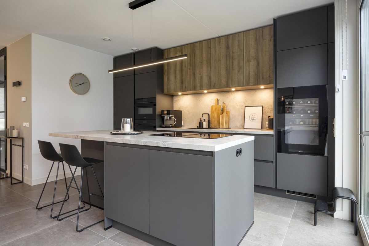De open woonkeuken (ca. 23 m²) is voorzien van een kookeiland met inductiekookplaat met geïntegreerde afzuiging, stoomoven, combi-oven, vaatwasser, koelkast, vriezer, wijnkoelkast en wasbak met Cooker. De gehele begane grond is voorzien van vloerverwarming.