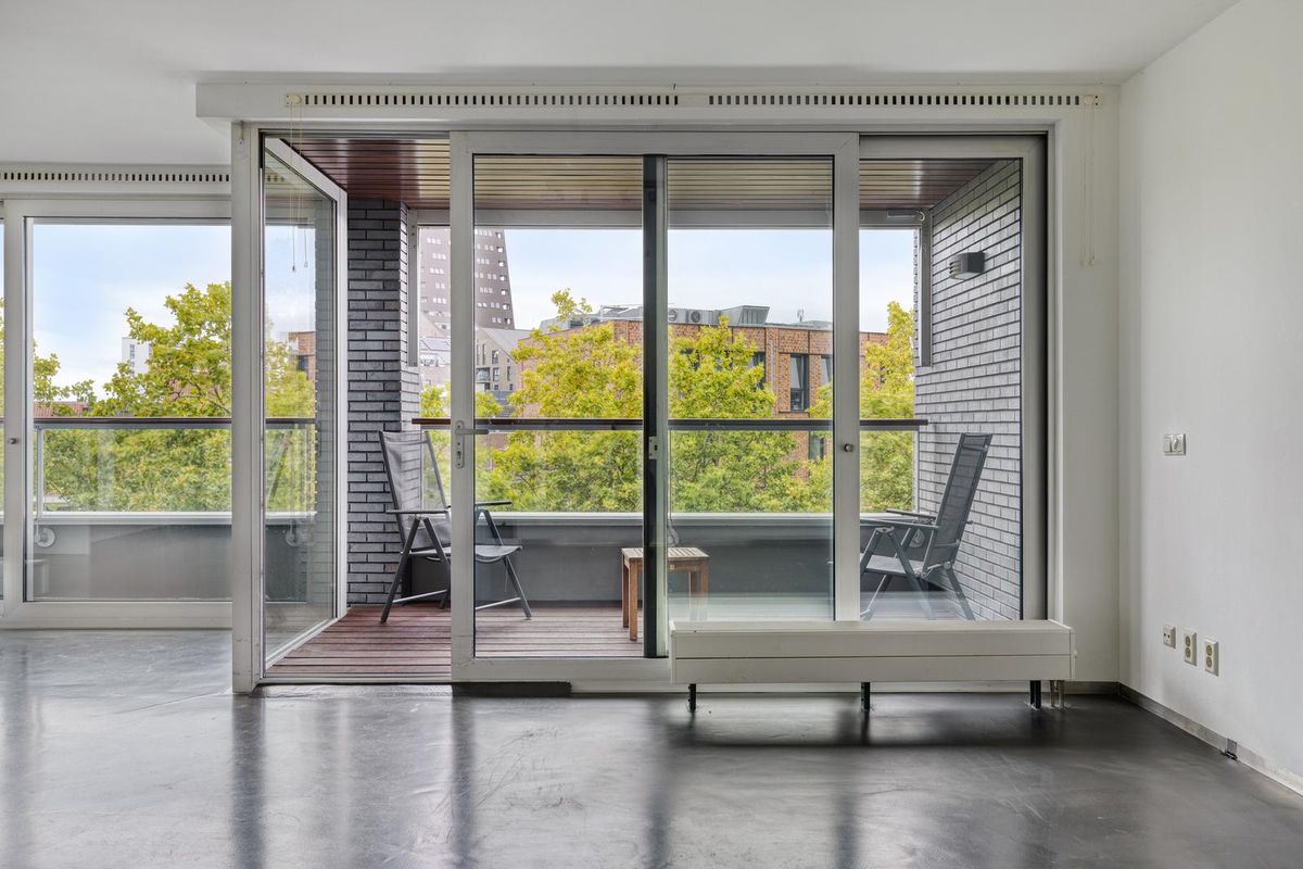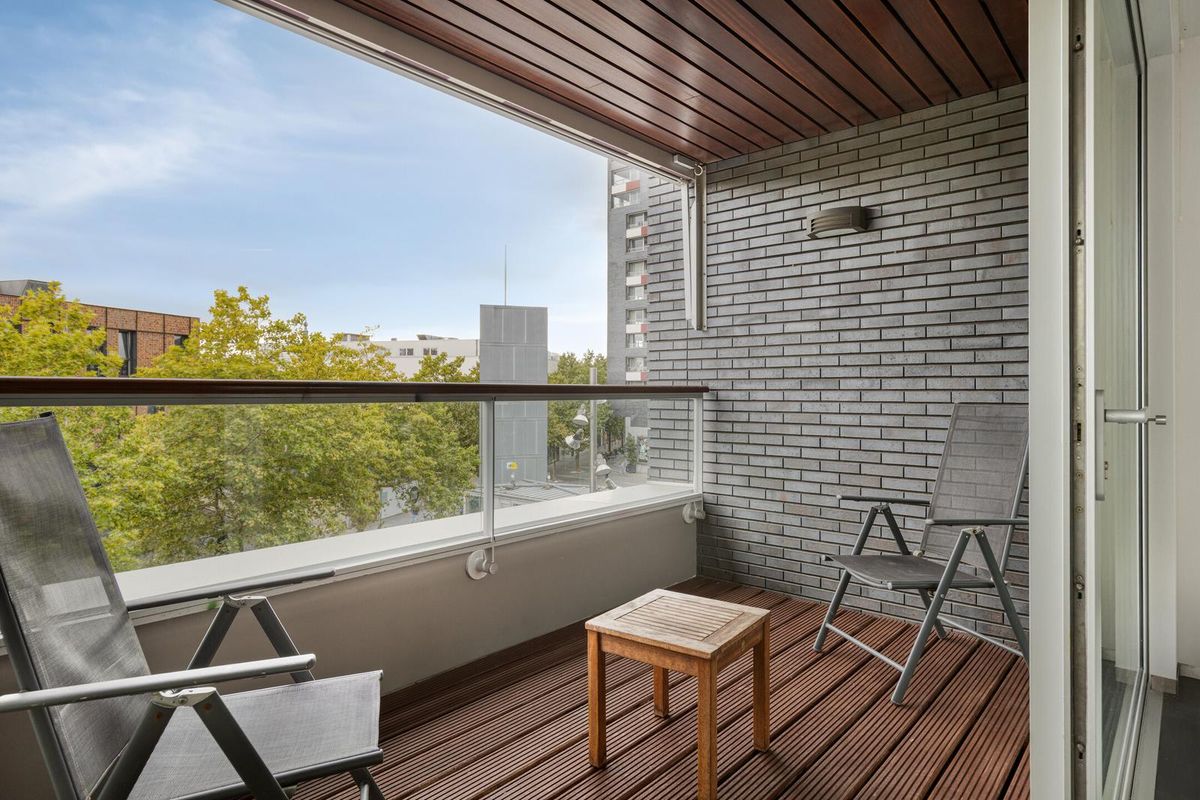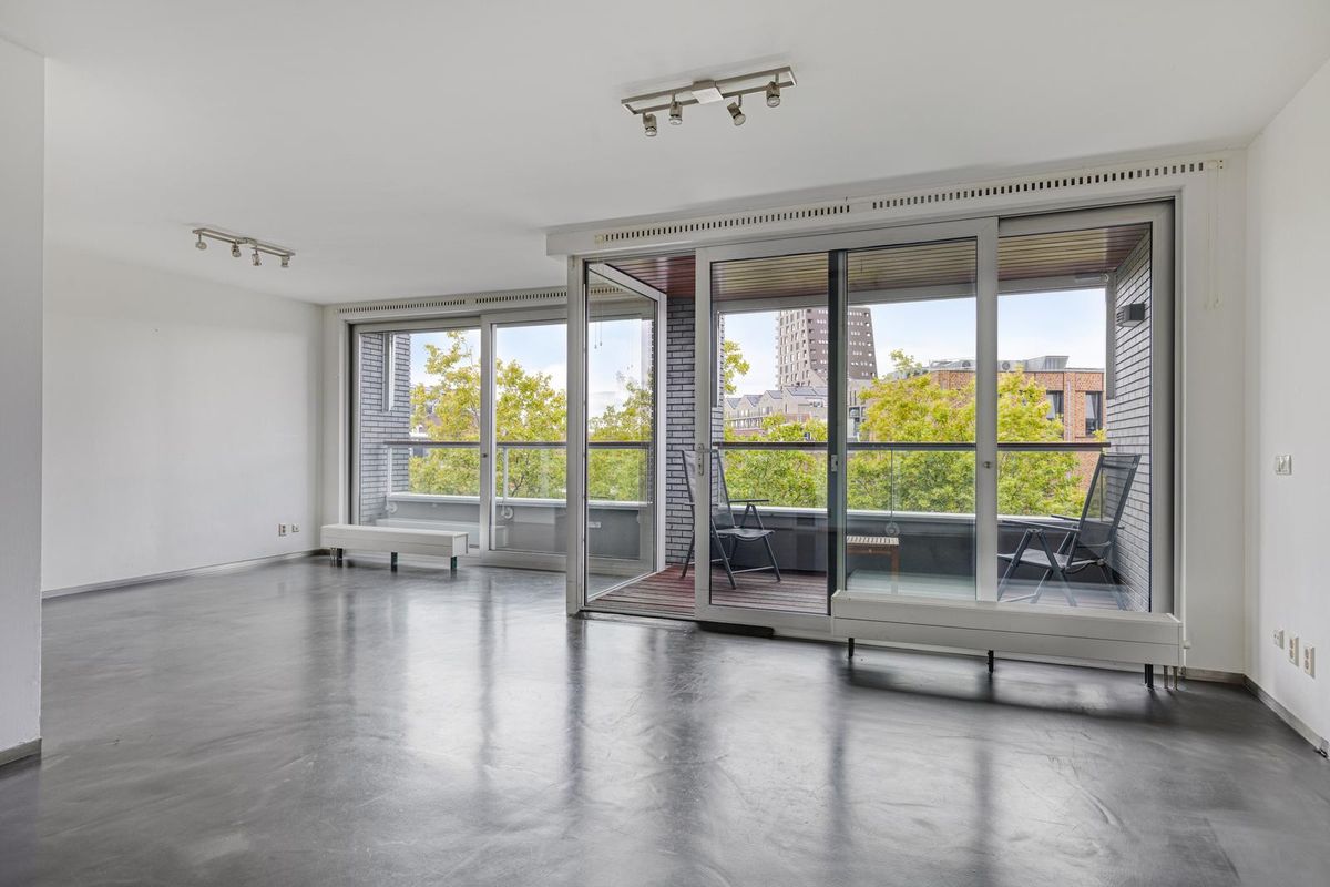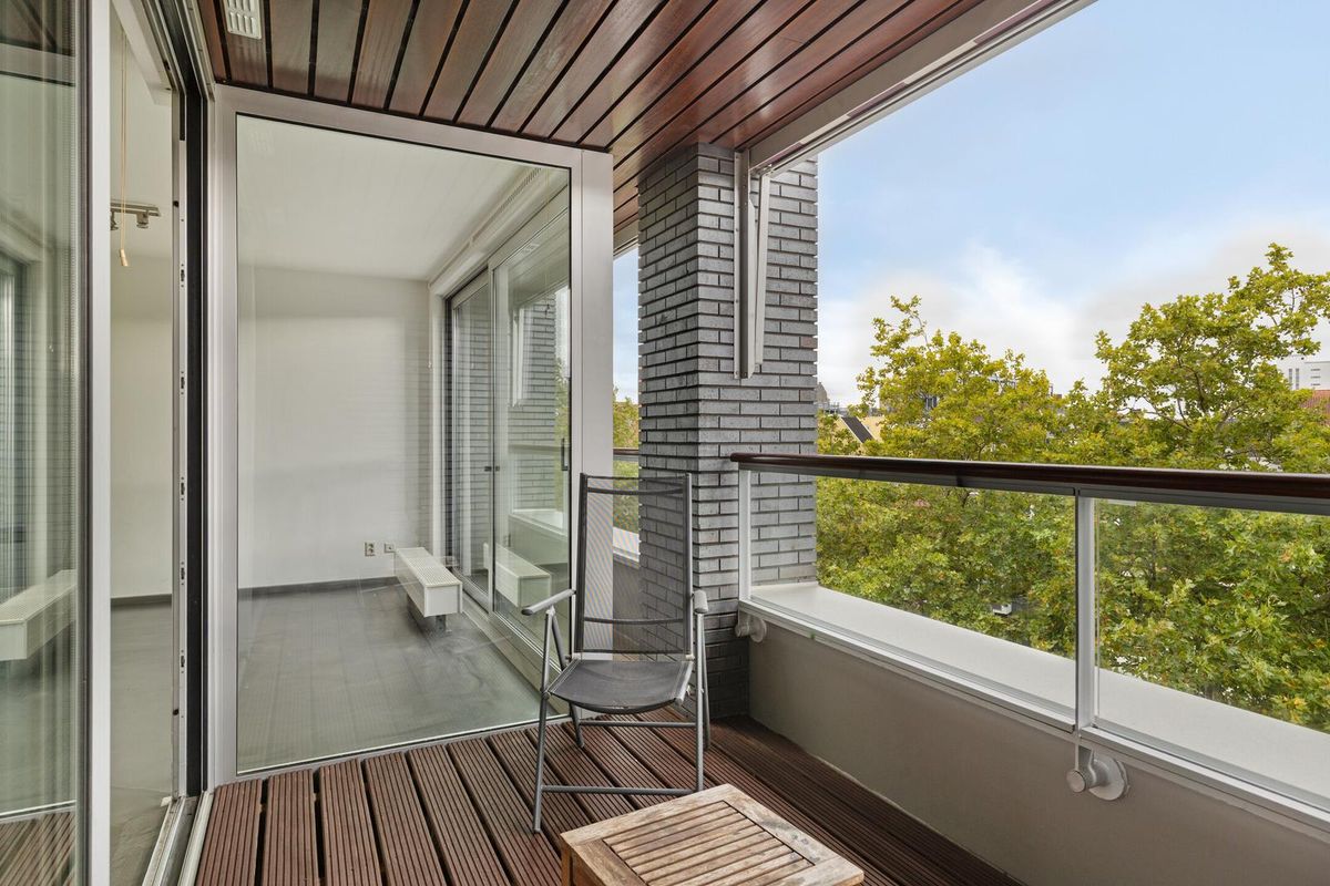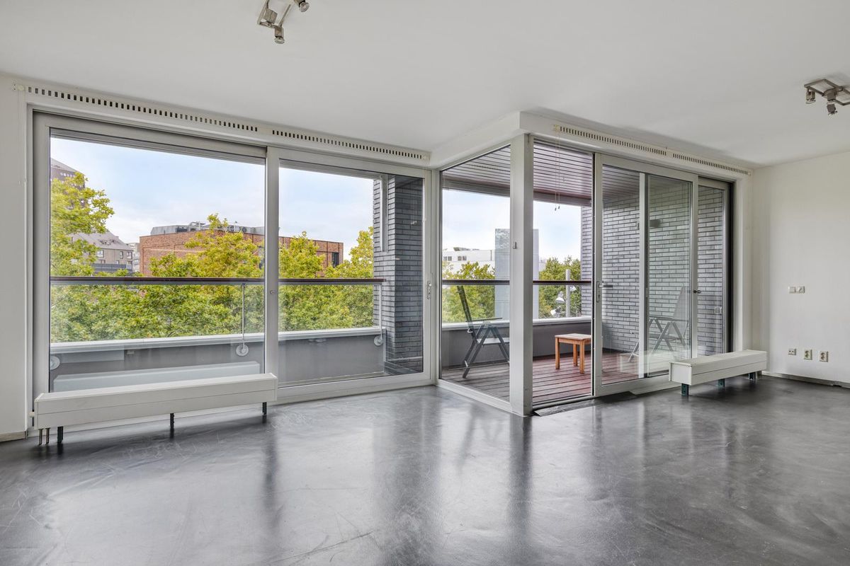 De royale woonkamer is een heerlijke plek om te ontspannen. Dankzij de grote raampartijen en schuifpui geniet u hier van volop licht en zicht op het groen en de stad. Zet de deuren open en stap het overdekte balkon op, een fijn verlengstuk van de woonkamer waar u beschut kunt genieten van een kop koffie in de ochtendzon of een goed glas wijn aan het einde van de dag.
