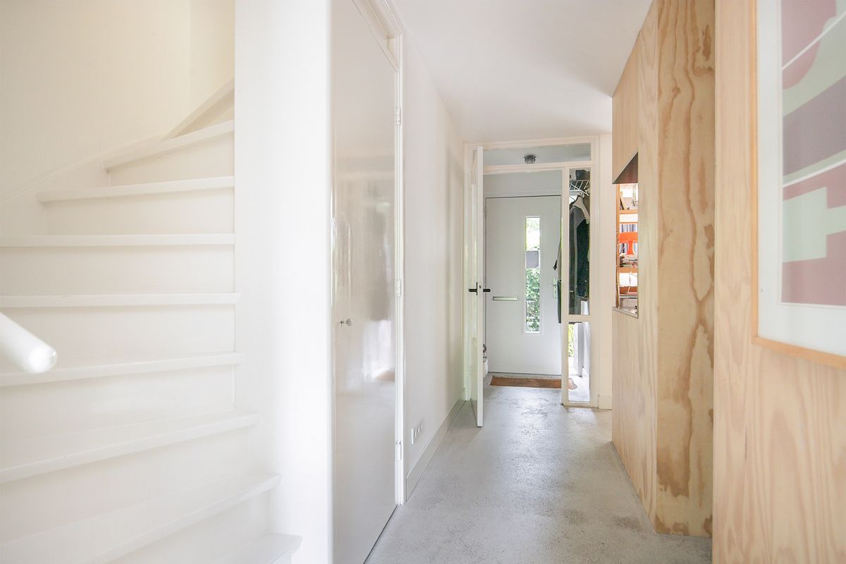 All rooms on the ground floor are accessible from the entrance. There is a toilet and a washing machine connection. The front room is ideal for working from home or for storing bicycles. The room at the rear includes a small kitchenette and a cozy seating area to relax. There is private parking at the front of the property, and the west-facing garden at the back offers plenty of afternoon and evening sun. The entire ground floor is equipped with underfloor heating.