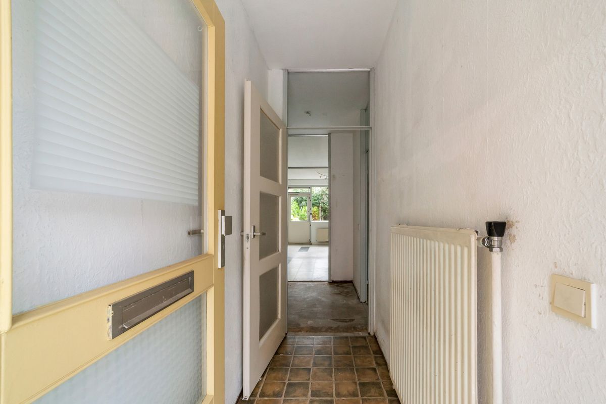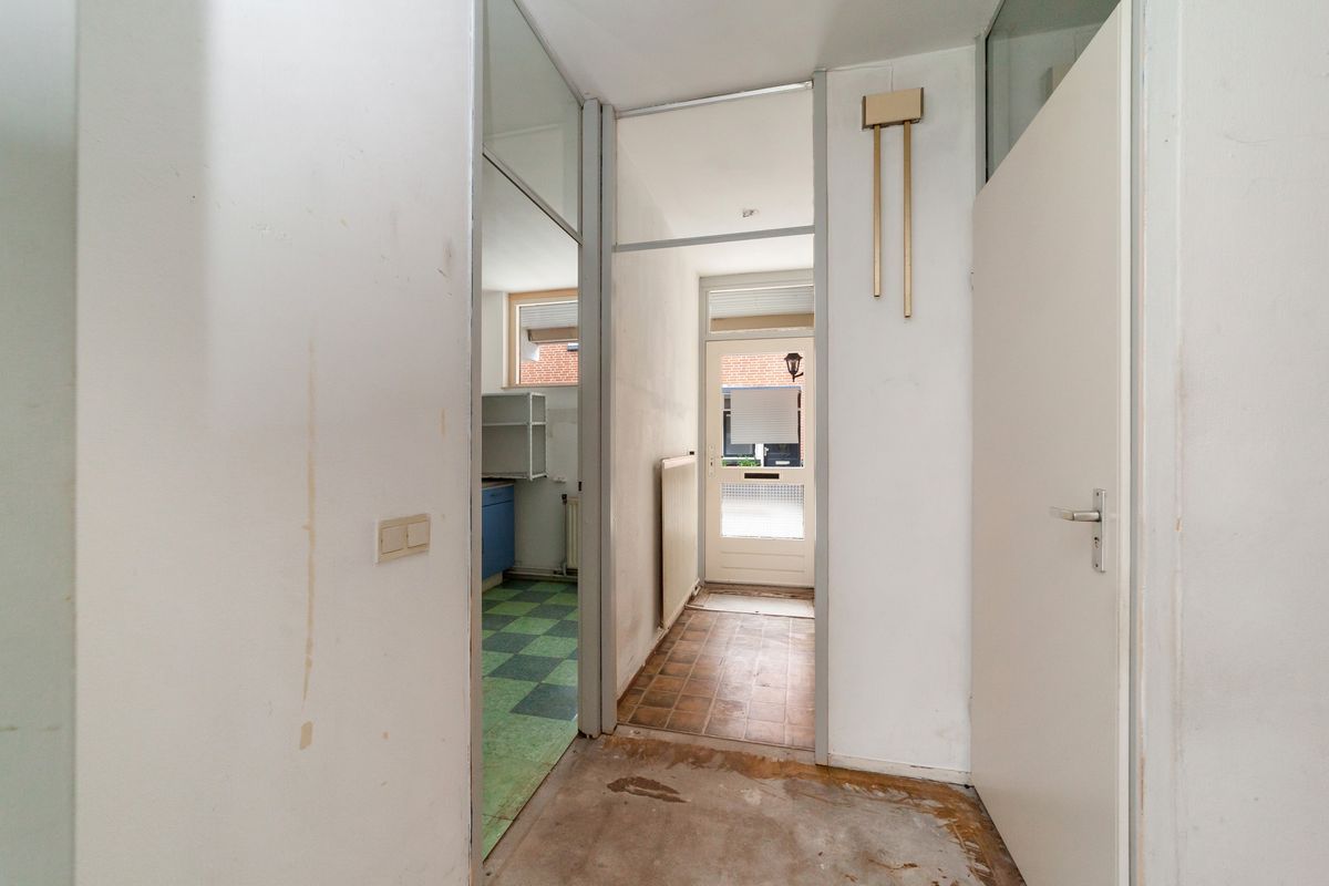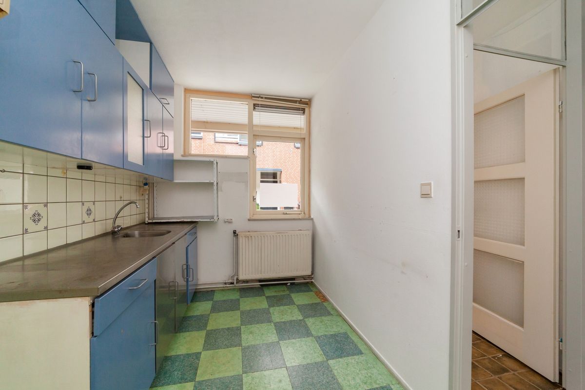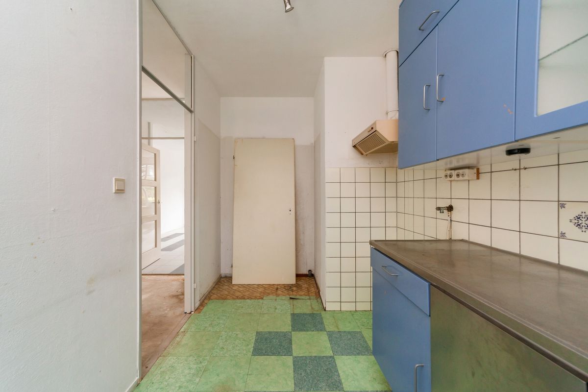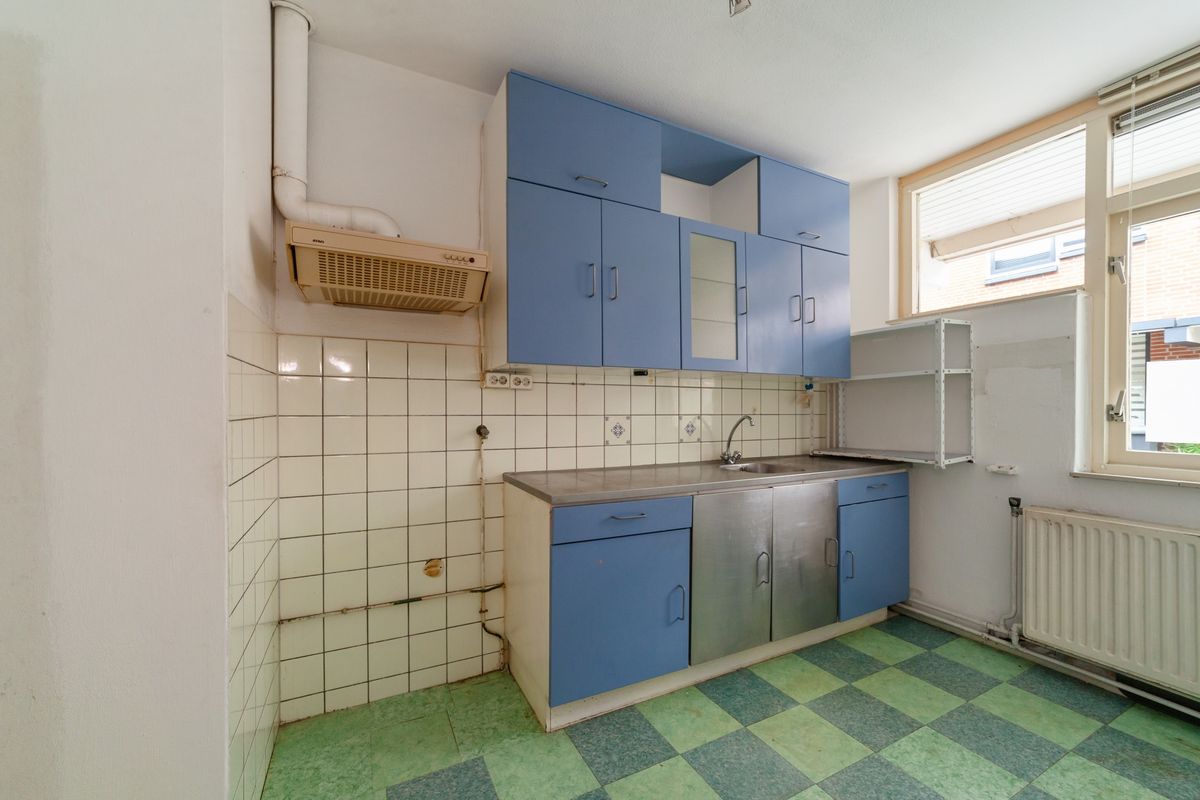 Aan de voorzijde treft u de eenvoudige keuken met een recht keukenblok zonder inbouwapparatuur. Hiernaast beschikt de keuken over voldoende ruimte voor een praktische indeling en een, desgewenst, open verbinding met de woonkamer.