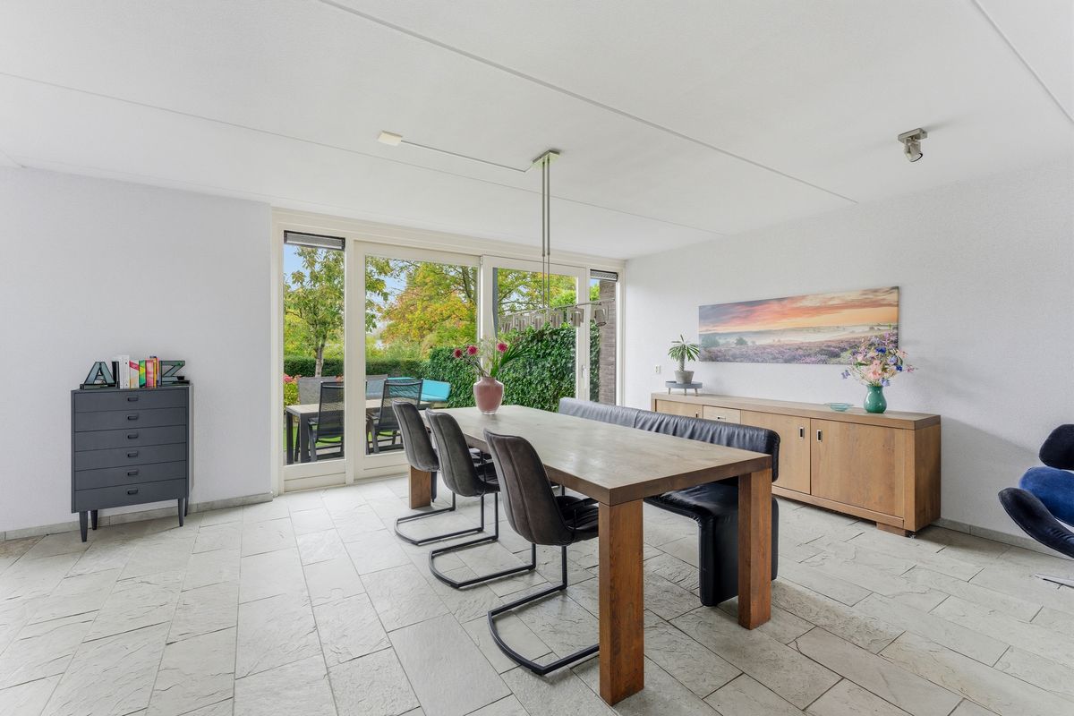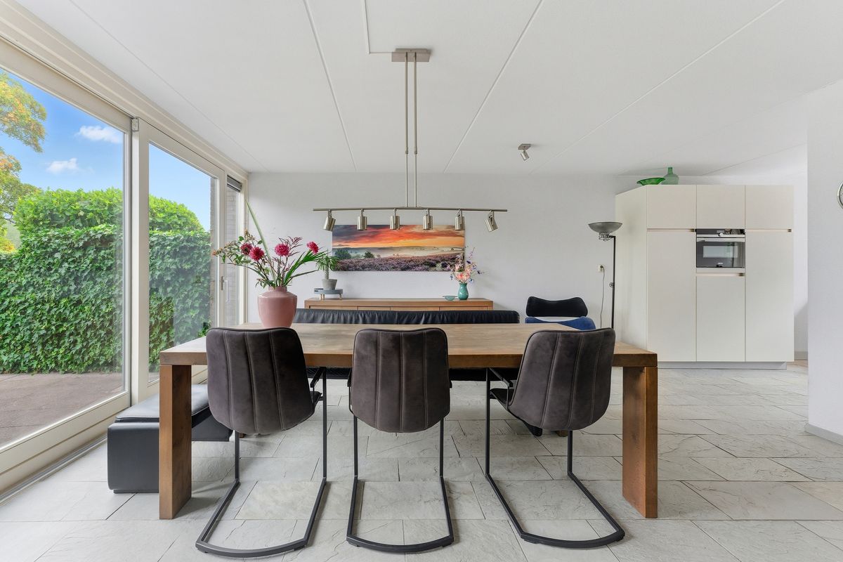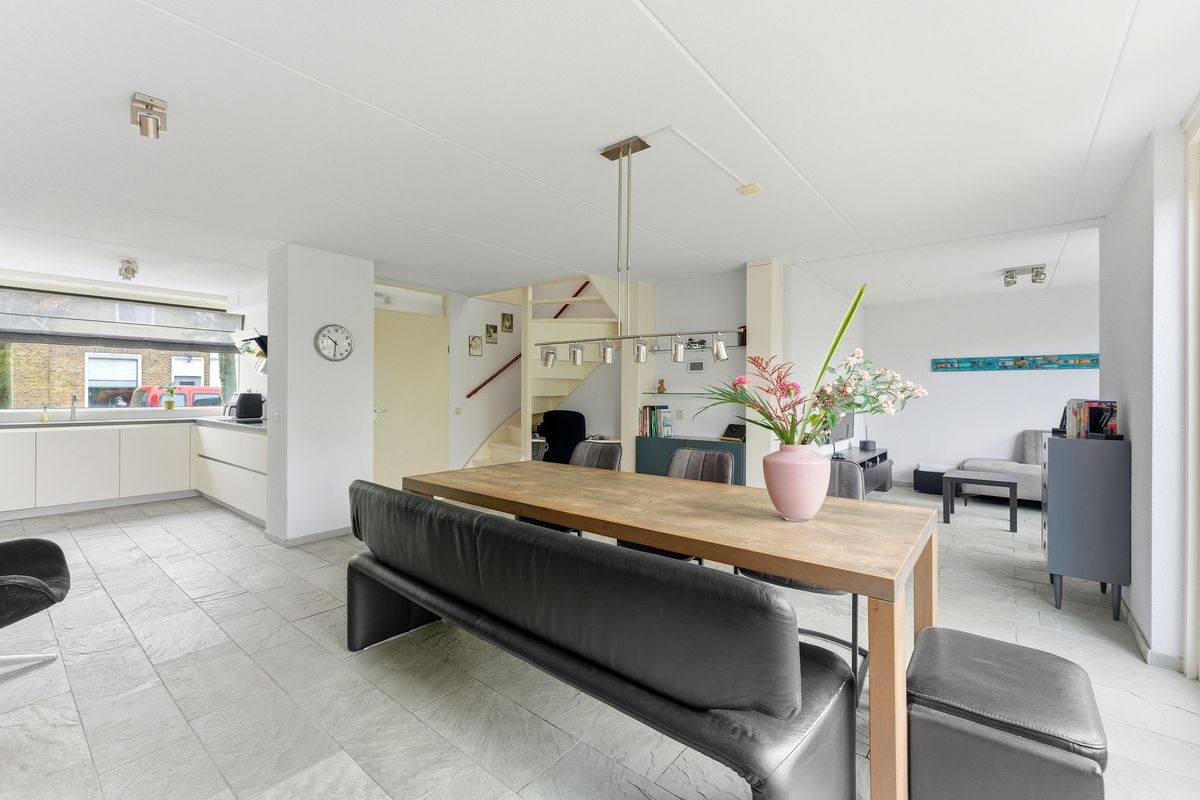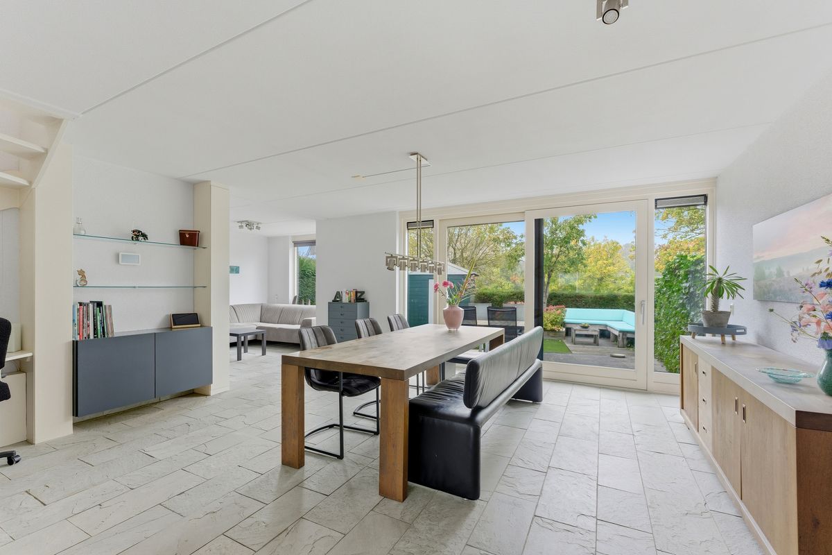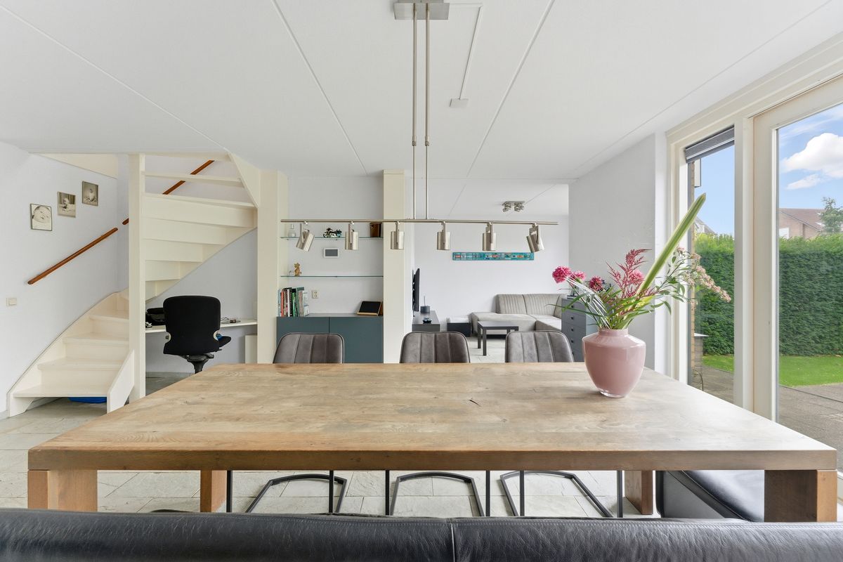 Woonkamer: Wat direct opvalt in de woonkamer is het royale gevoel van ruimte en het prettige licht dat via de grote schuifpui naar binnen valt. De zithoek is tuingericht, waardoor je een mooi uitzicht hebt op het groen achter de woning. De vloerverwarming over de gehele begane grond zorgt voor extra comfort. Door de ruime opzet is er genoeg plek voor zowel een zithoek als een grote eettafel. De schuifpui verbindt het buiten met het binnen. Vanuit de woonkamer loop je zo de keuken in.