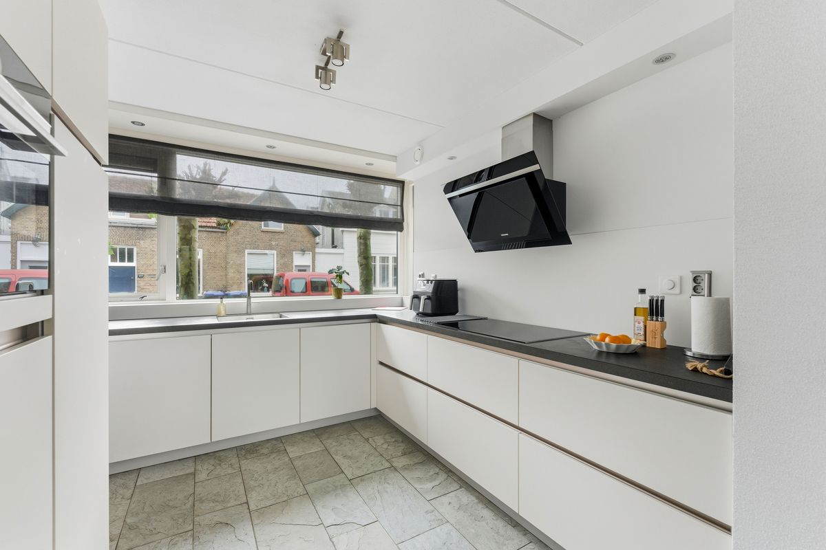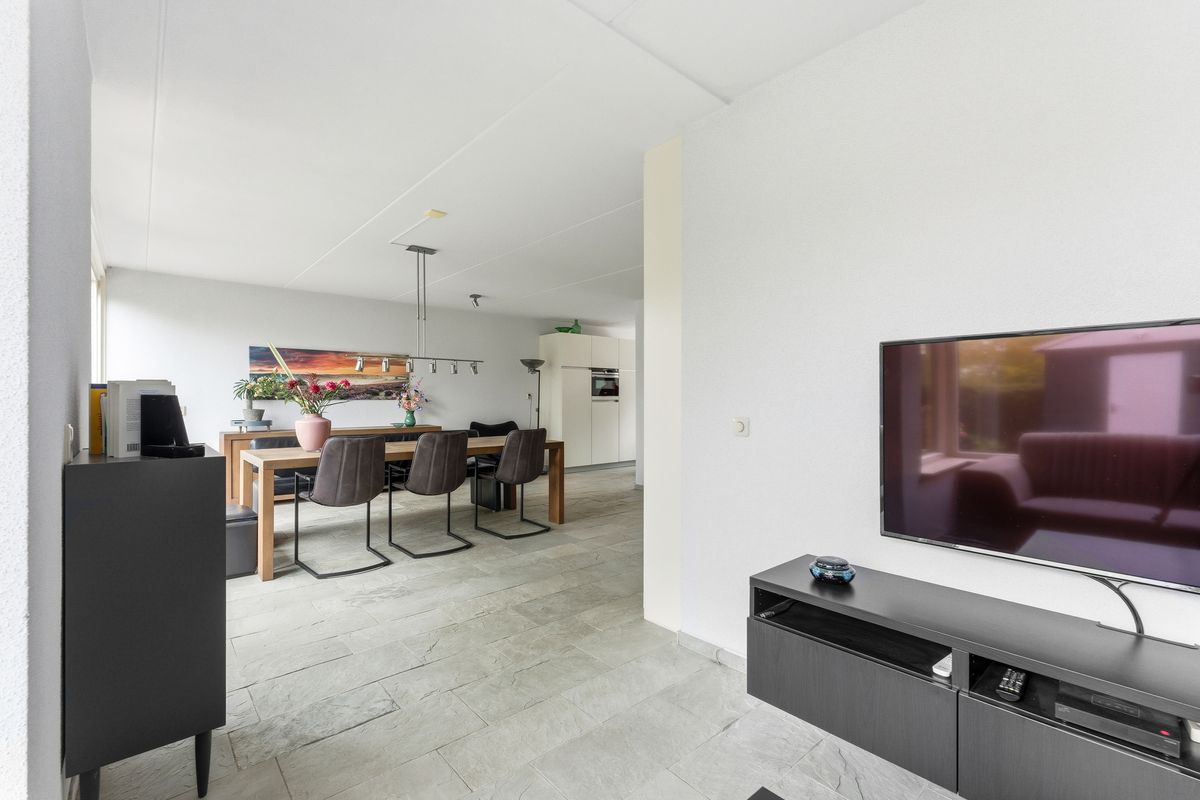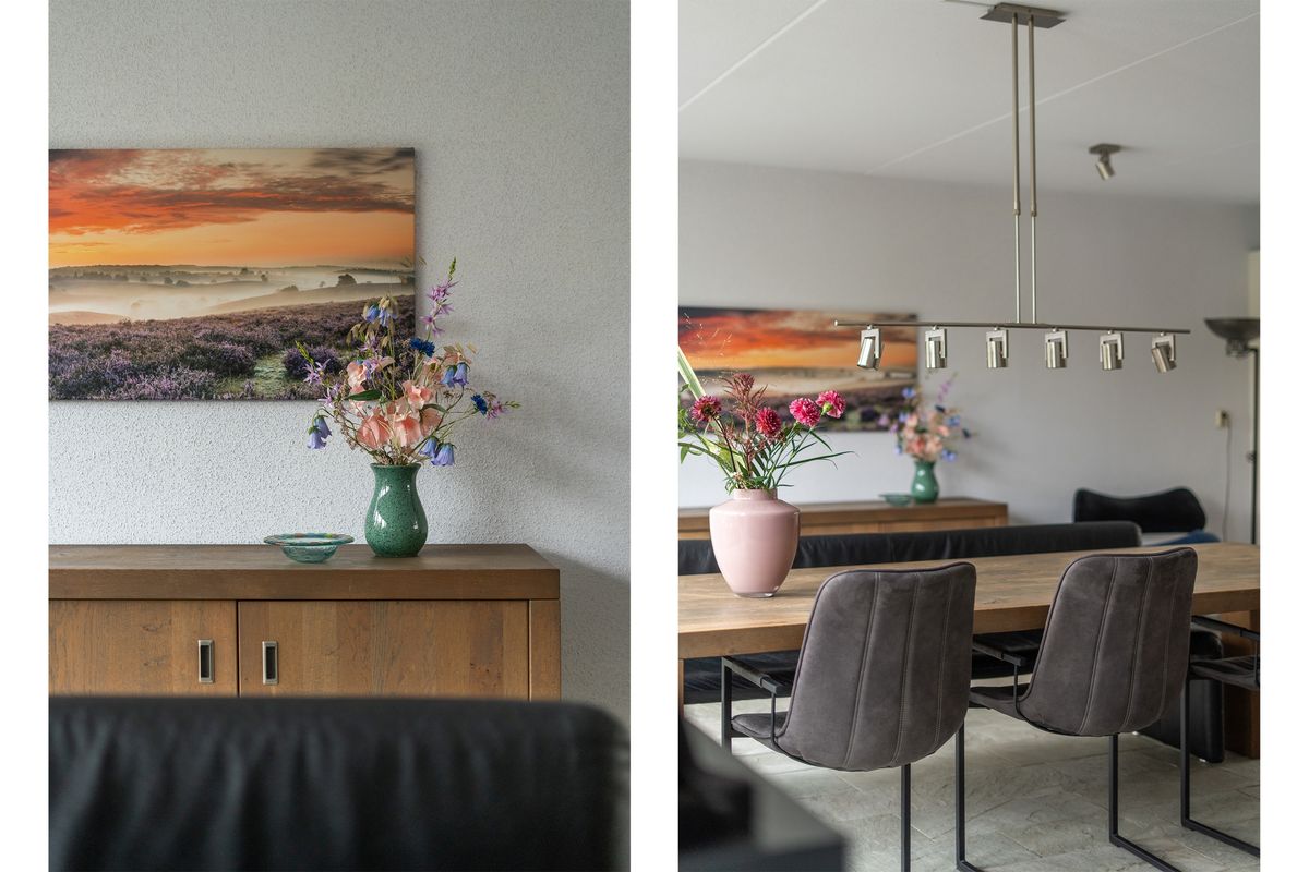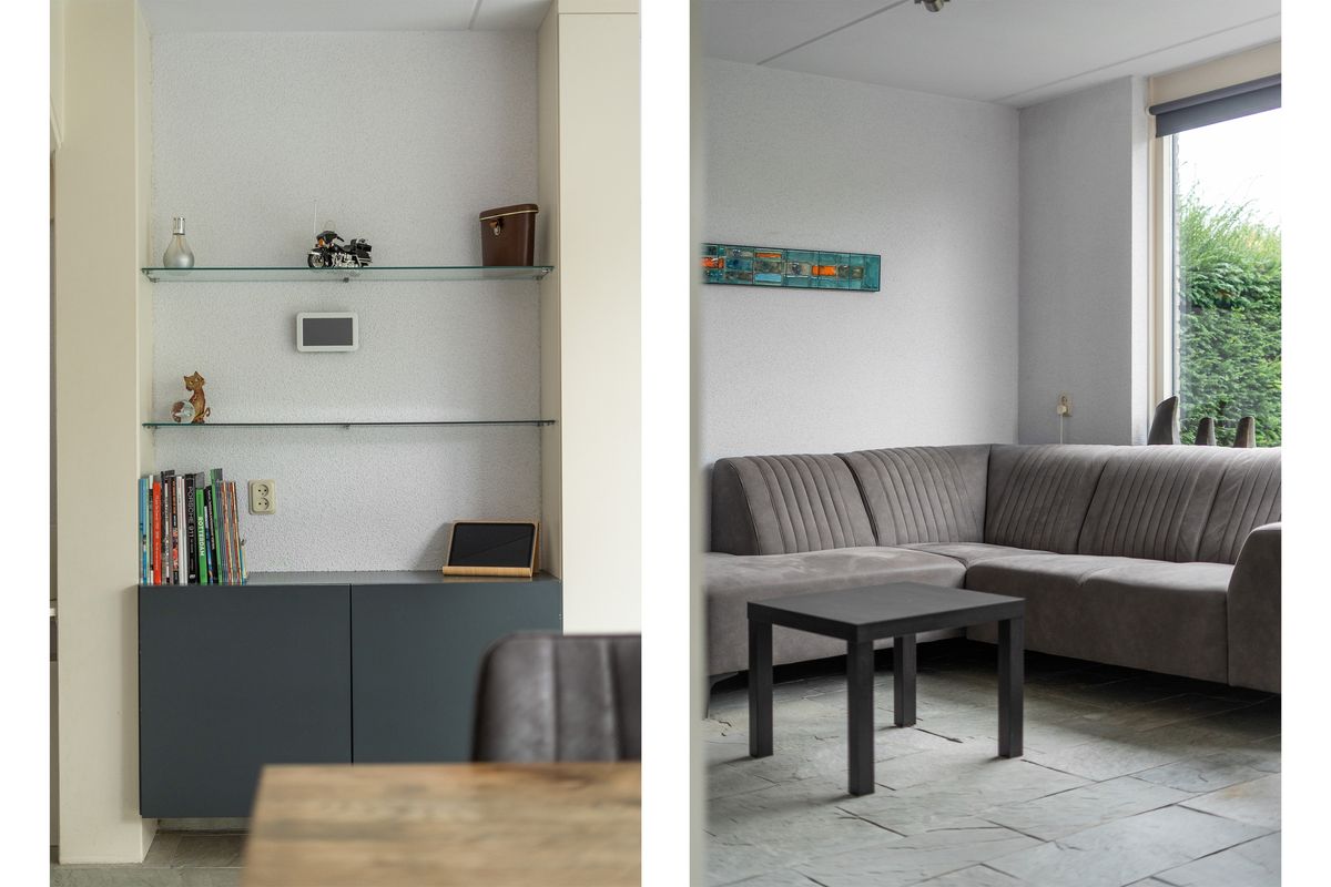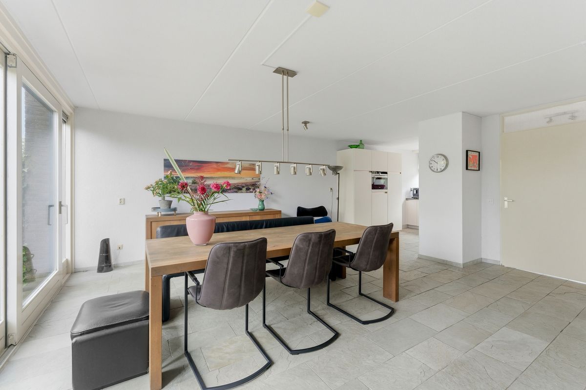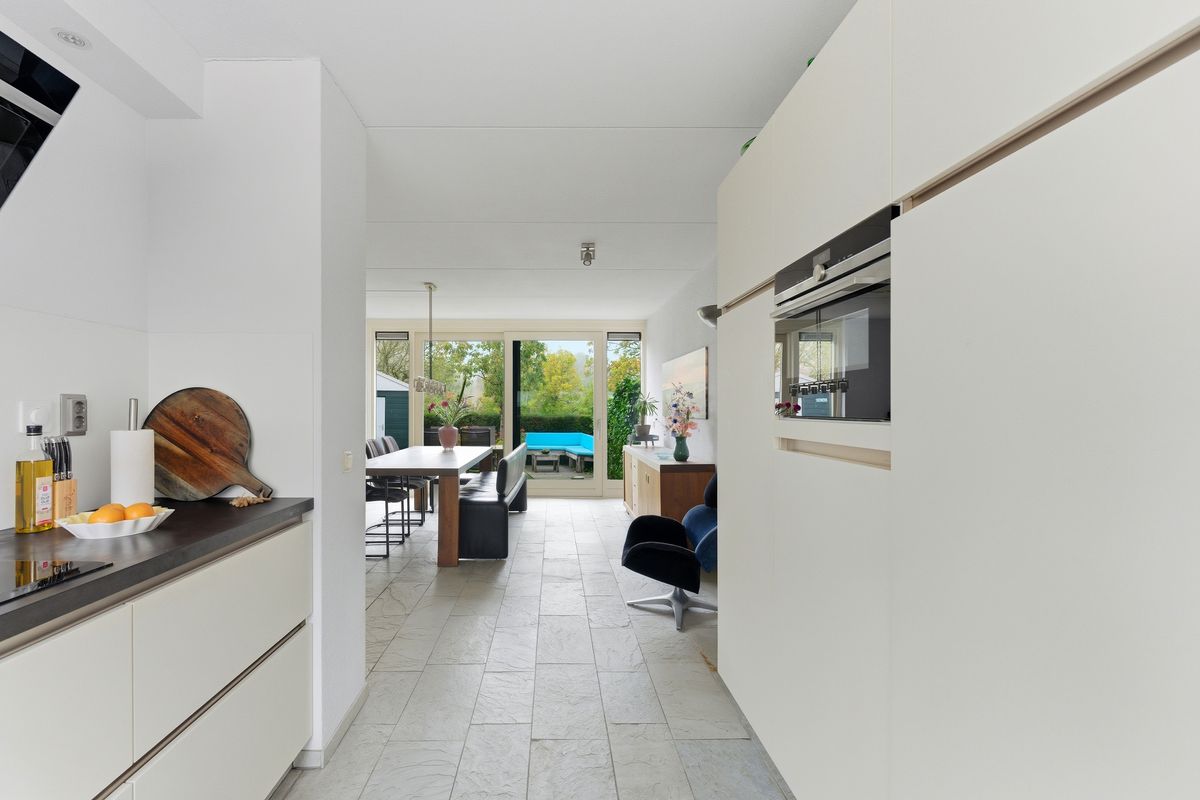 Woonkamer: Wat direct opvalt in de woonkamer is het royale gevoel van ruimte en het prettige licht dat via de grote schuifpui naar binnen valt. De zithoek is tuingericht, waardoor je een mooi uitzicht hebt op het groen achter de woning. De vloerverwarming over de gehele begane grond zorgt voor extra comfort. Door de ruime opzet is er genoeg plek voor zowel een zithoek als een grote eettafel. De schuifpui verbindt het buiten met het binnen. Vanuit de woonkamer loop je zo de keuken in.