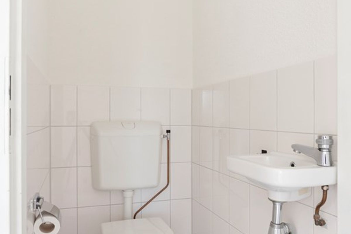 De badkamer, eveneens toegankelijk vanuit de hal, is volledig betegeld en verzorgd afgewerkt. U beschikt hier over een douchecabine, wastafel met spiegel en een radiator. De ruimte is instapklaar, maar biedt ook mogelijkheden om deze naar eigen wens te moderniseren. Daarnaast is er een separate toiletruimte, wat extra comfort en privacy biedt voor u en uw gasten.