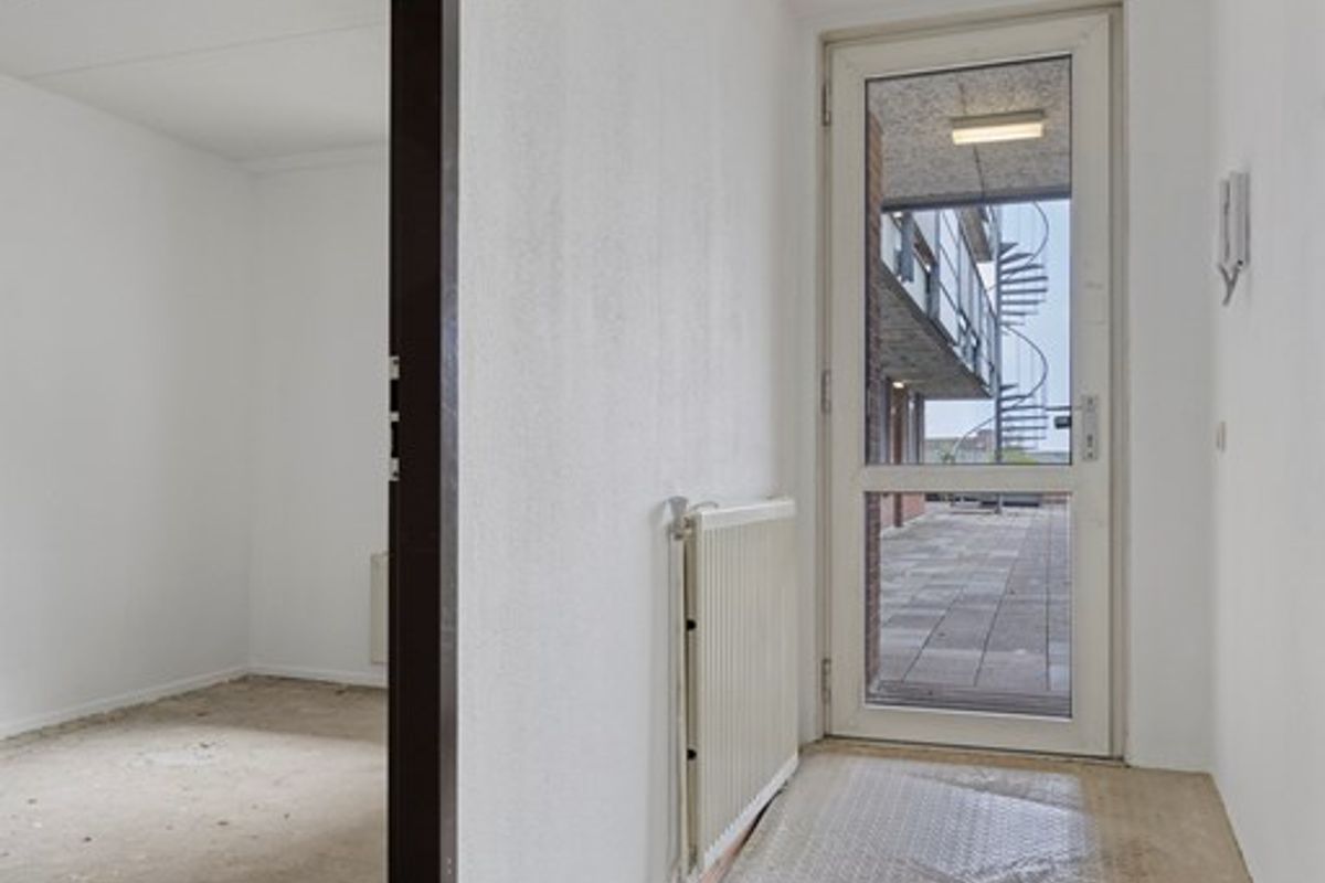 U betreedt de woning aan de straatzijde via de gezamenlijke entree, waar zich de brievenbussen en het intercomsysteem bevinden. Vanuit hier bereikt u met de trap of lift de verdieping waar het appartement is gelegen. Eenmaal aangekomen bij de woning stapt u binnen in de lange en ruime hal. Hier is volop ruimte voor een kapstok of een praktisch opbergmeubel. Vanuit de hal heeft u toegang heeft tot alle vertrekken in de woning.