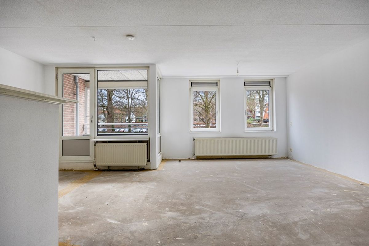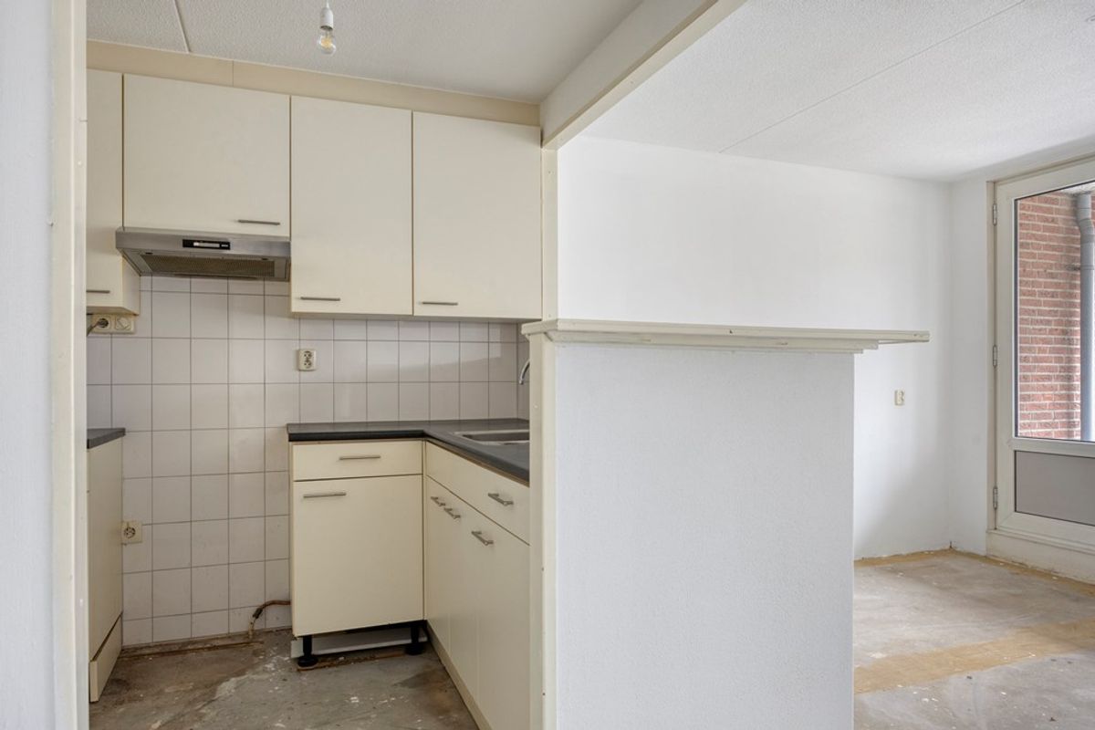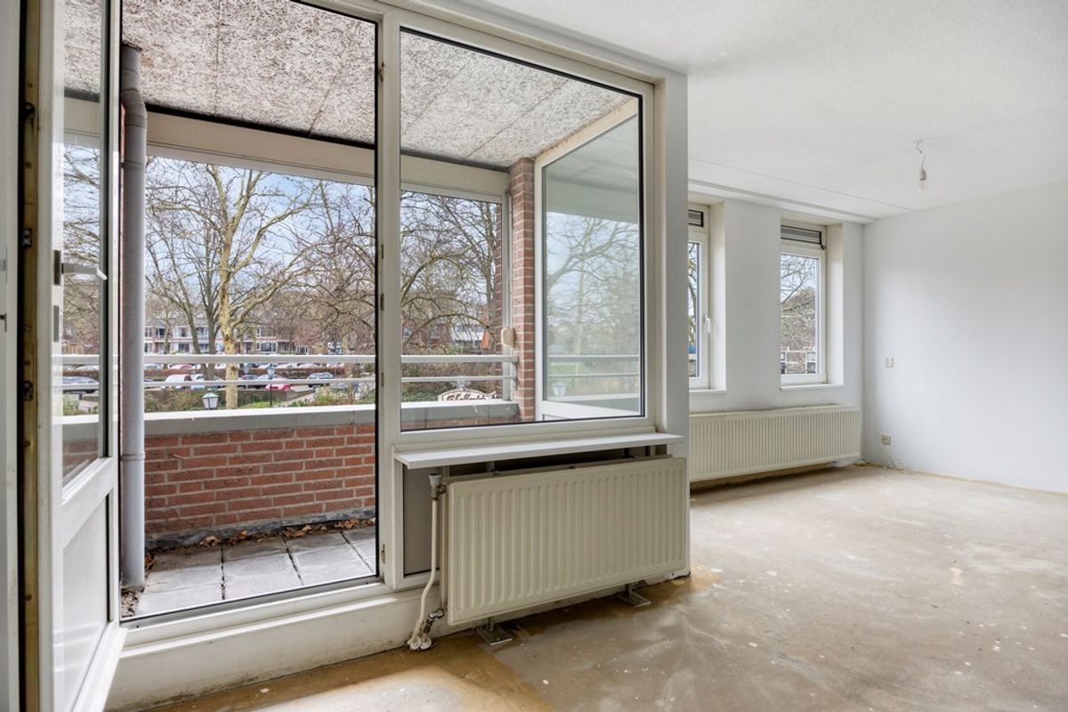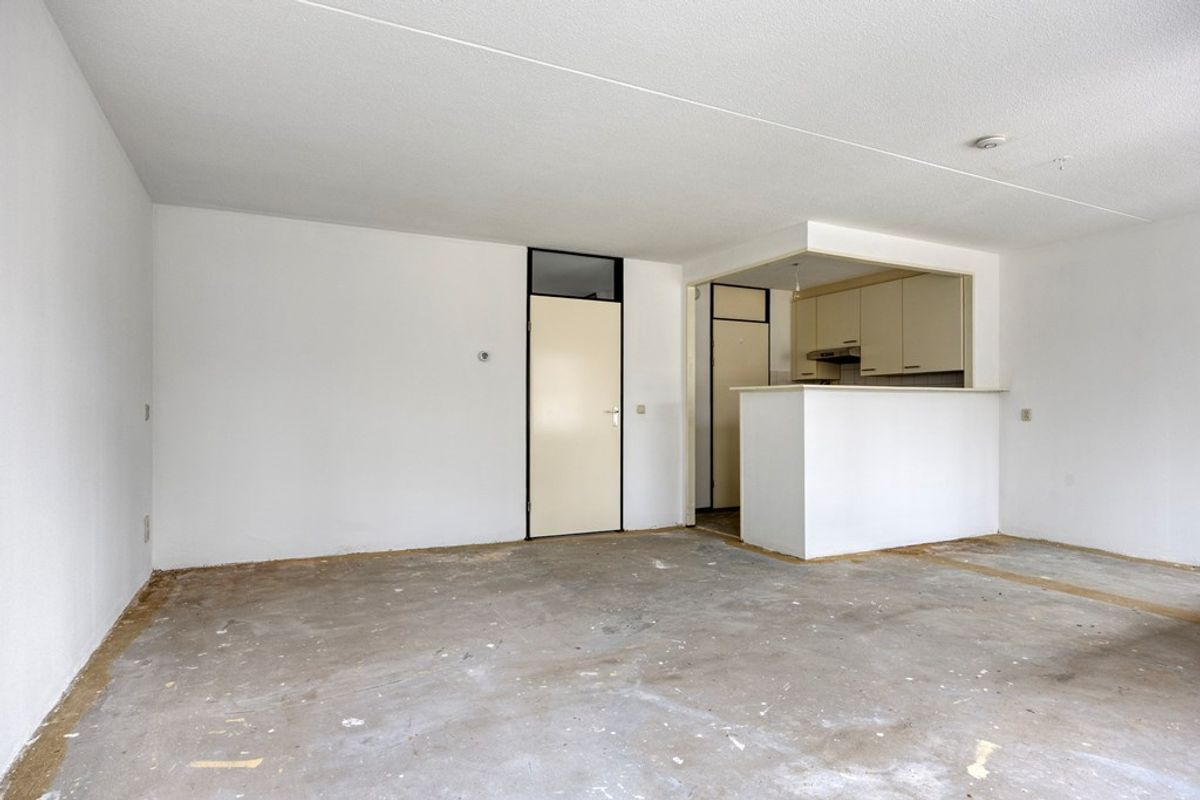 De woonkamer vormt het hart van het appartement en kenmerkt zich door zijn ruime opzet en prettige lichtinval. De open indeling biedt volop mogelijkheden voor een comfortabele zithoek en een gezellige eethoek te creëren. Buiten bent u met de directe verbinding met het balkon en biedt een open uitzicht op het pleintje. Doordat de ruimte in casco staat verkeert, krijgt u hier de kans om een woonomgeving te realiseren die volledig aansluit bij uw persoonlijke woonwensen.
