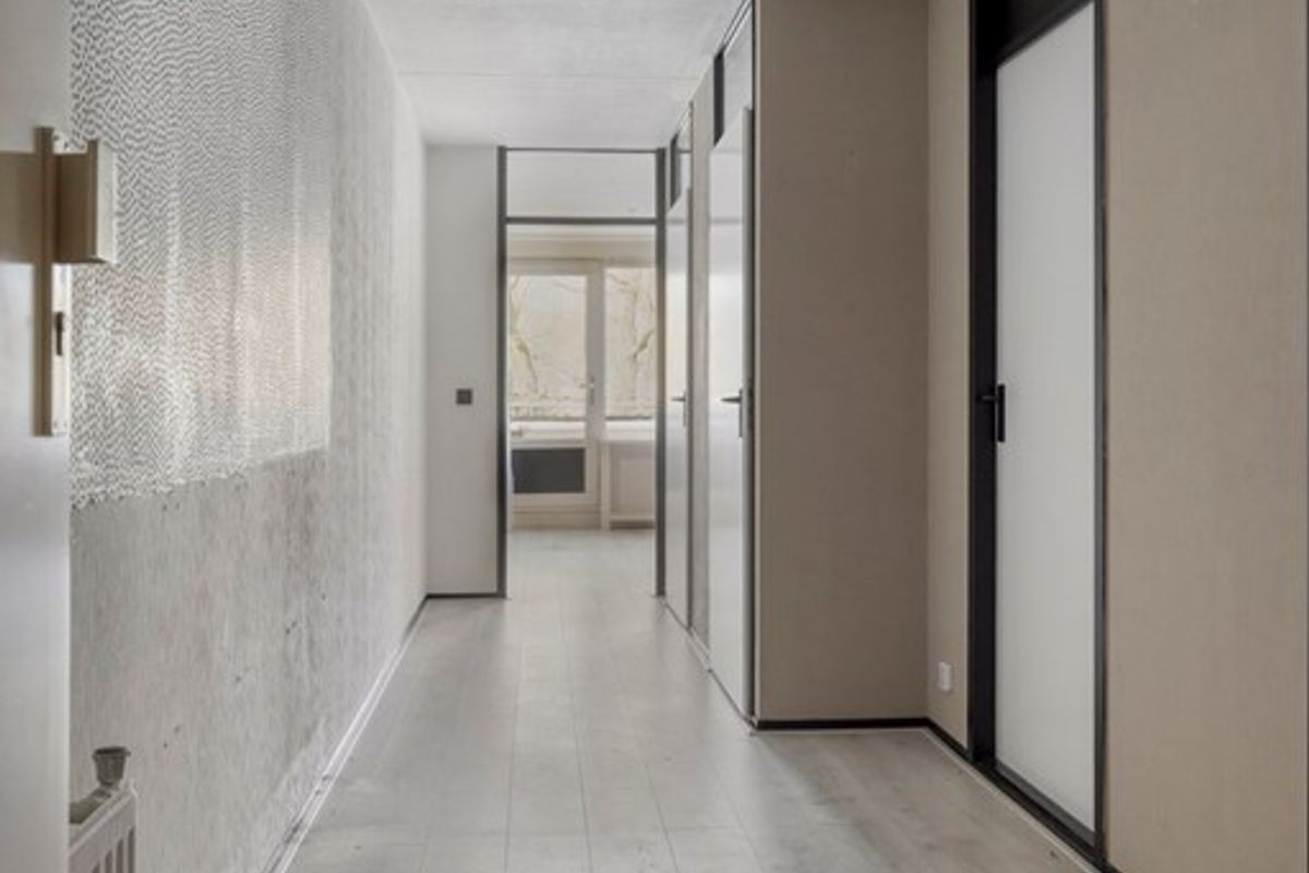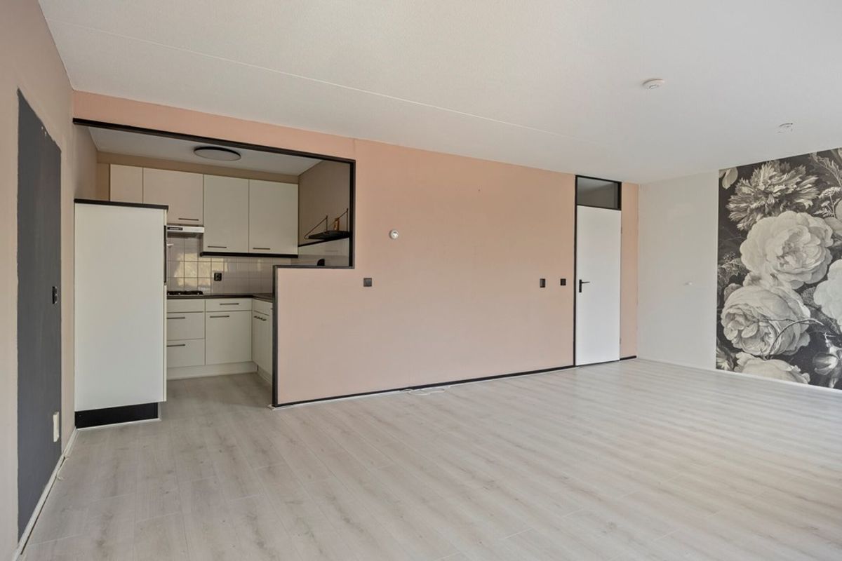 Binnen valt direct op hoe ruim het appartement aanvoelt. Grote raampartijen laten veel daglicht binnen en geven de woonkamer een open en aangename sfeer. De lichte vloer geven de ruimte de basis om woonkamer naar eigen smaak in te richten. Vanuit de woonkamer is het balkon bereikbaar.