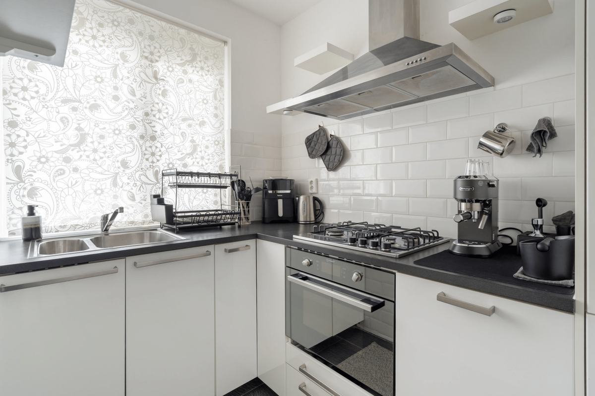 Keuken aan de galerijzijde, voorzien van de benodigde huishoudtoestellen.