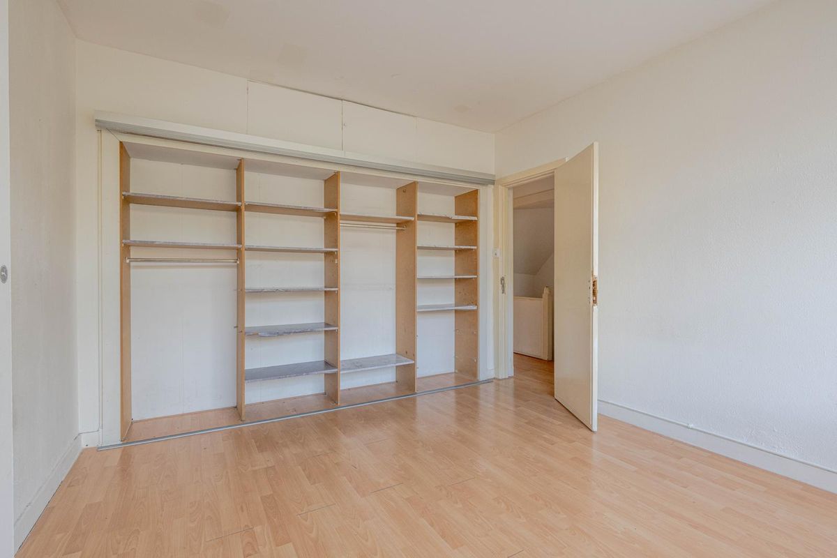 * Slaapkamer II aan de achterzijde voorzien van laminaatvloer, gestuukte wanden en plafond en een kastenwand.