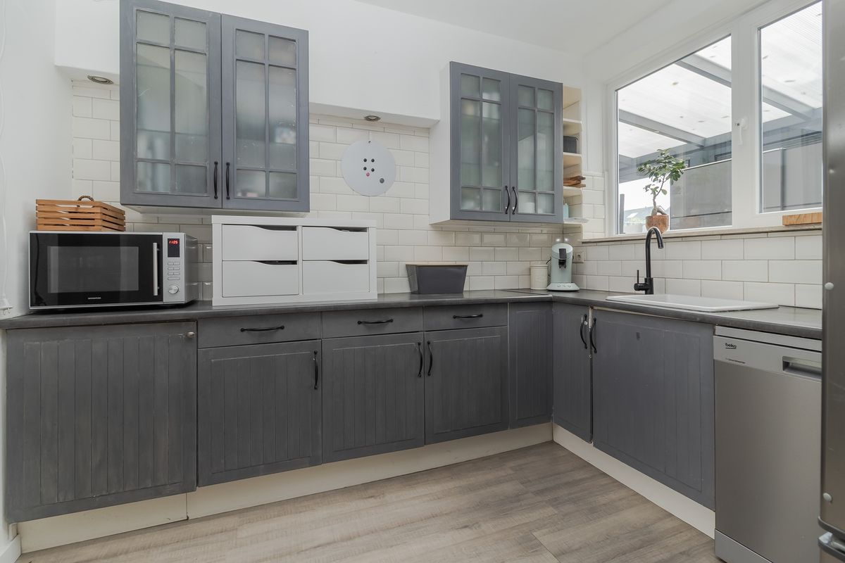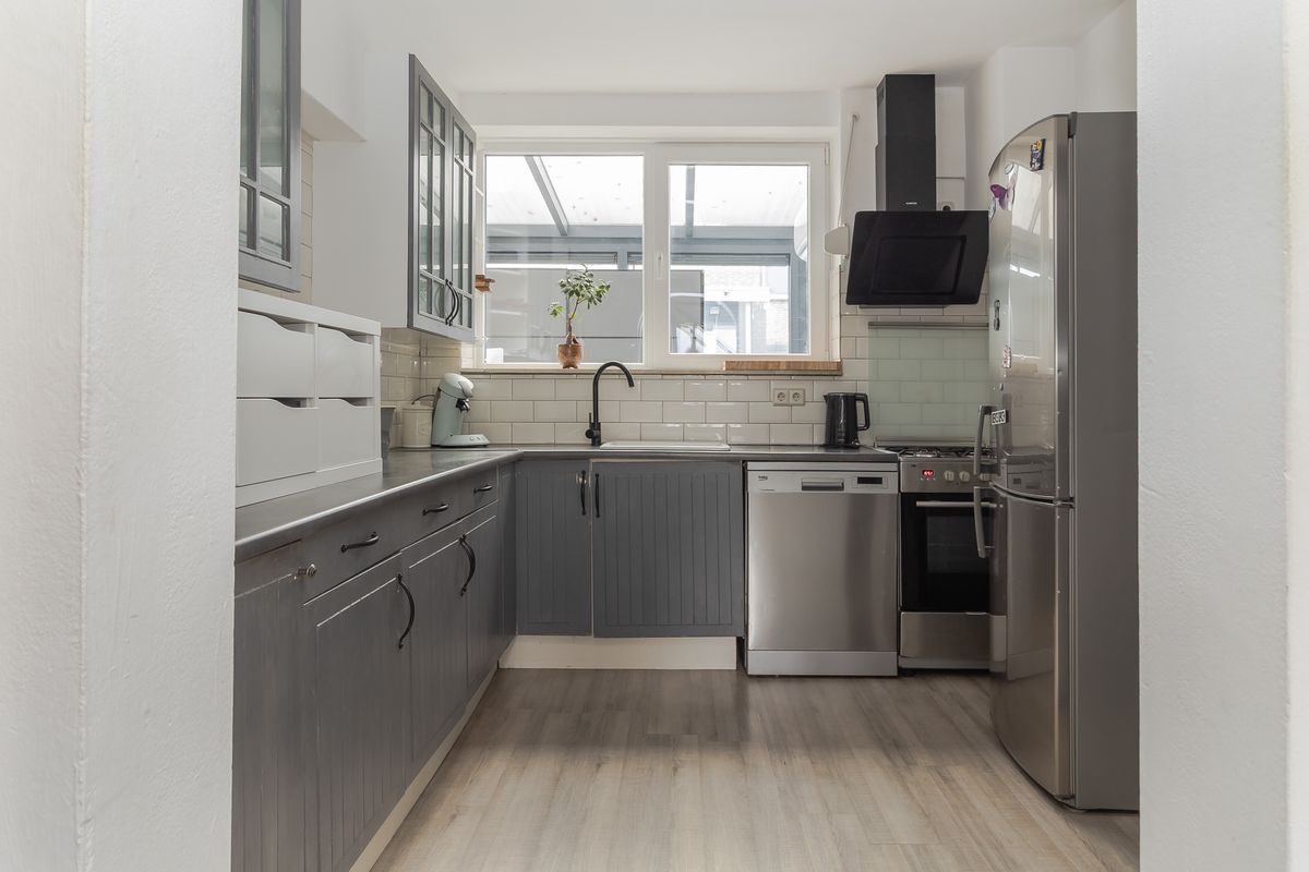 • Separate keuken (circa 8 m2) voorzien van een keukeninstallatie in hoekopstelling m.o.m. fornuis met gaskookplaat en oven, afzuigkap en vaatwasser. Vanuit de keuken is er een deur naar de badkamer.