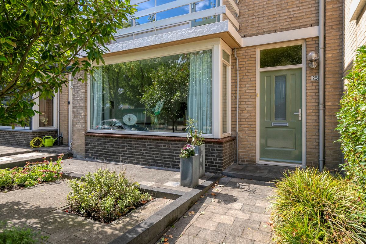De voortuin (afm. ca. 6.25 x 4.00) is een verzorgd visitekaartje van de woning. Met mooie tuinborders, voorzien van boompjes waarmee de inkijk en de zon wat wordt geweerd. De sierbestrating zorgt dat het ook nog eens onderhoudsarme tuin is en nog steeds een sfeervolle uitstraling heeft. Dit maakt tuin en woning direct uitnodigend aan.