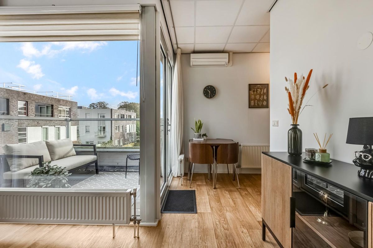 Via de woonkamer stap je zo het ruime balkon op. Hier geniet je in alle rust van het vrije uitzicht over het groen. Of je nu ’s ochtends een kop koffie drinkt of ’s avonds nog even nageniet van de dag: dit balkon is jouw eigen stukje buiten om even te ontspannen!