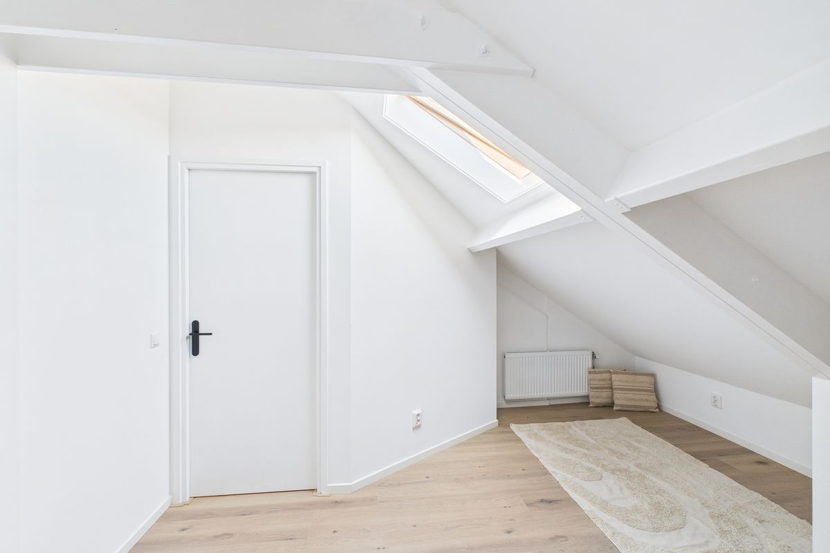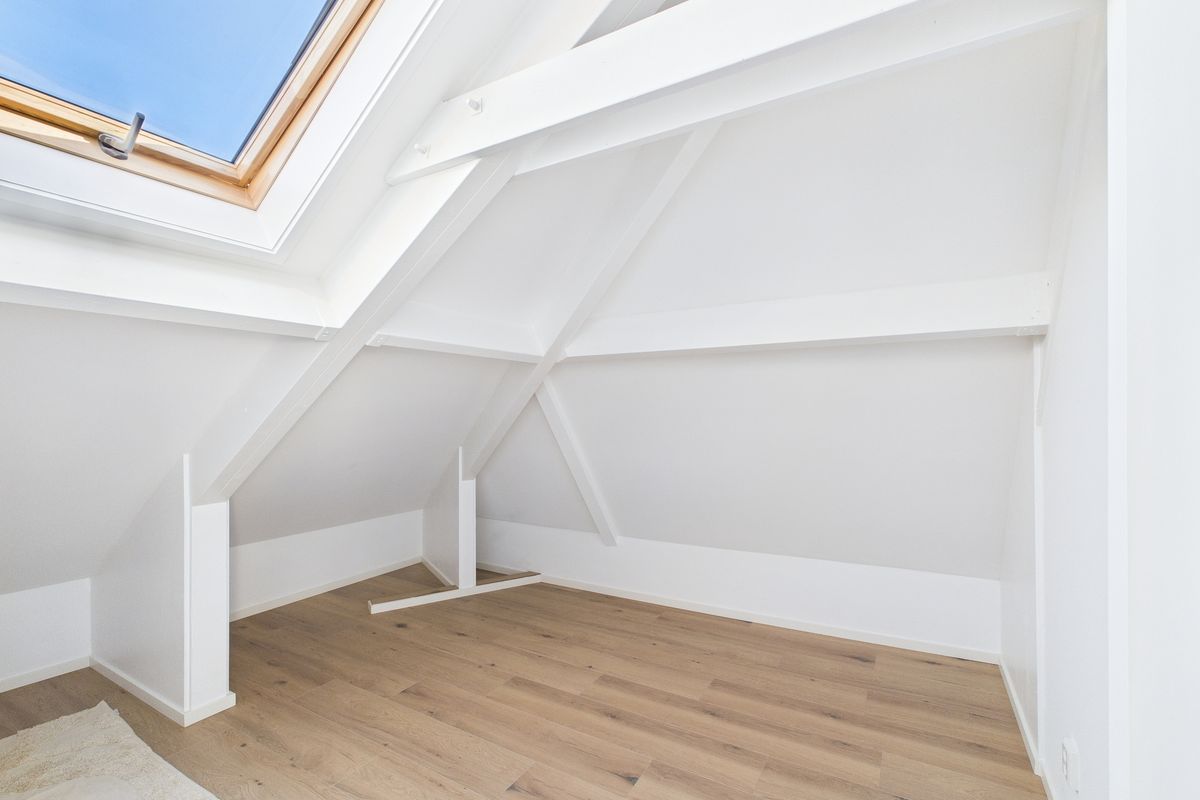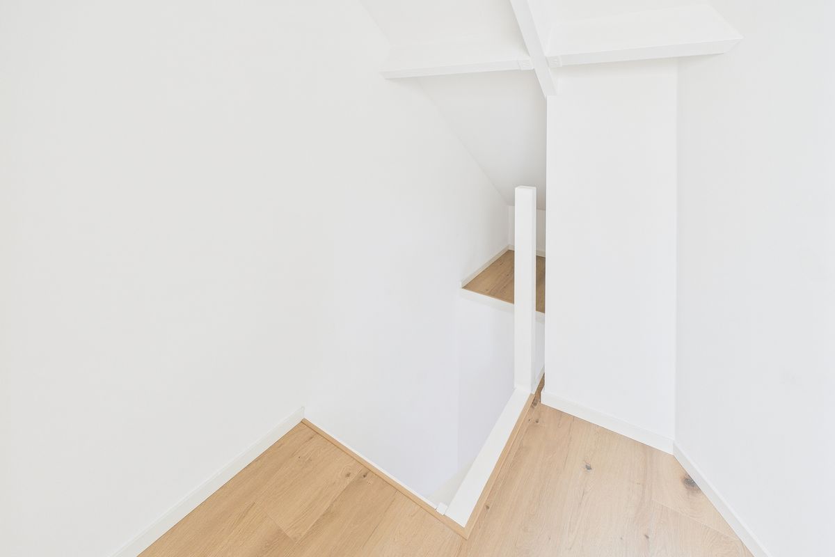 Via de trap aan de zijkant van het pand bereik je de galerij naar de appartementen. De voordeur opent naar een lichte hal met apart toilet en praktische bergkast. De woonkamer is ruim en uitnodigend, de grote ramen geven een mooi zicht op het dorpsplein. De open Nolte-keuken is luxe uitgevoerd en voorzien van moderne inbouwapparatuur. De badkamer op deze verdieping is strak en modern met inloopdouche en stijlvol wastafelmeubel. Grenzend aan de galerij is er een royaal privé-dakterras, jouw eigen zonnige buitenruimte. Op de verdieping, onder de charmante dakspanten, liggen twee sfeervolle slaapkamers die uitnodigen tot heerlijk ontspannen.