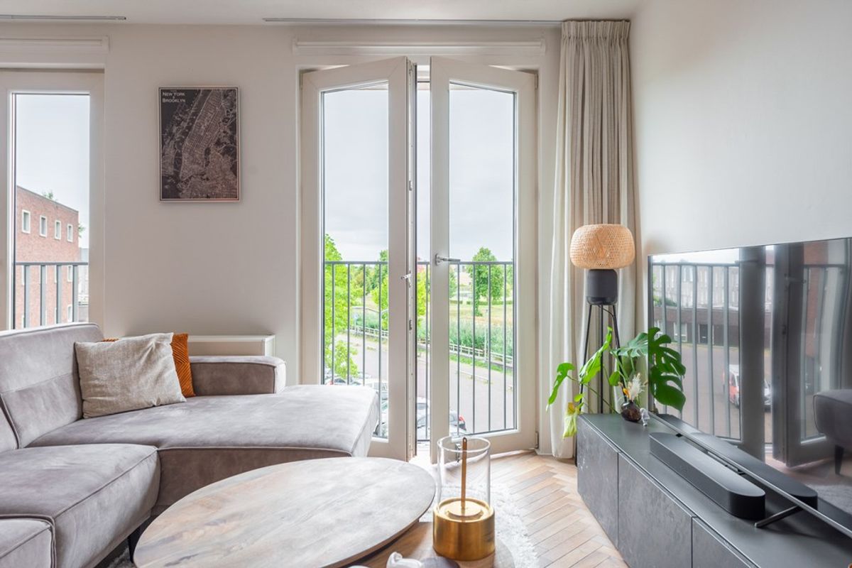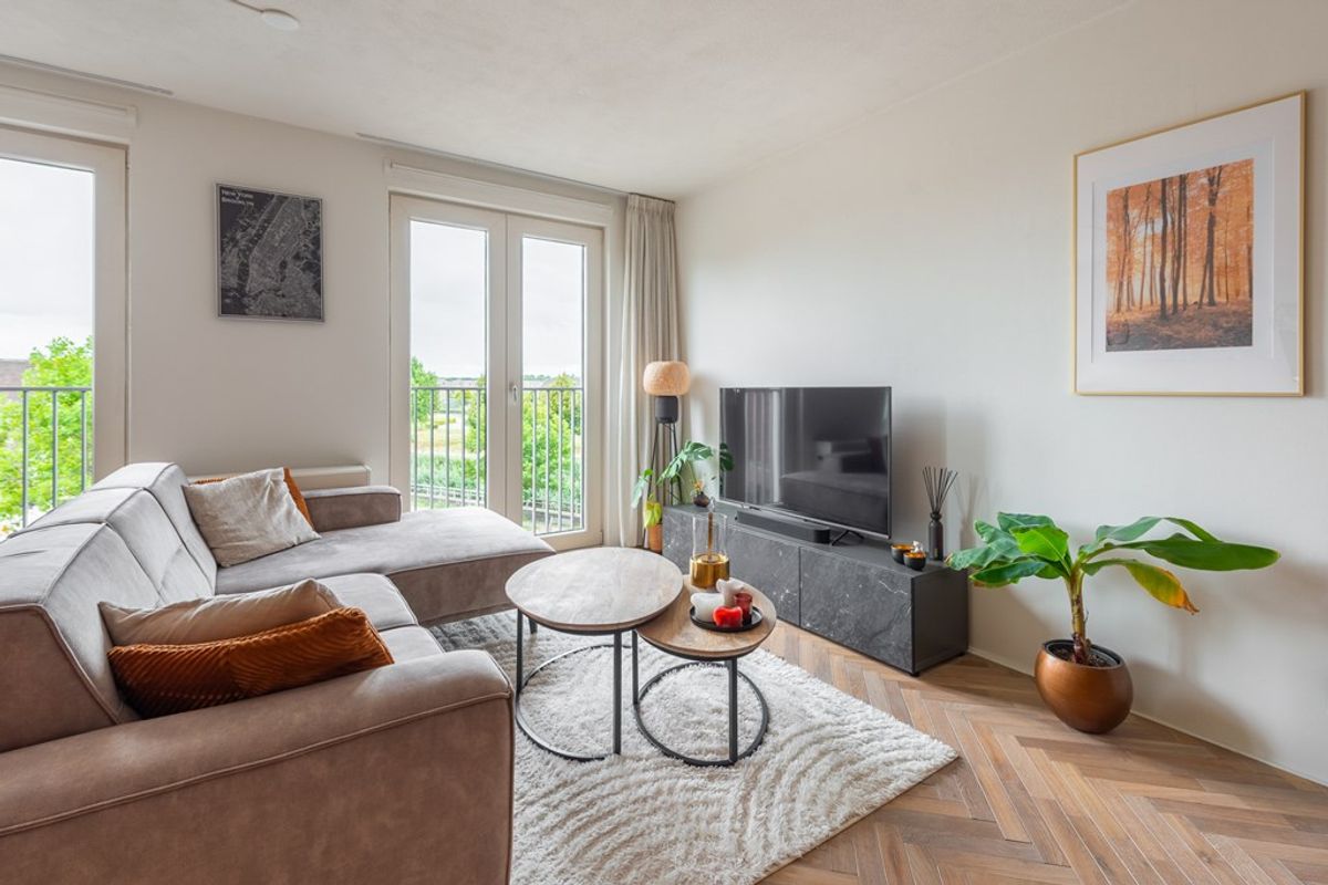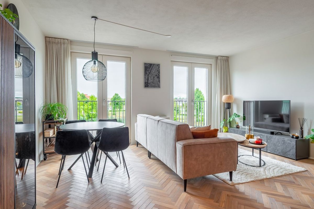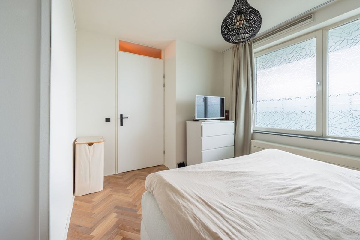 Zodra je de deur van nummer 106 binnenstapt, valt vooral het afwerkingsniveau en de rustige uitstraling op. Het appartement is in 2023 gemoderniseerd waarbij is gekozen voor een warme maar ook strakke stijl. Zo is de gehele woning (behalve de badkamer) voorzien van een fraaie in visgraatmotief gelegde houten lamelparketvloer.