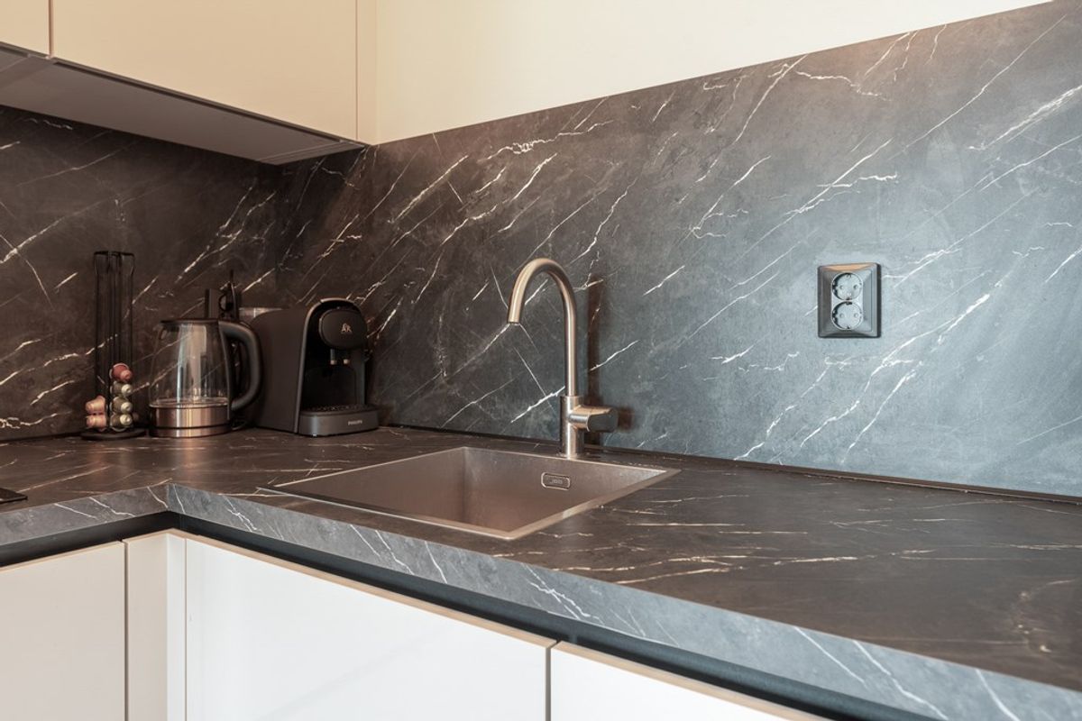De open keuken (dec. 2023), is geplaatst in een hoekopstelling en is uitgevoerd in een witte hoogglans kleurstelling en beschikt over diverse kasten, inclusief een apothekerskastje, en lades. Uiteraard is ook aan het nodige kookcomfort gedacht, te noemen een inductie kookplaat, combi-oven/magnetron, koel-/vriescombinatiekast, vaatwasser.