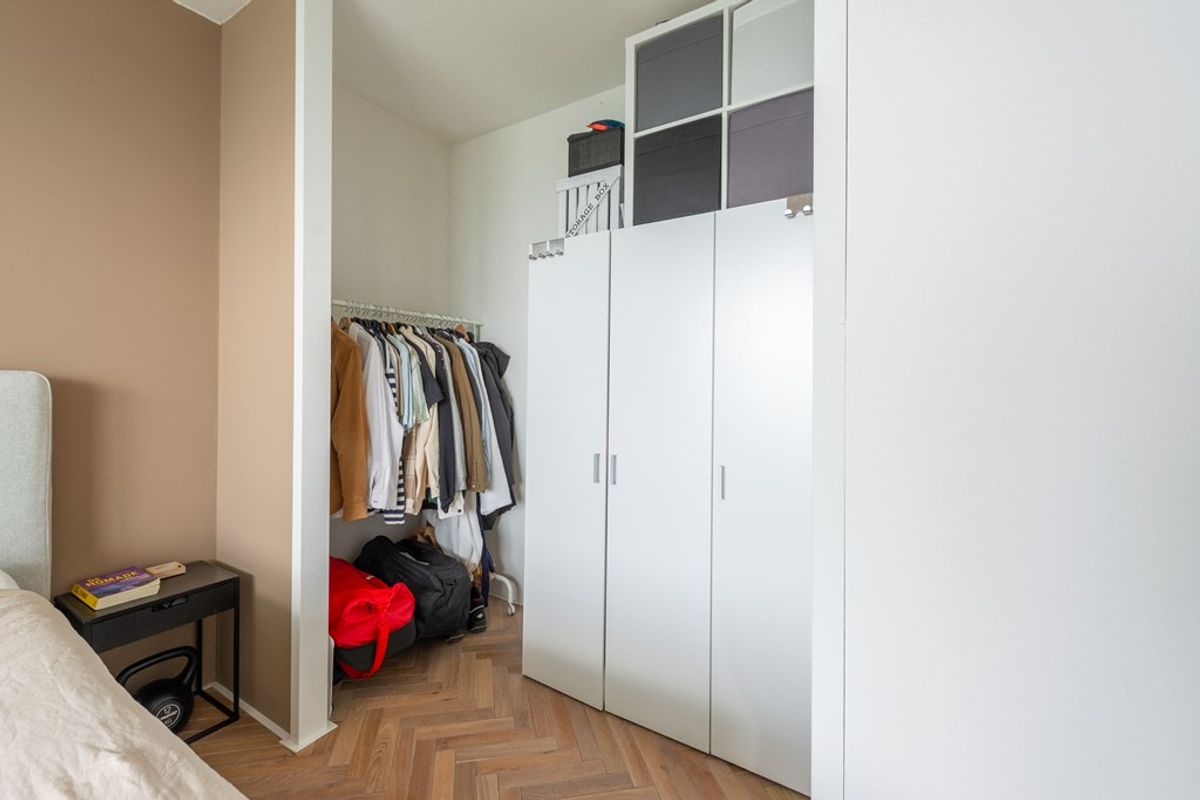 Het appartement is voorzien van een ruime slaapkamer met een praktische inloopkast. Ook in deze slaapkamer een instapklare afwerking met dezelfde houten vloer, lichte wandafwerking en een raampartij aan de galerijzijde, eveneens met draaikiep mogelijkheden. In de nette badkamer beschik je over alle wenselijke ruimte en benodigdheden. De ruimte is ingericht met een inloopdouche, badkamermeubel en vrijhangend toilet (2023).