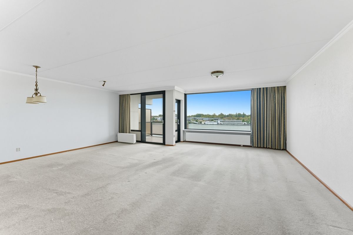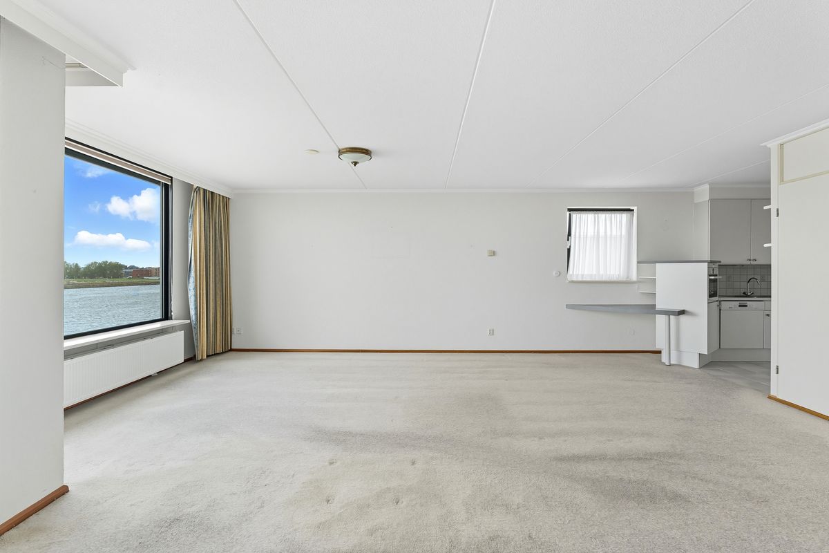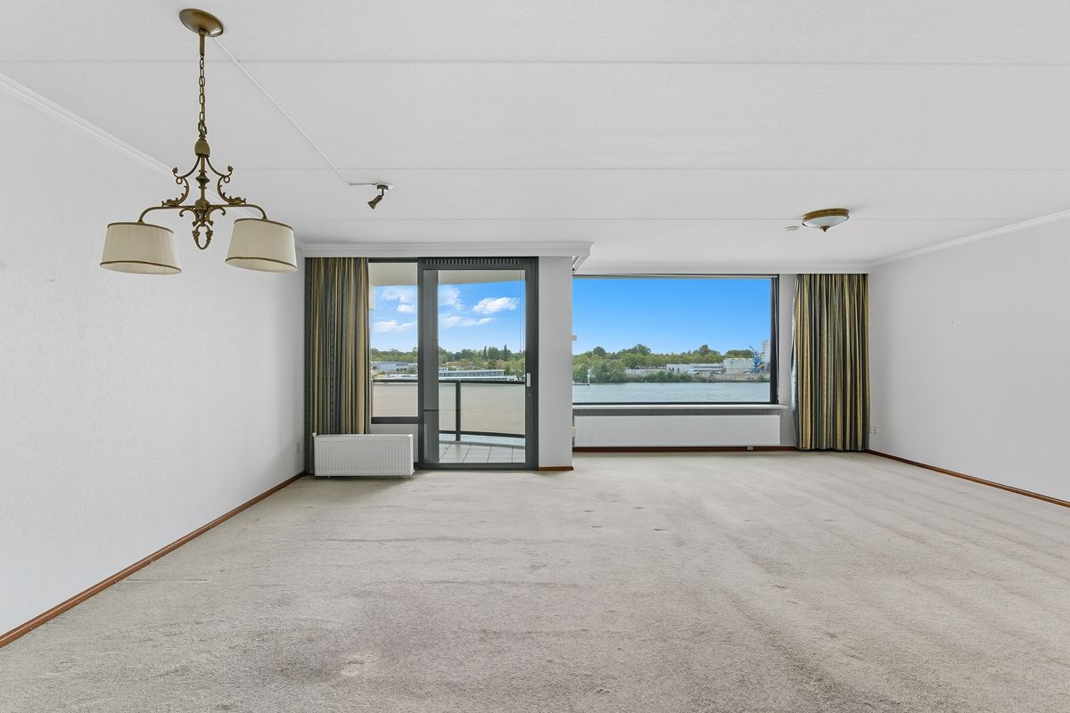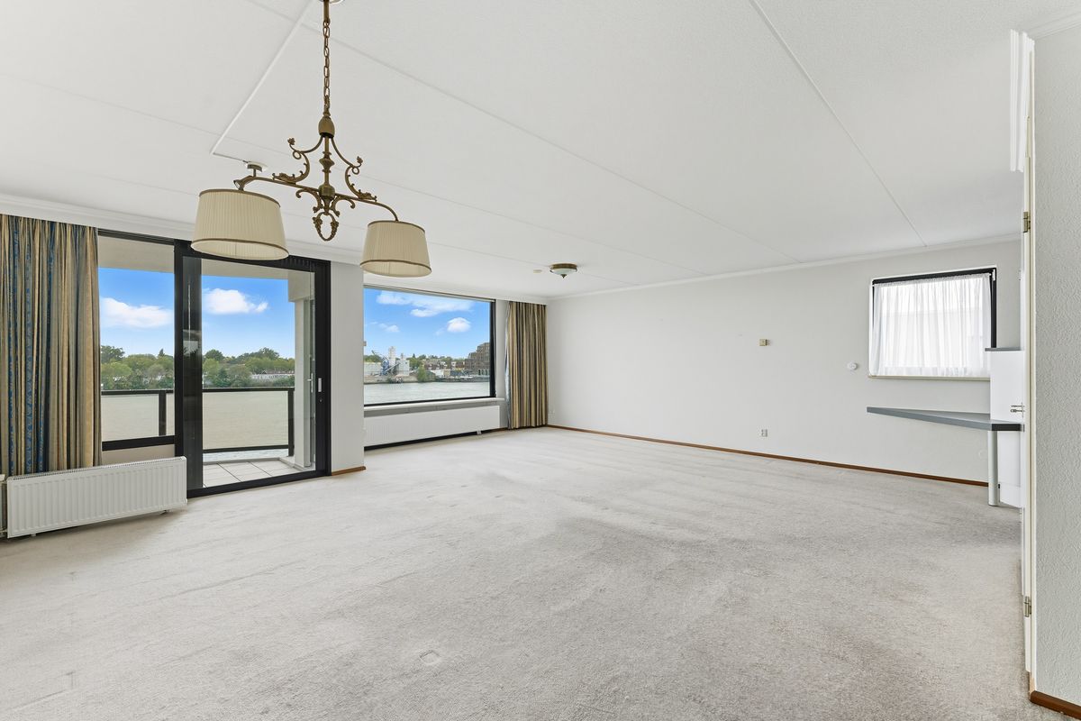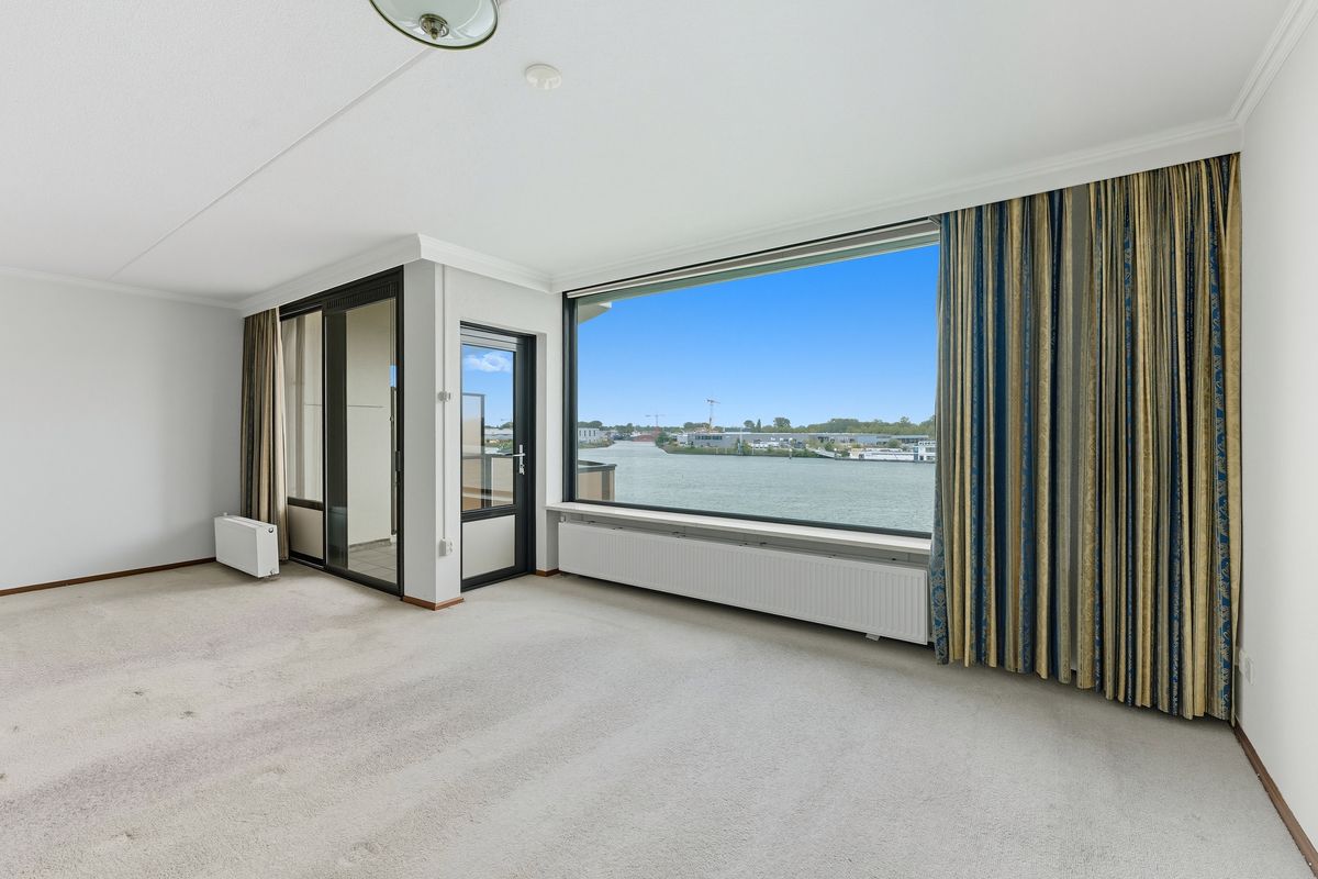 Woonkamer: De ruime woonkamer biedt u een prachtig, vrij uitzicht over de rivier en Dordrecht. Dankzij de grote ramen geniet u van veel lichtinval. De woonkamer is flexibel in te richten. Het is bijvoorbeeld zeer aantrekkelijk om de bank bij het grote raam te plaatsen, zodat u optimaal kunt genieten van het panorama. Er is bovendien voldoende ruimte voor een grote eettafel, zodat u zowel comfortabel kunt ontspannen als gezellig kunt dineren. Daarnaast vindt u hier twee handige inbouwkasten en een deur die u direct toegang geeft tot het balkon. De ruimte is afgewerkt met vloerbedekking, spachtelputz wanden en een spuitwerk plafond.