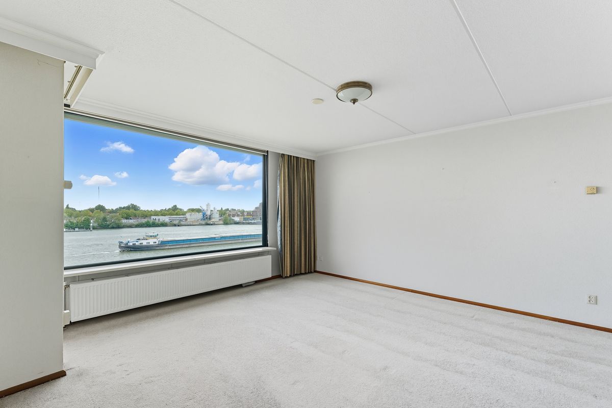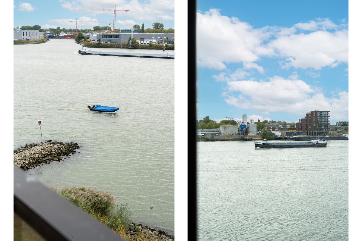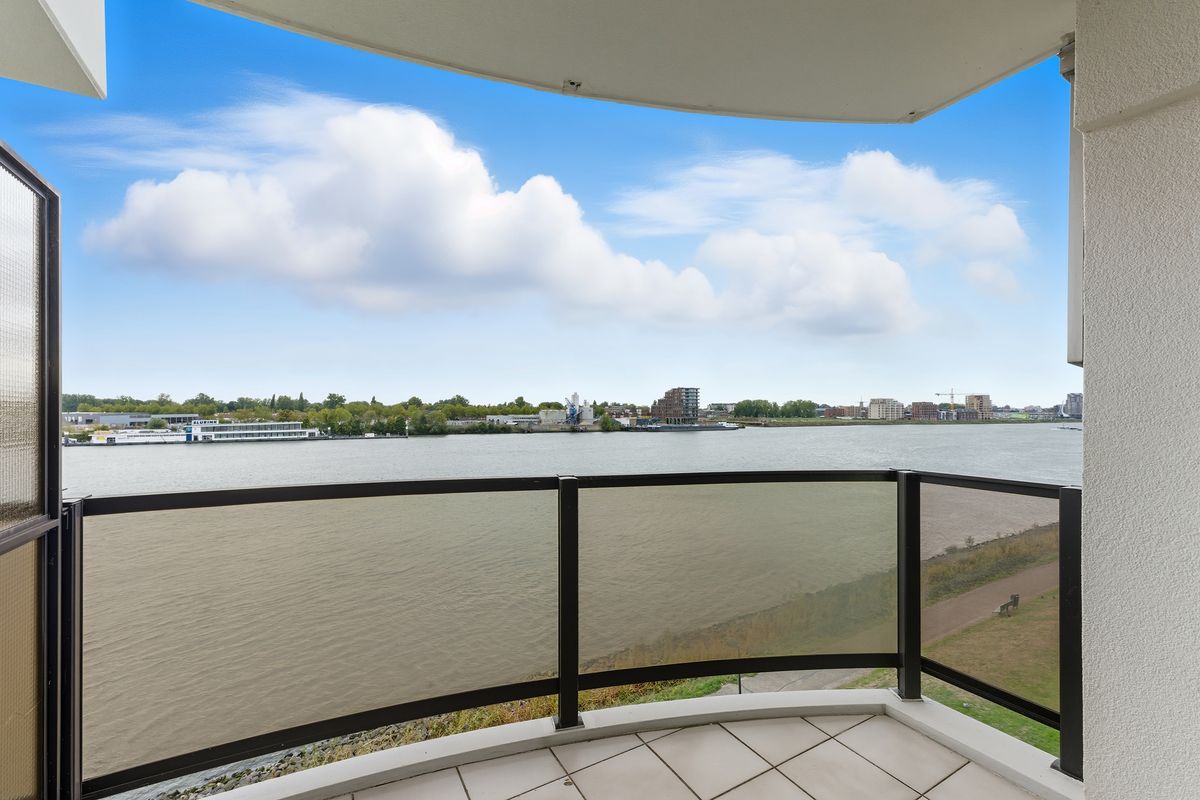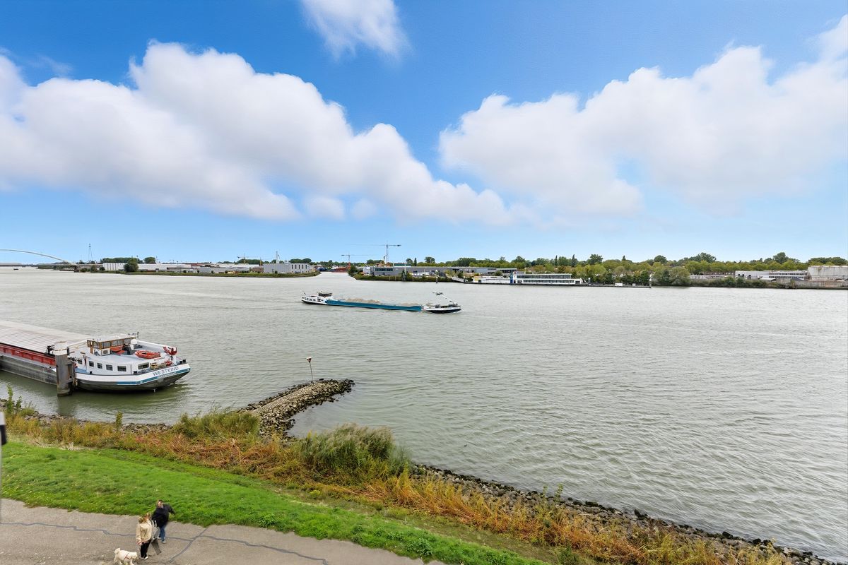 Balkon: Het balkon op het zuiden biedt een heerlijk buitengevoel met hetzelfde vrije uitzicht over de rivier en de voorbijvarende schepen. Voor optimaal comfort beschikt u over een elektrisch zonnescherm en kunt u dankzij de overstek en glazen wanden ook op zonnige of winderige dagen beschut buiten zitten. Het is een perfecte plek om te ontspannen, van het uitzicht te genieten of uw gasten buiten te ontvangen.
