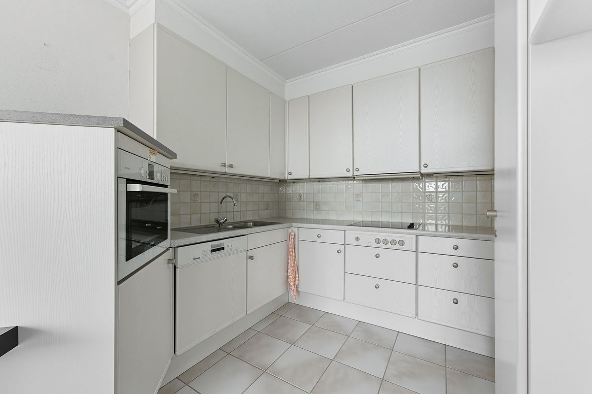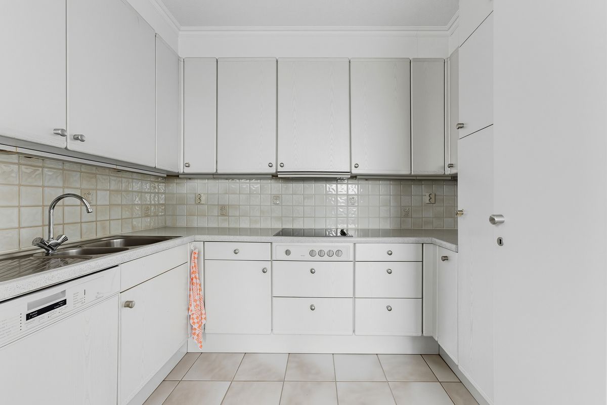 Keuken: De keuken is uitgevoerd in een neutrale, lichte kleur en biedt een praktische basis om direct in te koken. U vindt hier een oven/magnetron-combinatie, een elektrische kookplaat met afzuigkap, een koel-/vriescombinatie en een vaatwasser. De keuken is nog volledig functioneel en kan prima dienstdoen, maar biedt ook de mogelijkheid om (op termijn) een nieuwe keuken te realiseren en de ruimte geheel naar uw eigen smaak in te richten. De ruimte is afgewerkt met een plavuizenvloer, spachtelputz- en tegelwanden en een spuitwerk plafond.