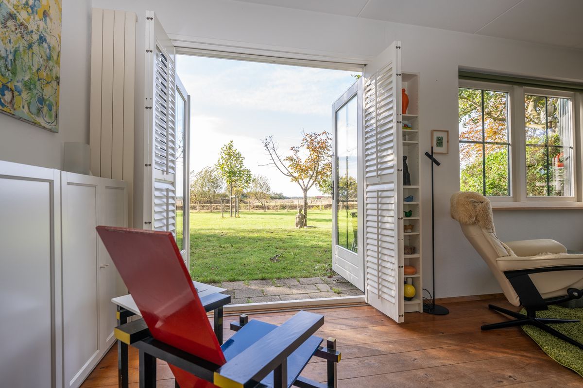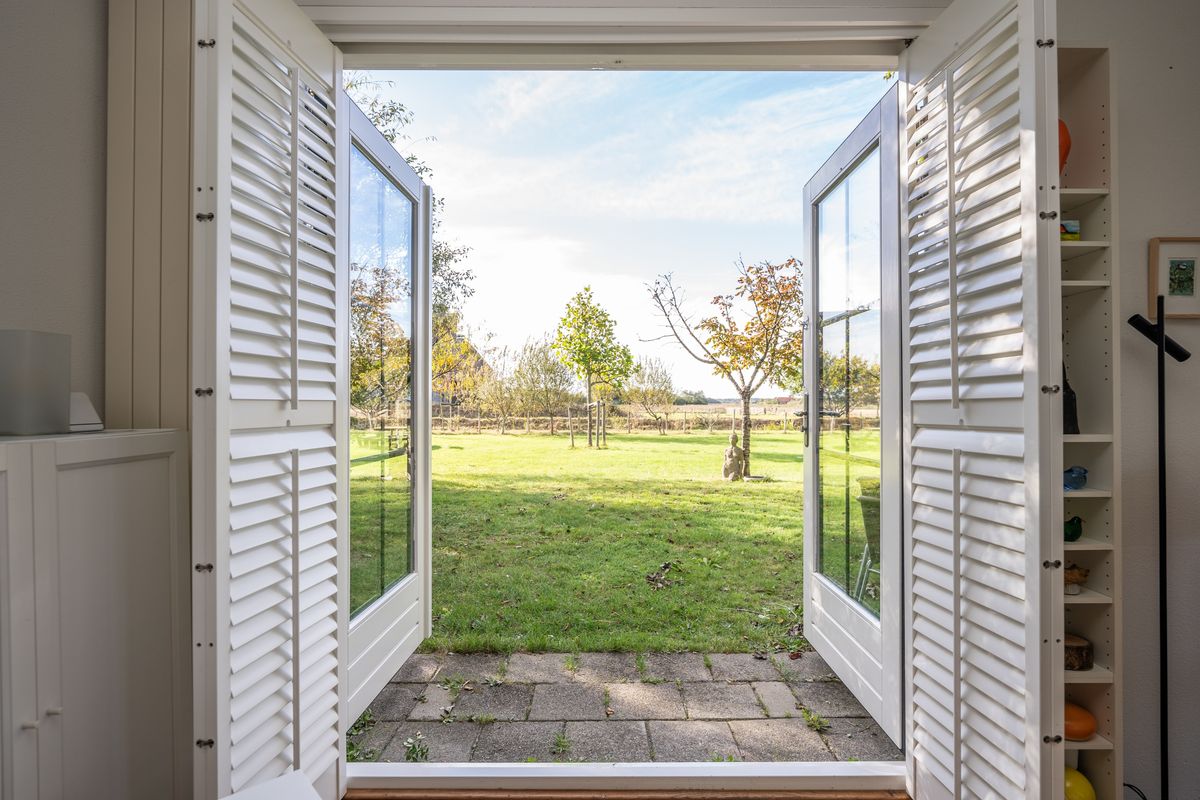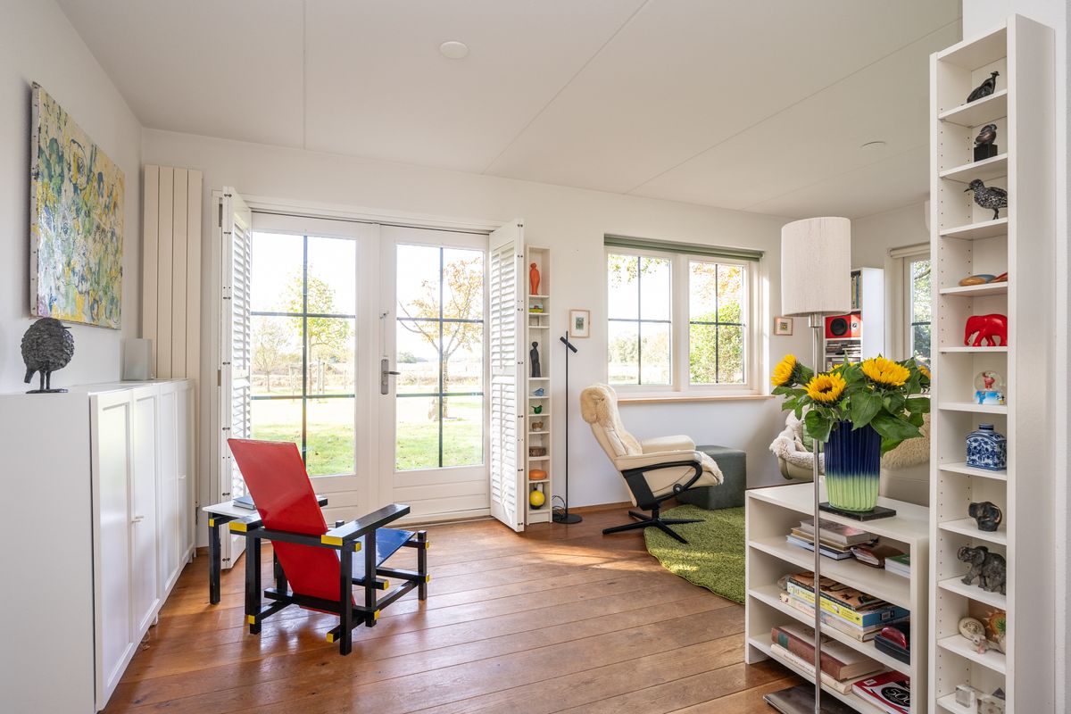 Eenmaal aangekomen bij de woning heeft u alle ruimte om uw auto’s te parkeren. De bestrating is sierlijk aangelegd wat een warm welkom geeft. Zodra u de sfeervolle en zonnige woonkamer binnenstapt, valt direct de knusse zithoek op. Op de begane grond zijn meerdere zitgedeeltes aanwezig. Via de openslaande deuren met shutters in de woonkamer komt u in de riante tuin/wei.
