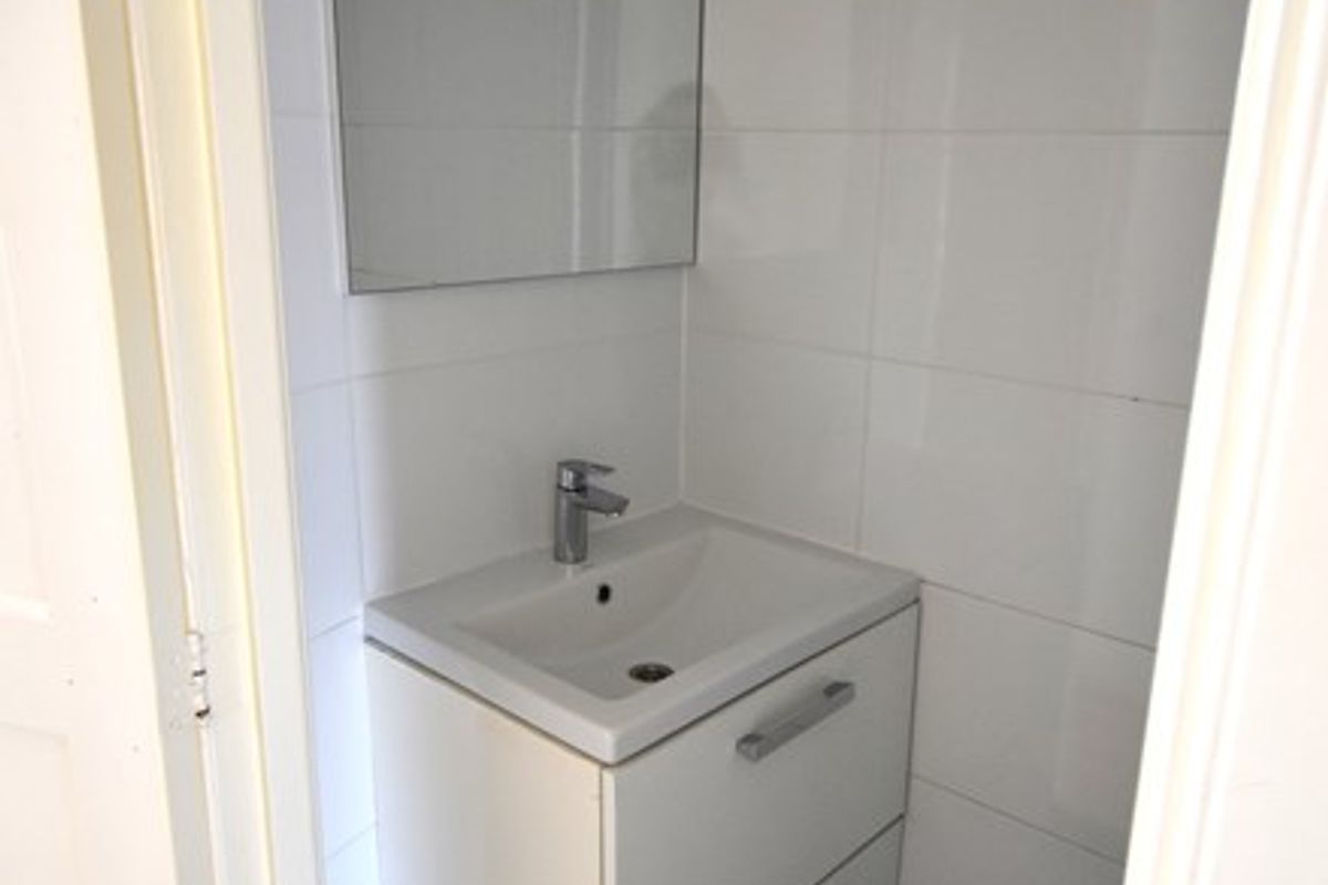 Hallway with a separate toilet with a small sink. From the hallway, all rooms are accessible.
