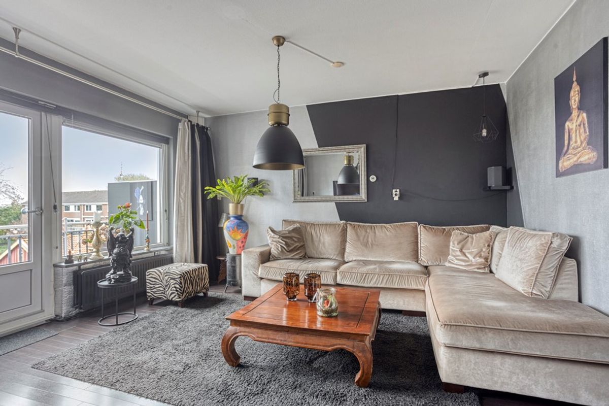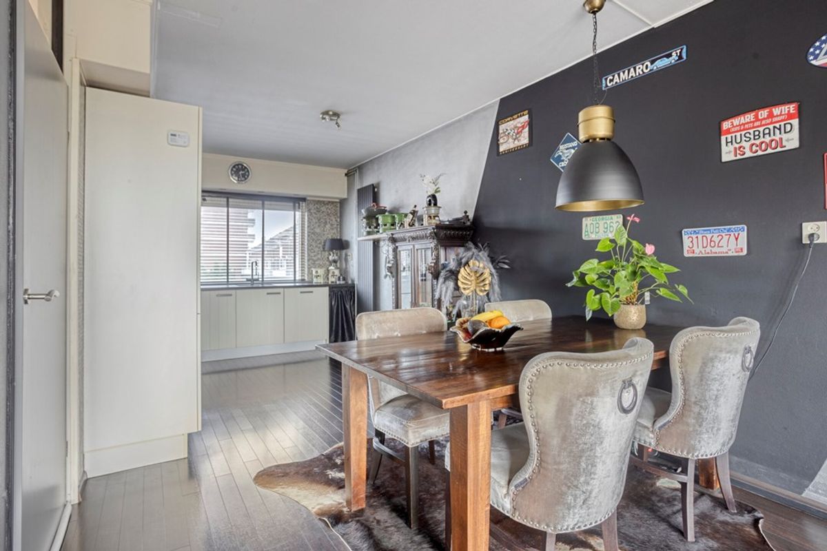 Wat een leuke ruimte! Groter dan u zou denken, veel lichtinval voor en achter en een spectaculair uitzicht! Alle kozijnen aan de achterzijde zijn vervangen door kunststof kozijnen met triple beglazing (oktober 2023). Donkere sfeervolle laminaatvloer die mooi matcht met de lichte meubels en keuken.
