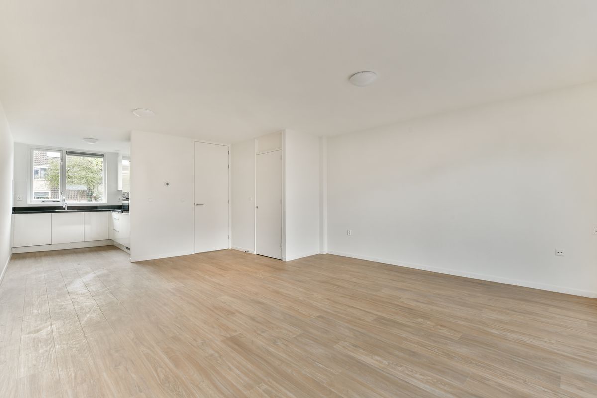 Aan de achterzijde van de woning is de lichte woonkamer met toegang tot de achtertuin via de grote schuifpui. De tuin is volledig omsloten en is tevens te bereiken middels een achterom.